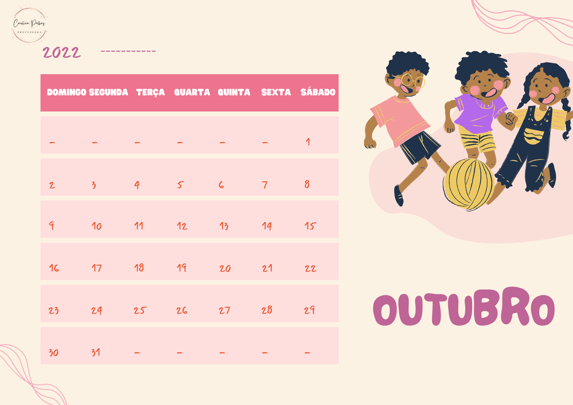 Calendário 2022 com o tema crianças brincando