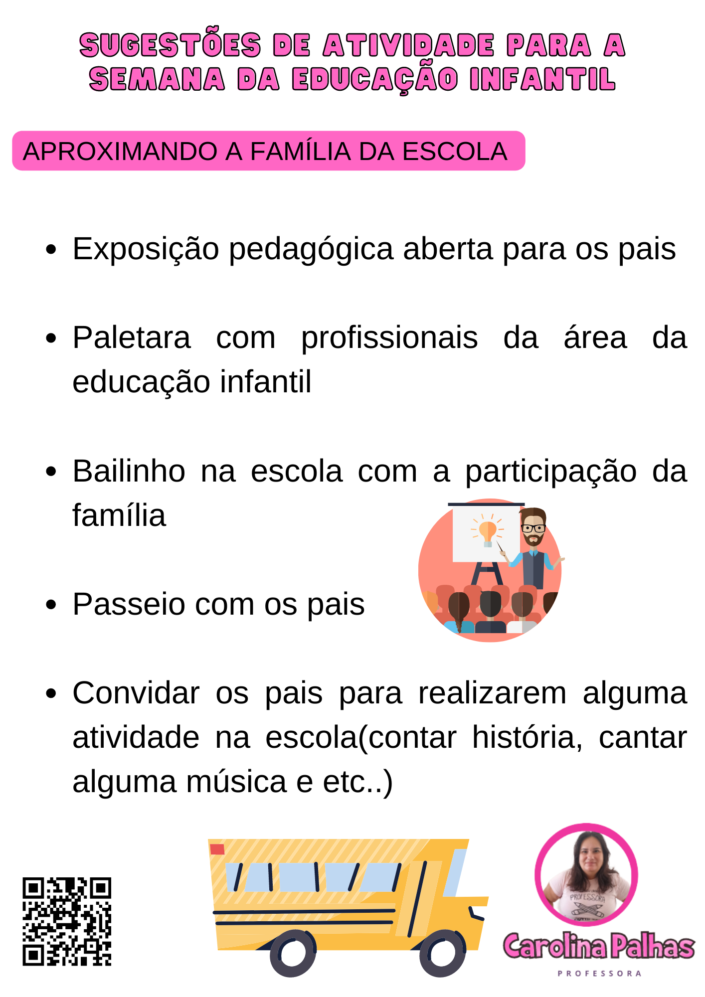 - Convidar os pais para realizarem alguma atividade na escola(contar história, cantar alguma música e etc..)
