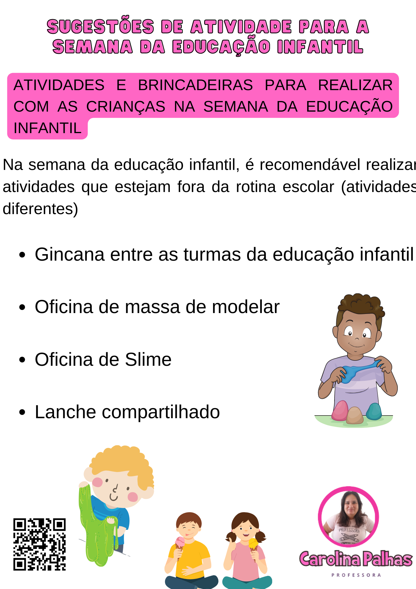 Na semana da educação infantil, é recomendável realizar atividades que estejam fora da rotina escolar (atividades diferentes)