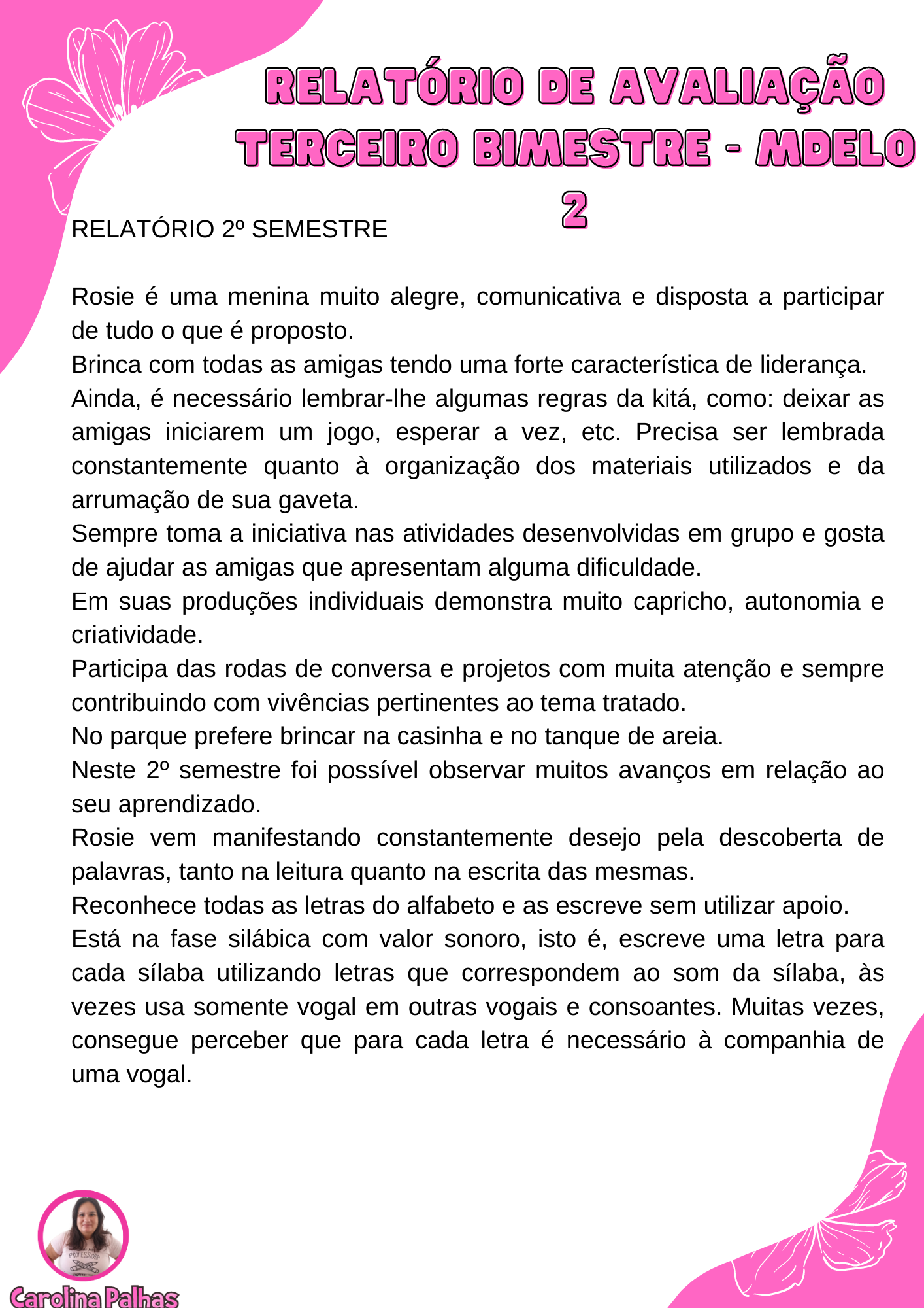 Hoje eu trago dois modelos de relatórios para o terceiro bimestre/ 2º semestre para a educação infantil