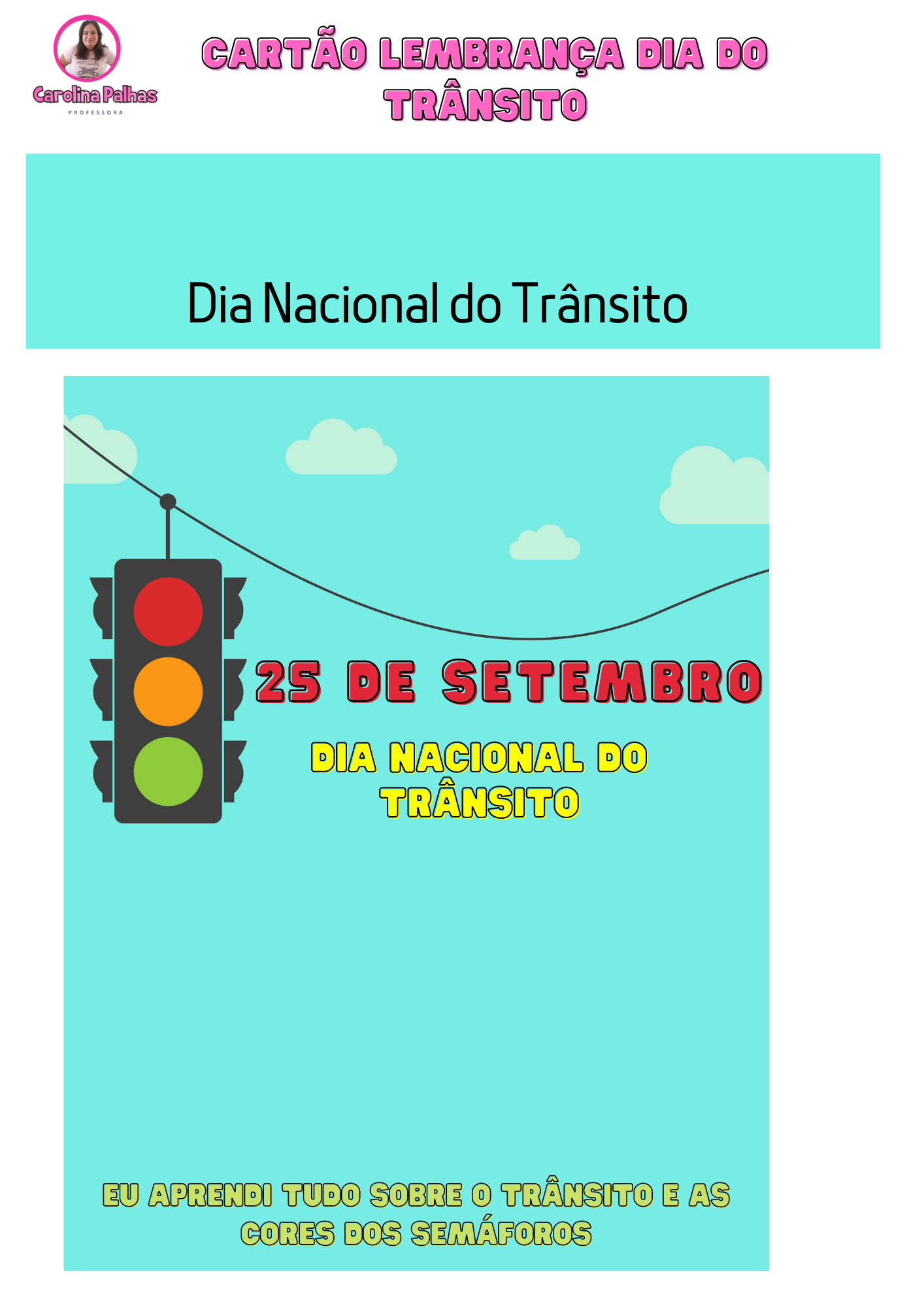 Cartão lembrança dia do trânsito Cartão lembrança dia do trânsito