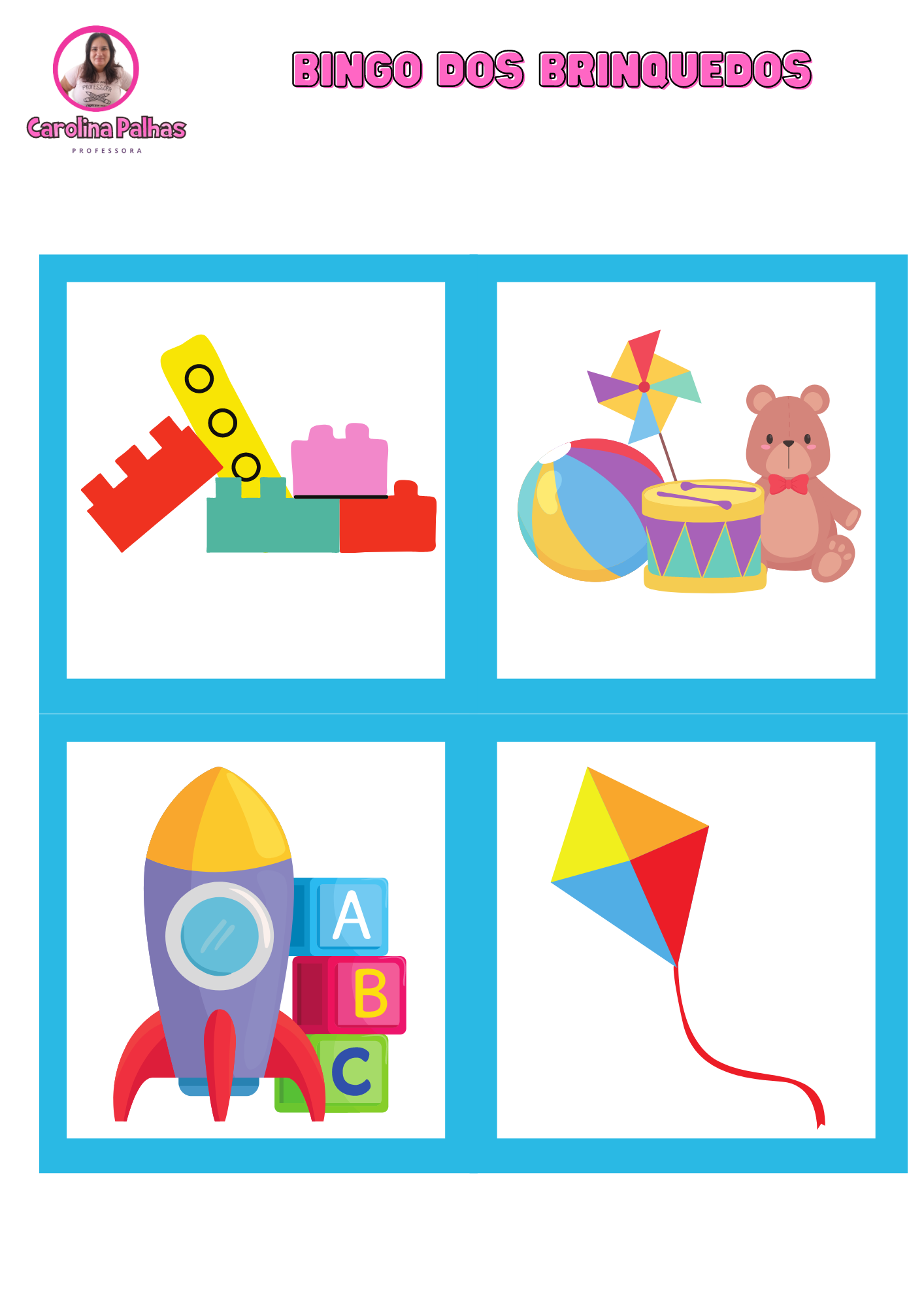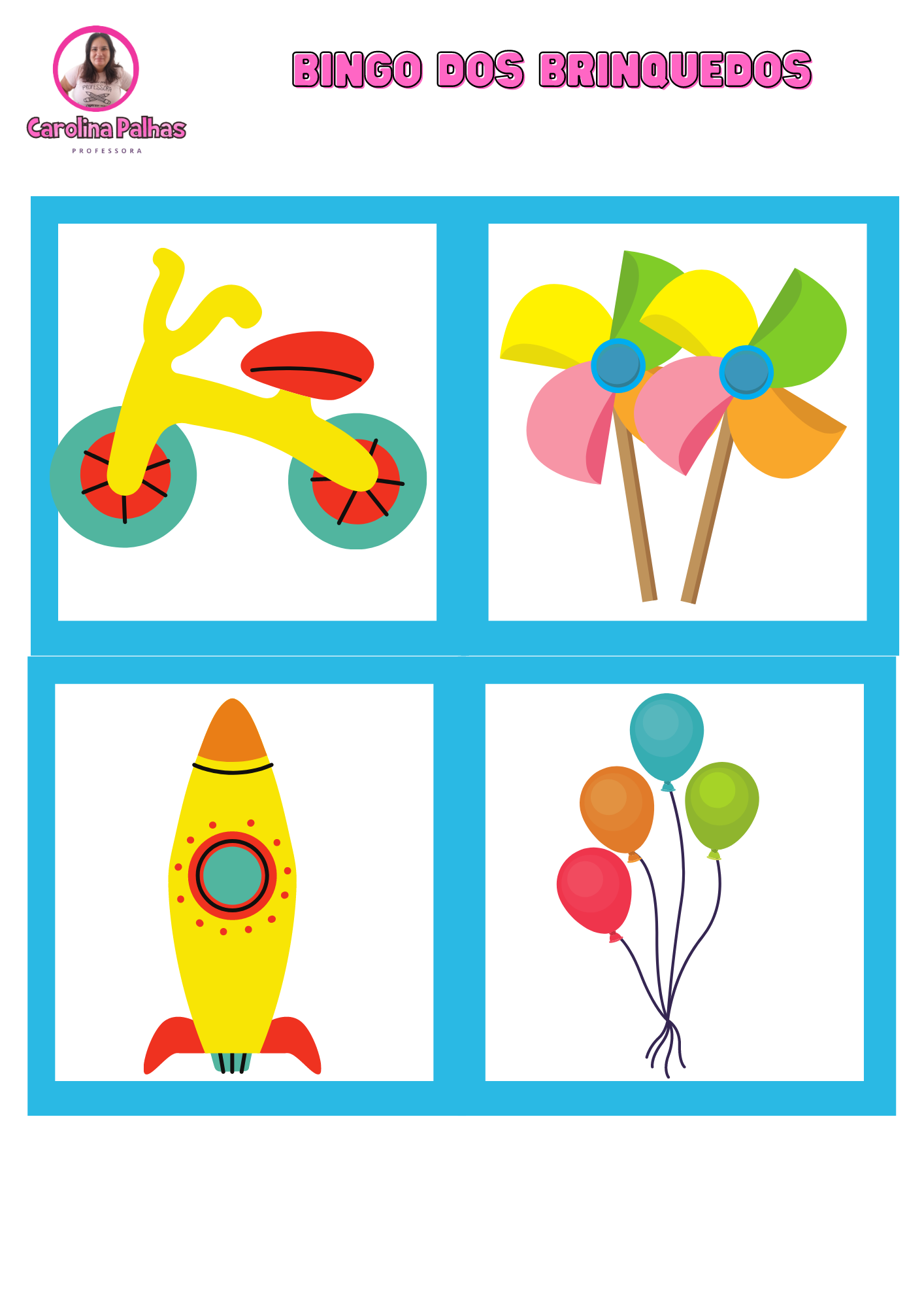 Hoje eu trago uma sugestão de jogo de bingo com o tema brinquedos