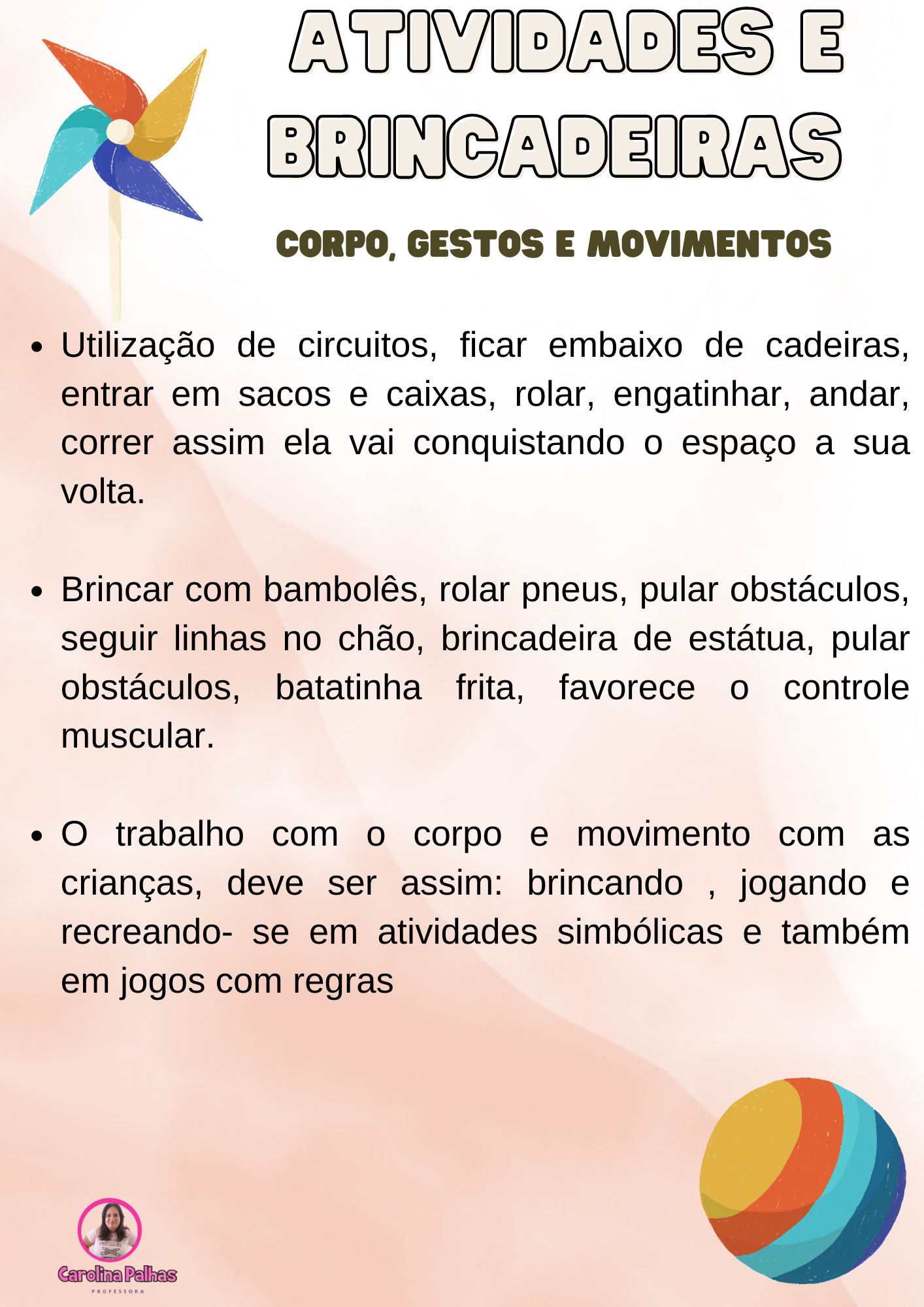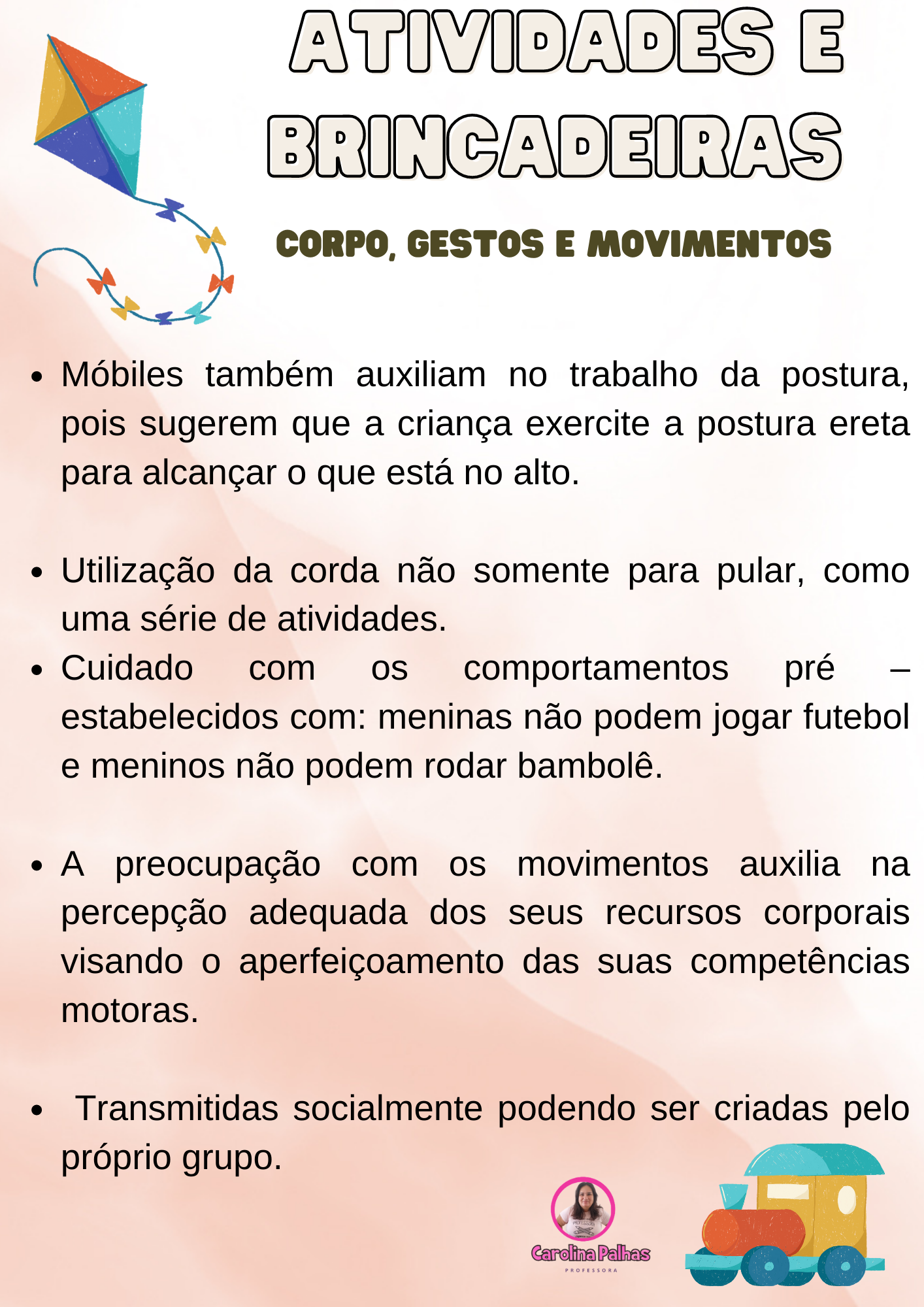 - O trabalho com o corpo e movimento com as crianças, deve ser assim: brincando , jogando e recreando- se em atividades simbólicas e também em jogos com regras