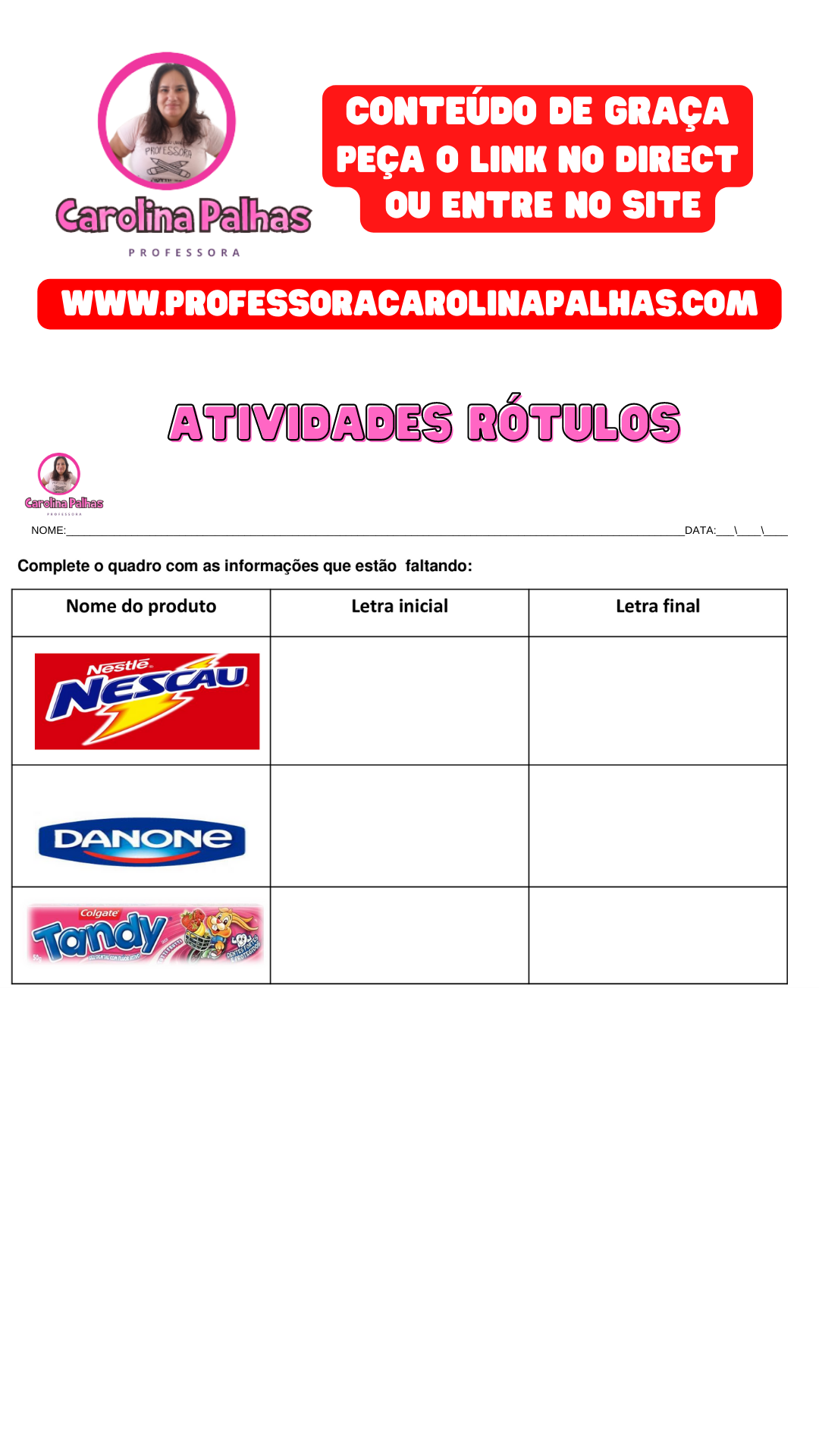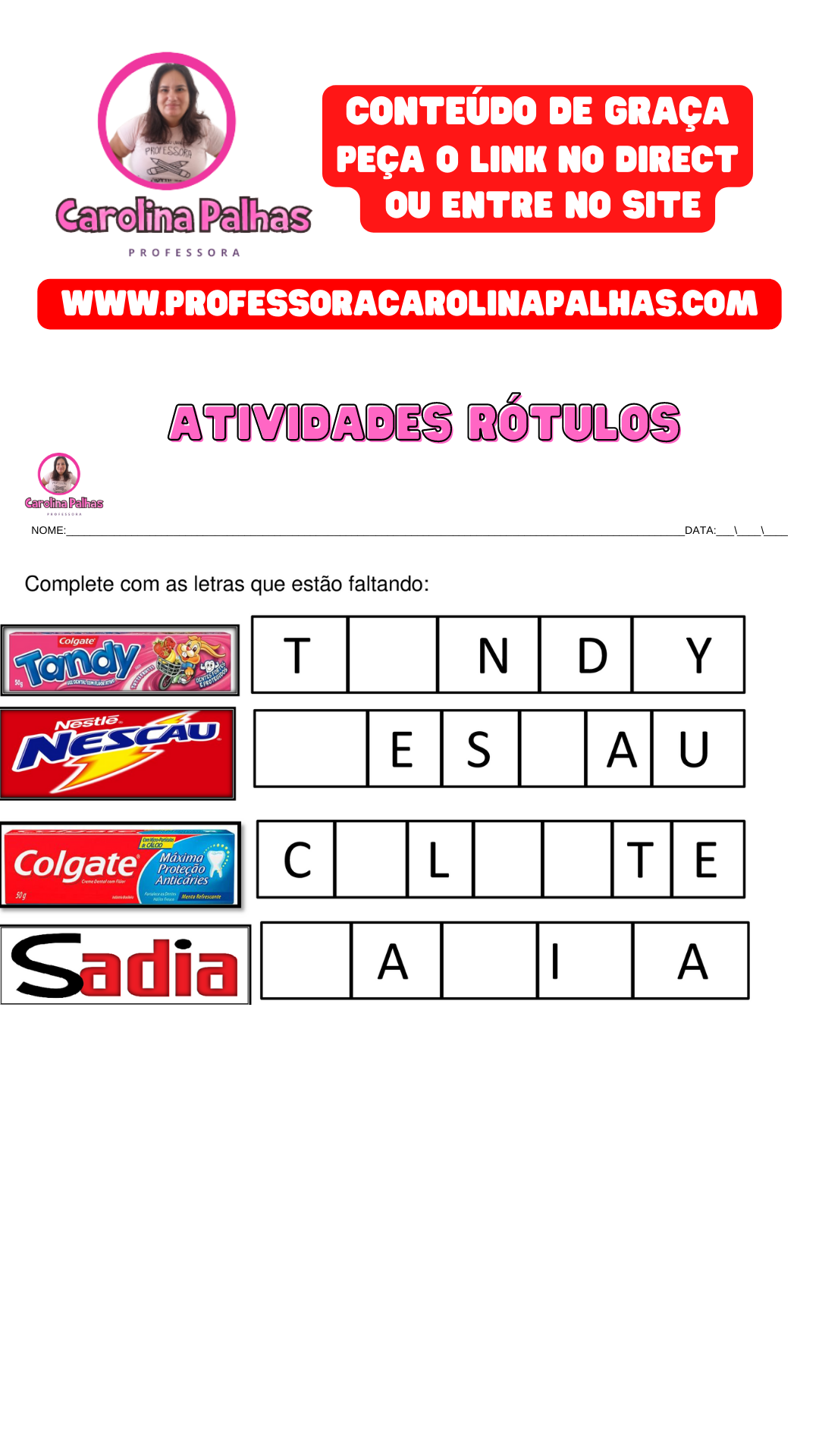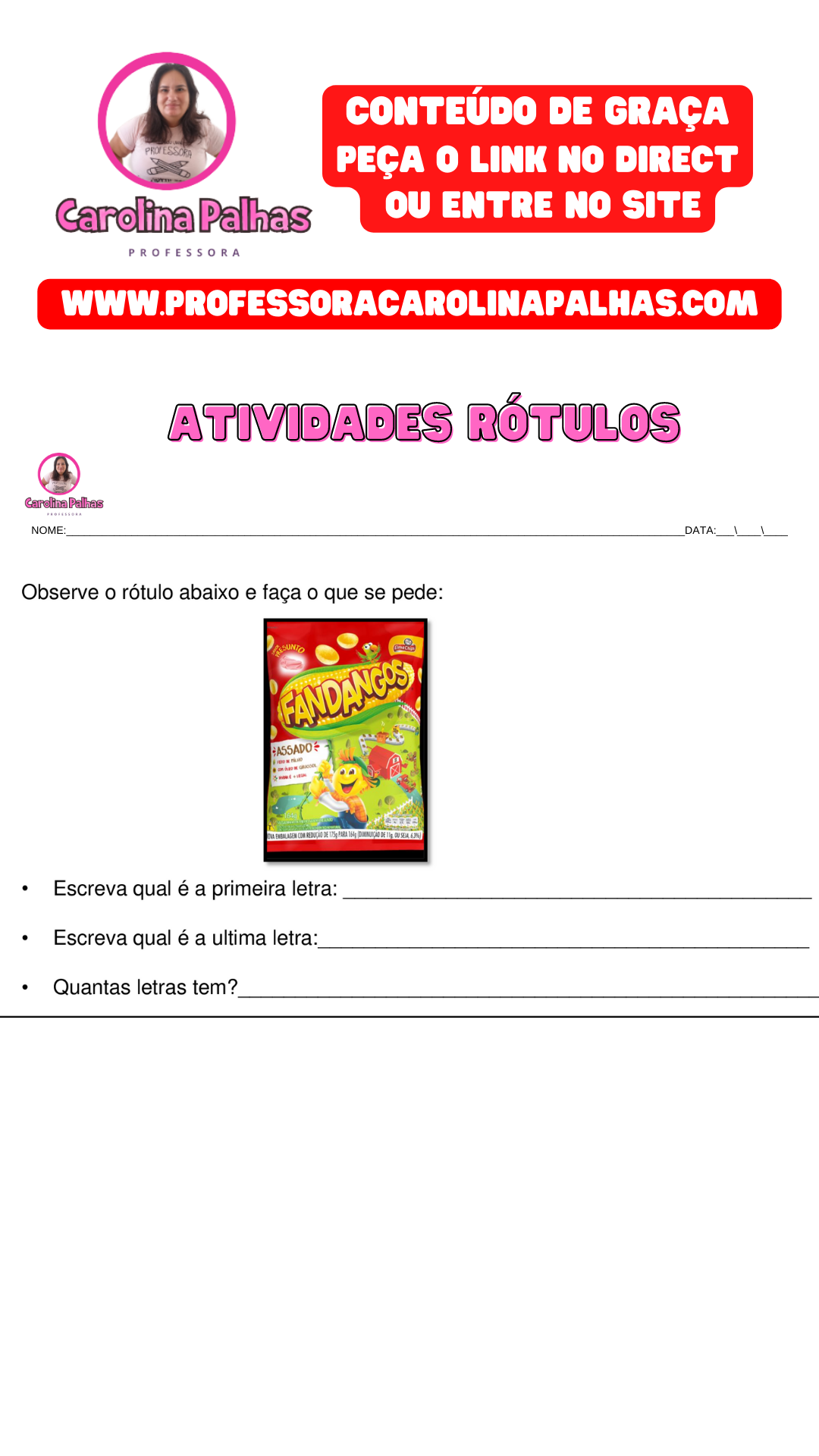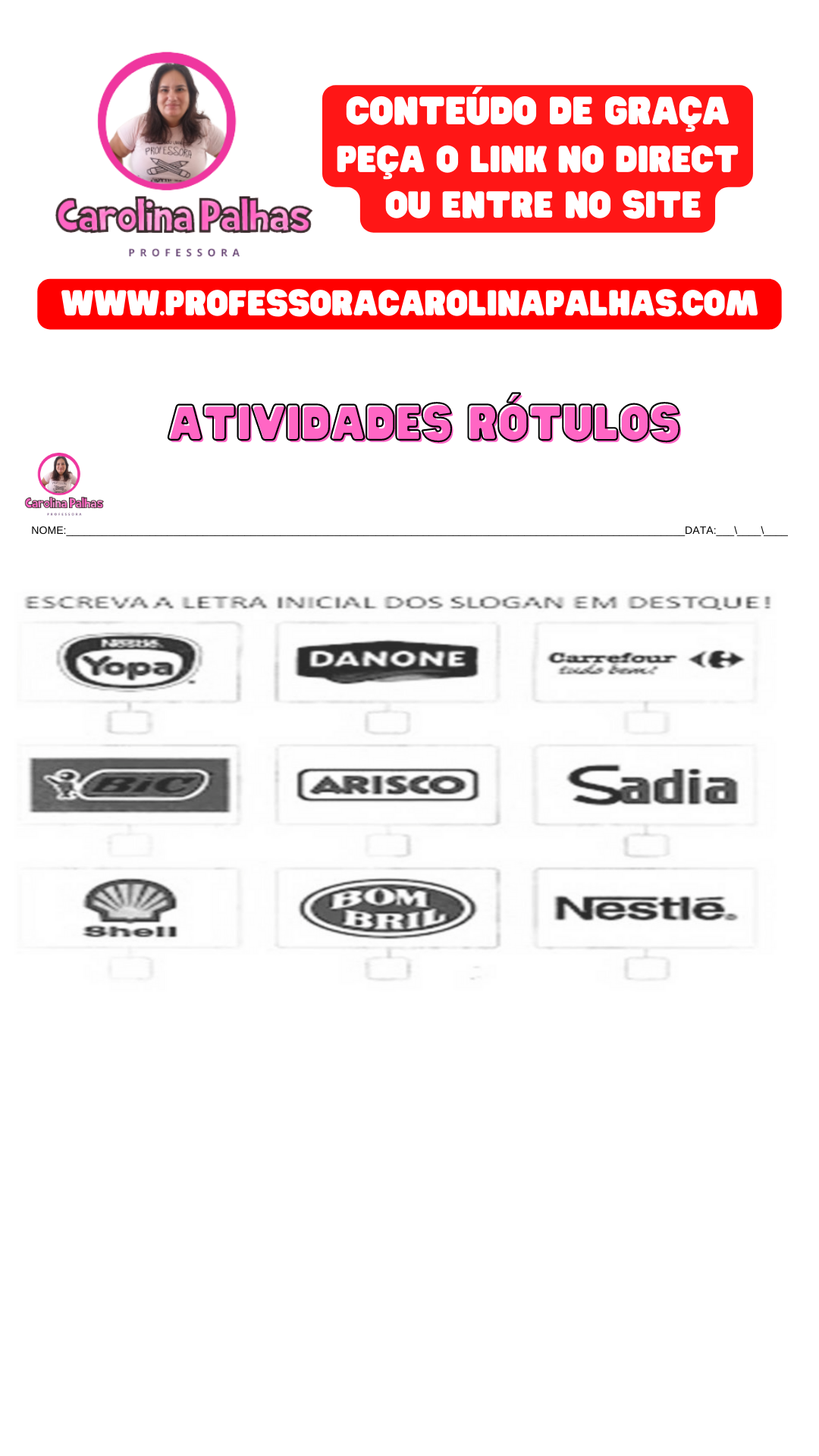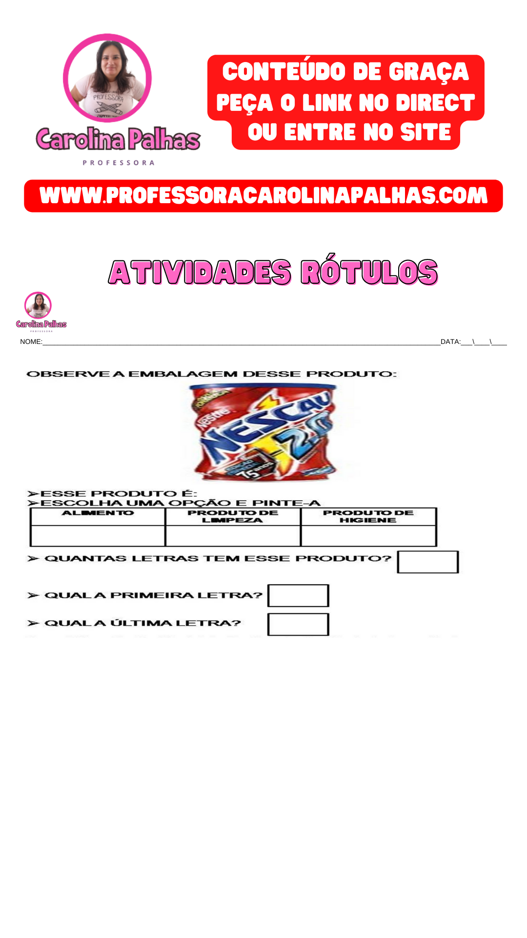 OBSERVAÇÃO: Esse material é feito exclusivamente por mim! O material é para uso educacional e gratuito e somente pode ser compartilhado através do link desta postagem! Qualquer forma de copiar esse material e compartilhar em PDFS ou imagens e sem consentimento constitui crime, pela lei de direitos autorais!