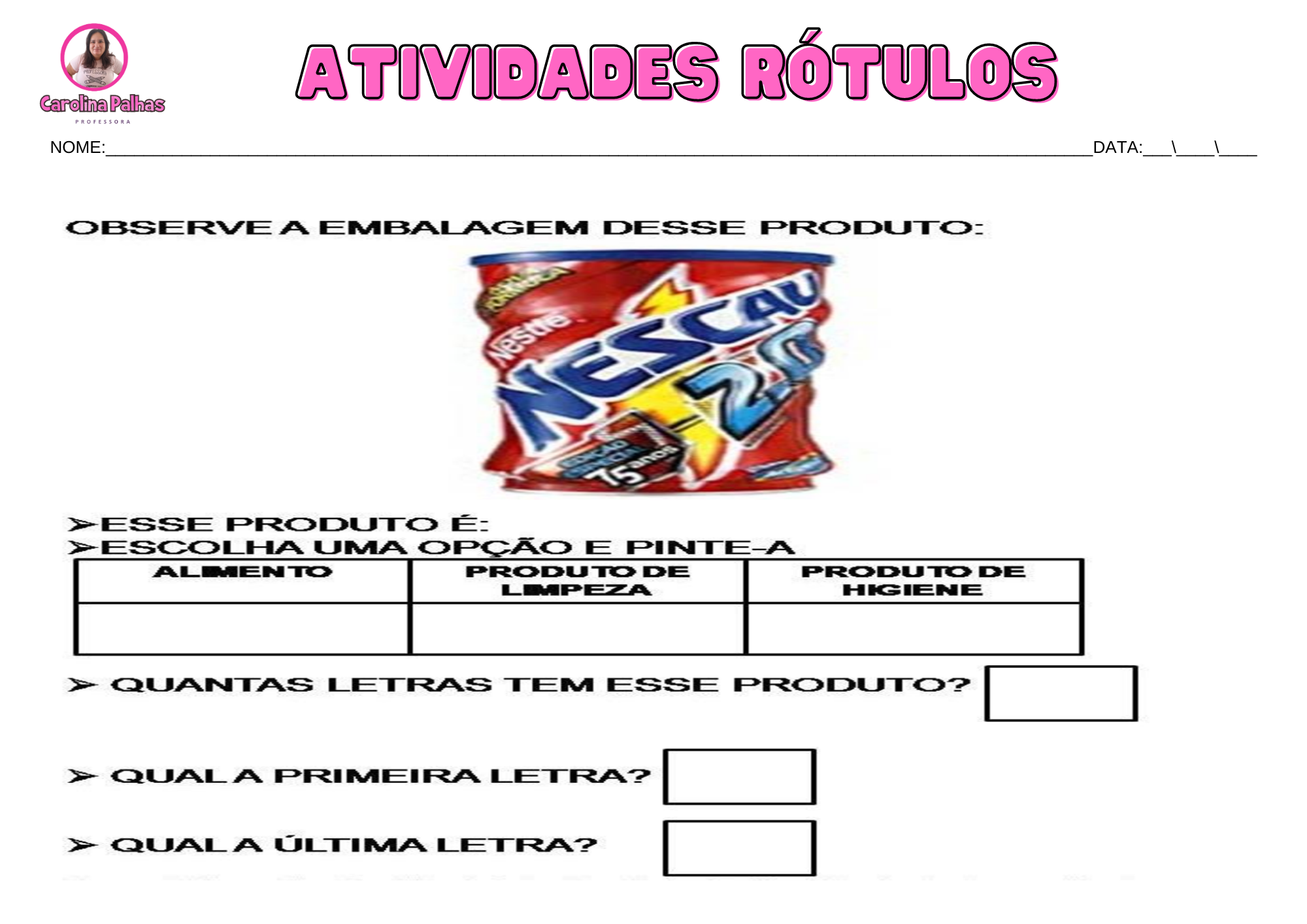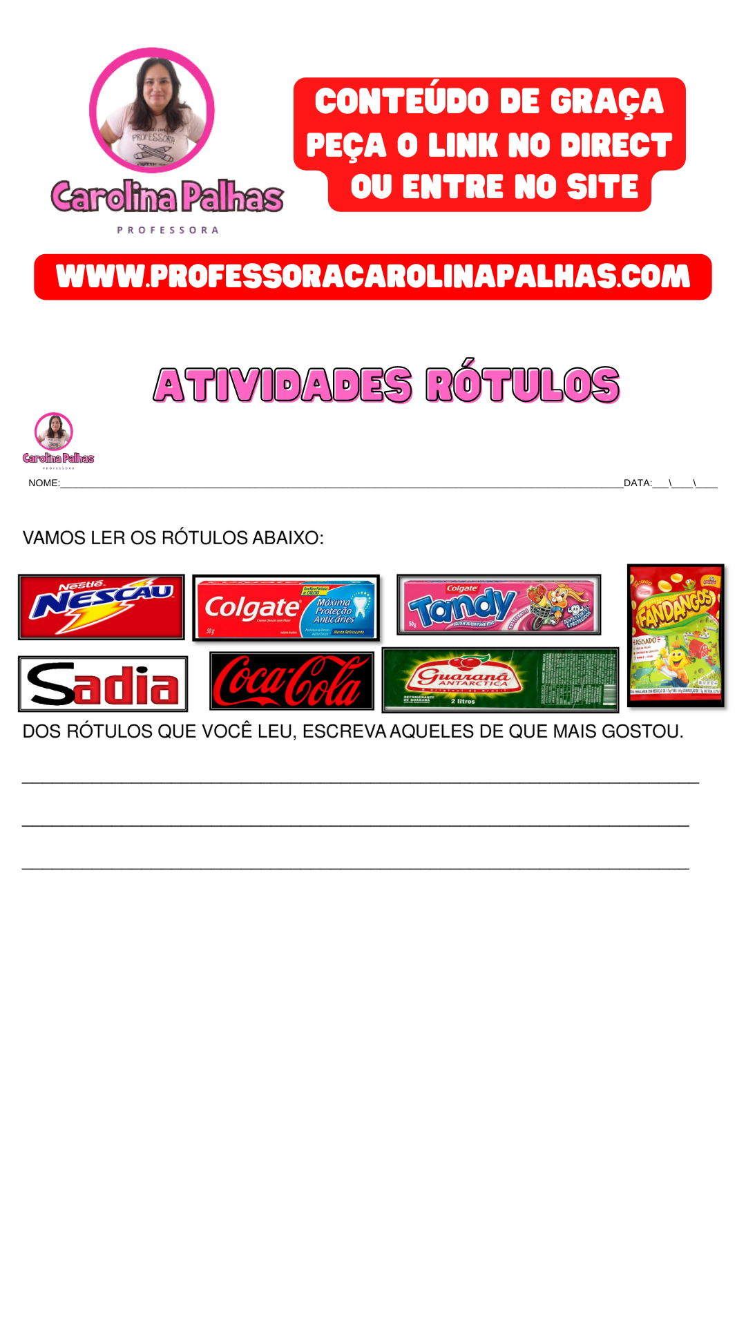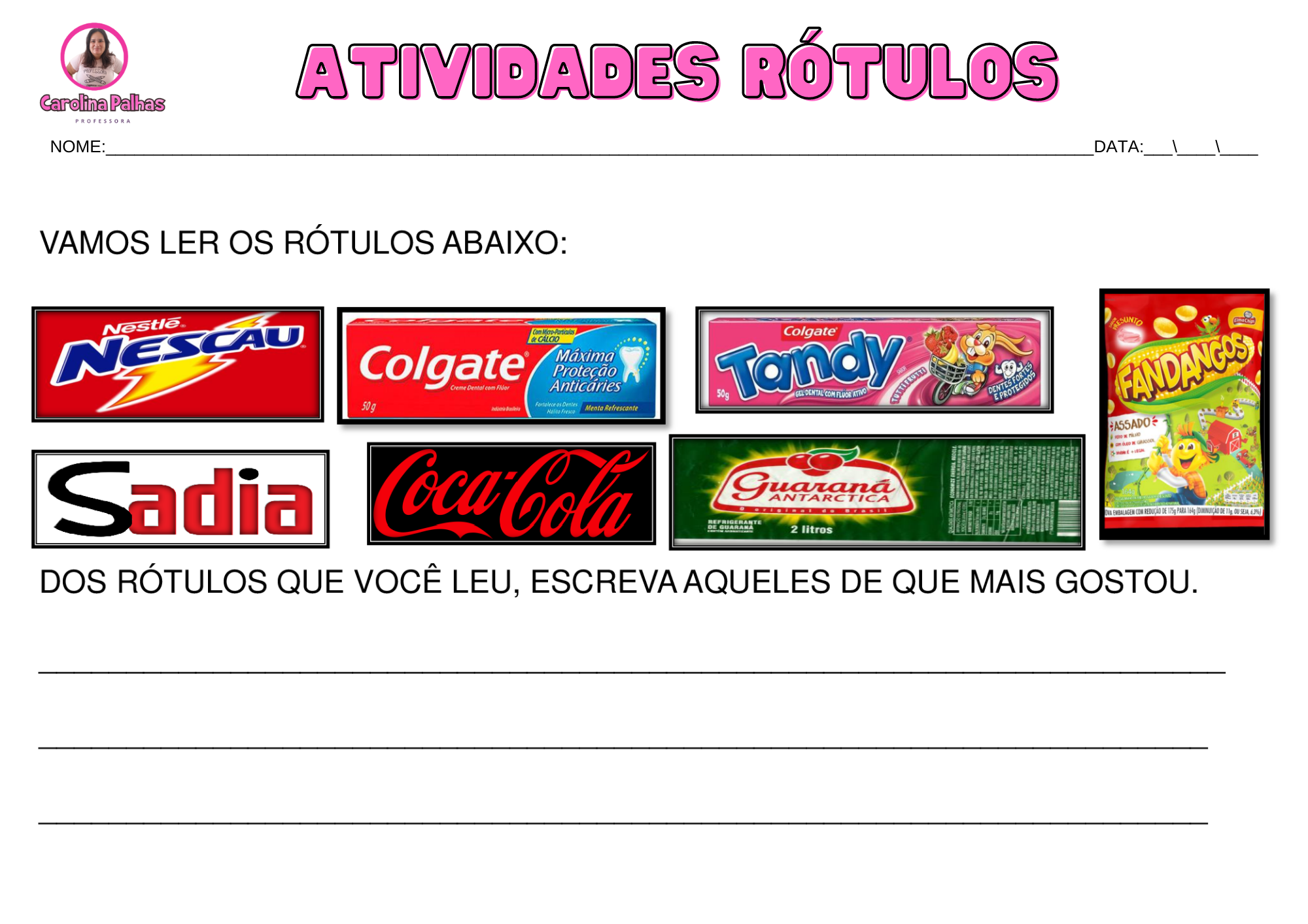 Sabemos que a escrita está presente no cotidiano dos alunos, principalmente nas embalagens existentes dentro das suas casas. É de suma importância a leitura de rótulos na educação infantil,para que os alunos conheçam e valorizem a cultura destas escritas. São rótulos e embalagens de alimentos, de limpeza e outros.