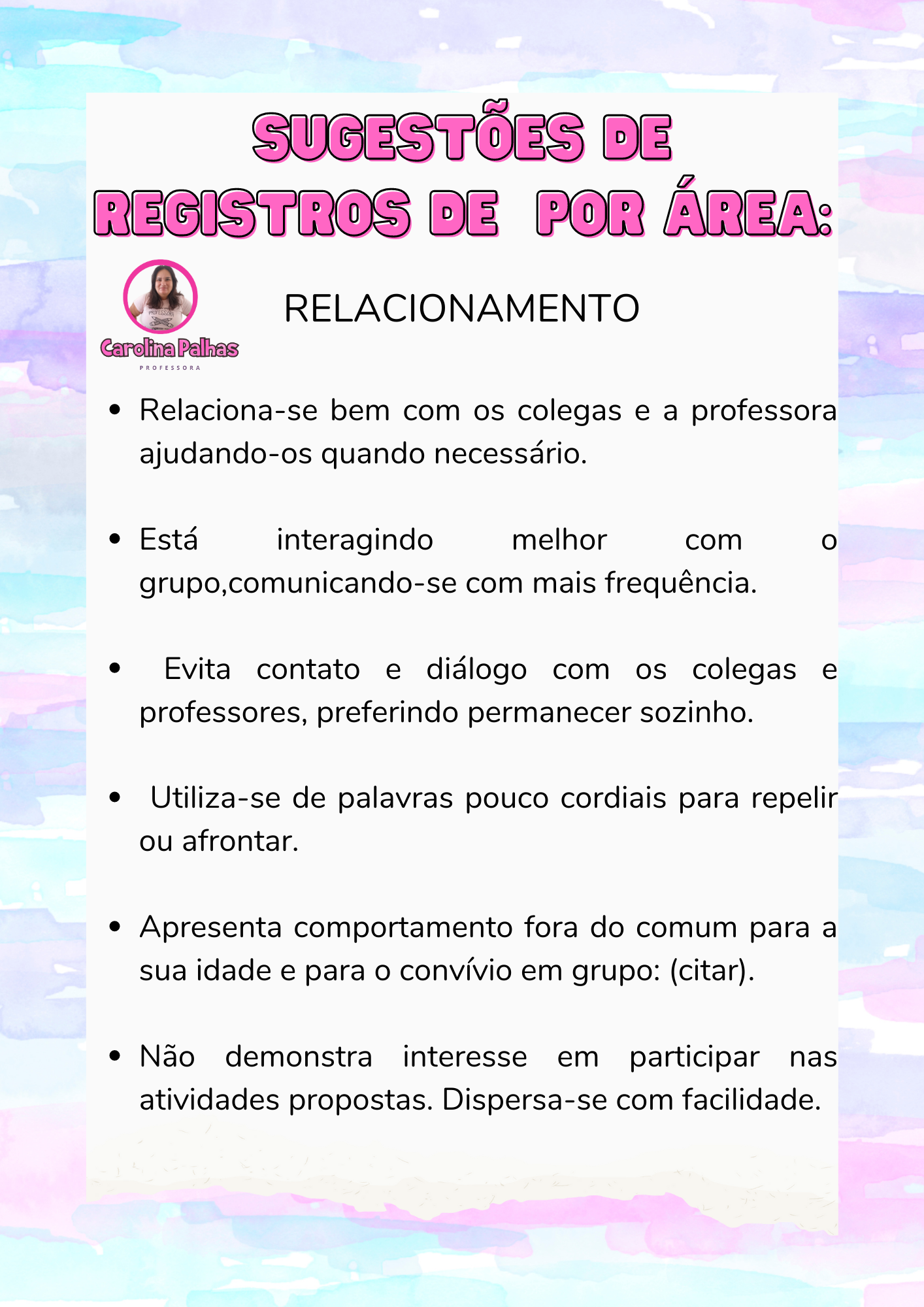• Relaciona-se bem com os colegas e a professora ajudando-os quando necessário.