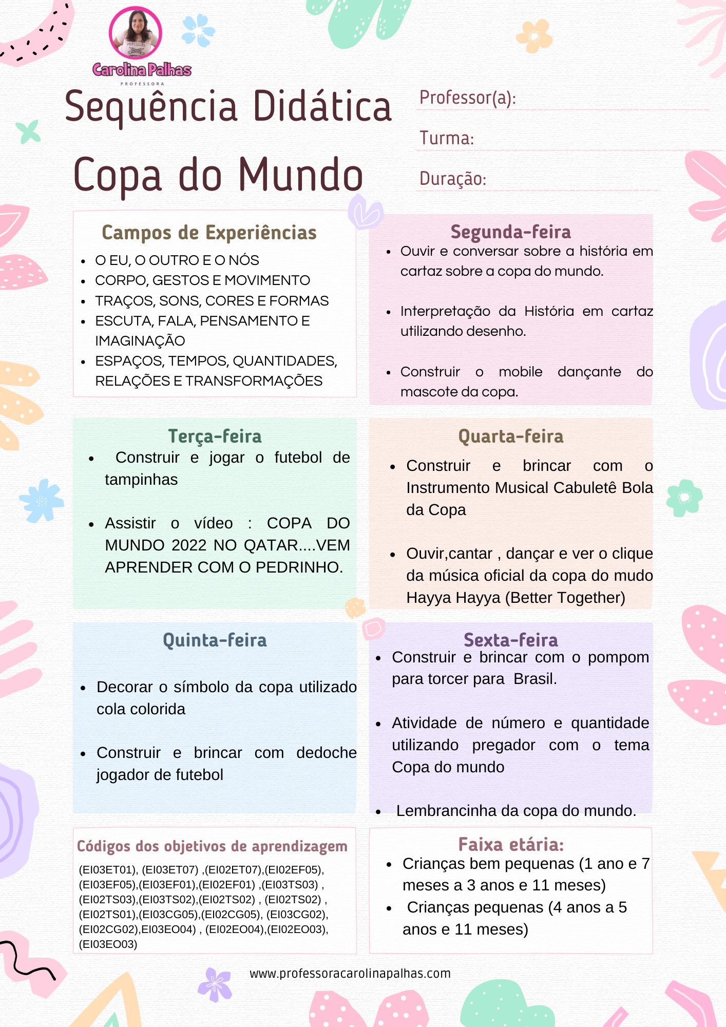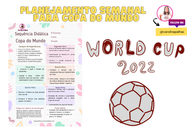 O ano de 2022 nos traz mais uma Copa do Mundo para torcer pela seleção brasileira. Mas os jogos podem ir além das televisões e chegar na sala de aula. Que tal usar a Copa do Mundo na Educação Infantil ?A seguir, trago um planejamento semanal com o tema Copa do Mundo para as crianças da Educação Infantil de acordo com a BNCC