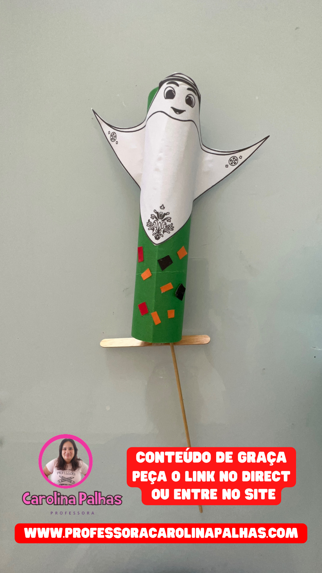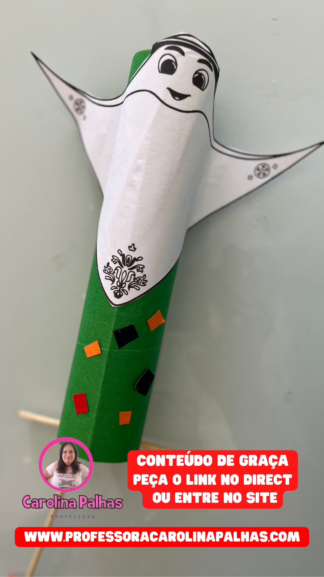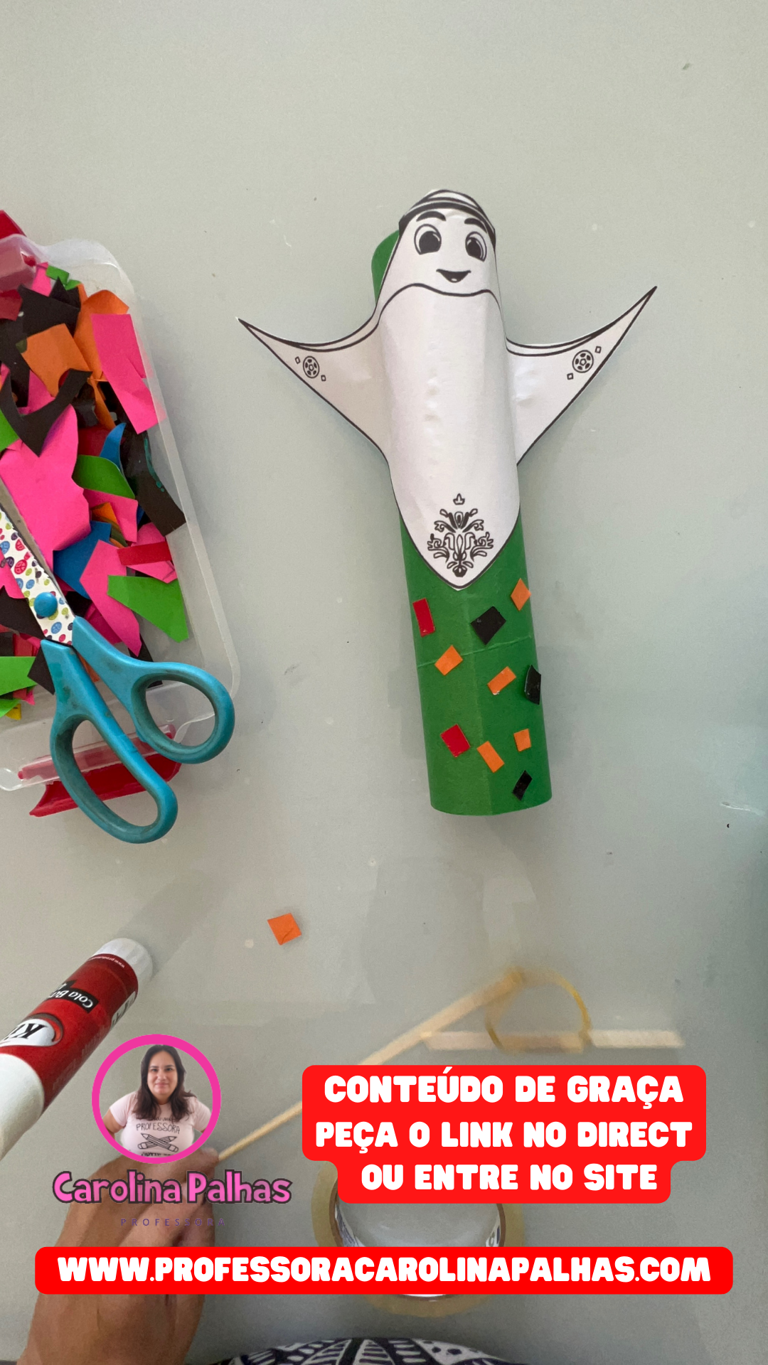 Quando tudo estiver seco, cole o mascote no rolinho