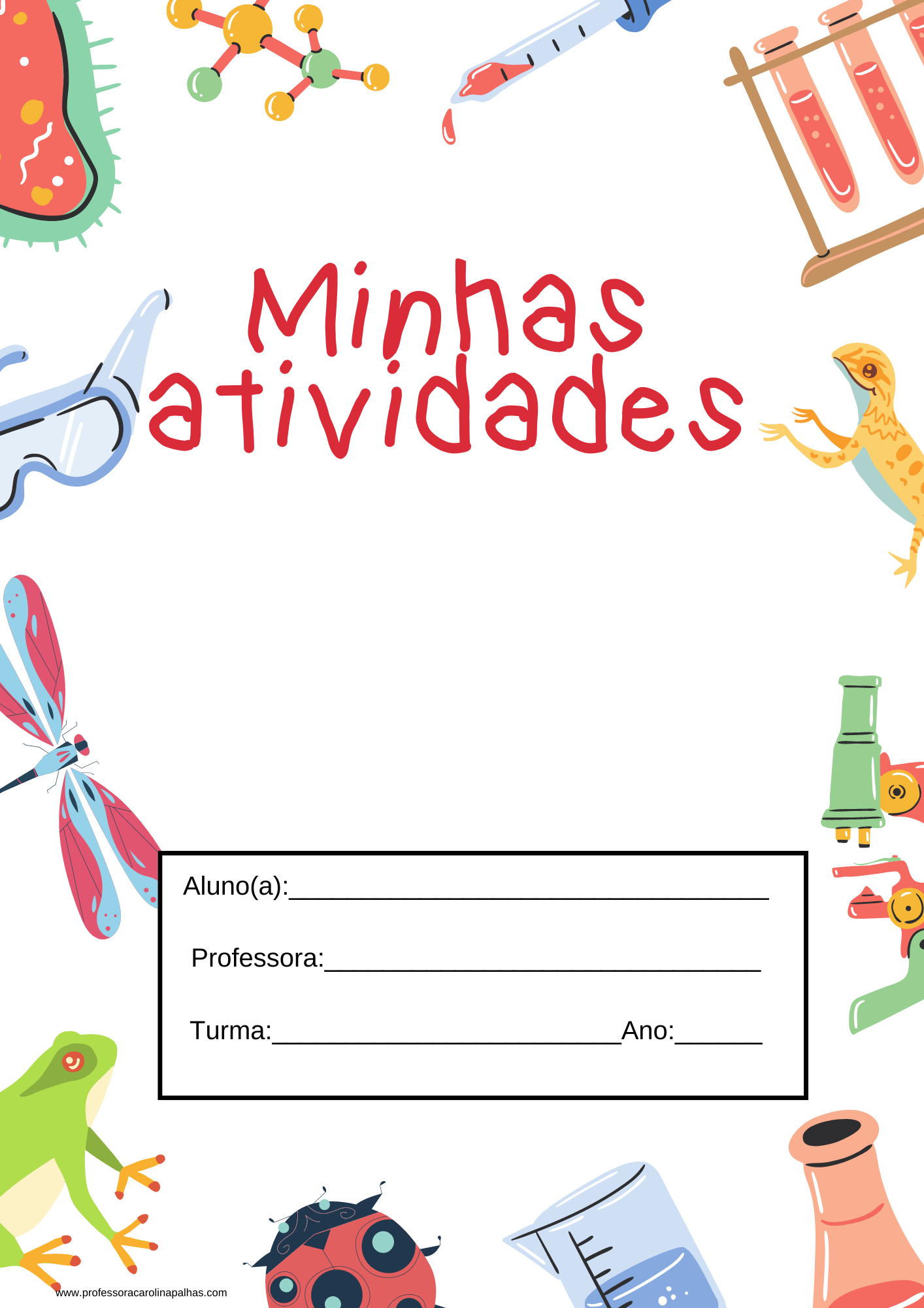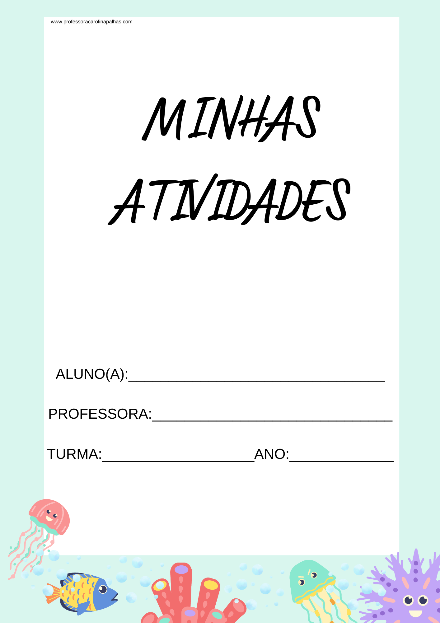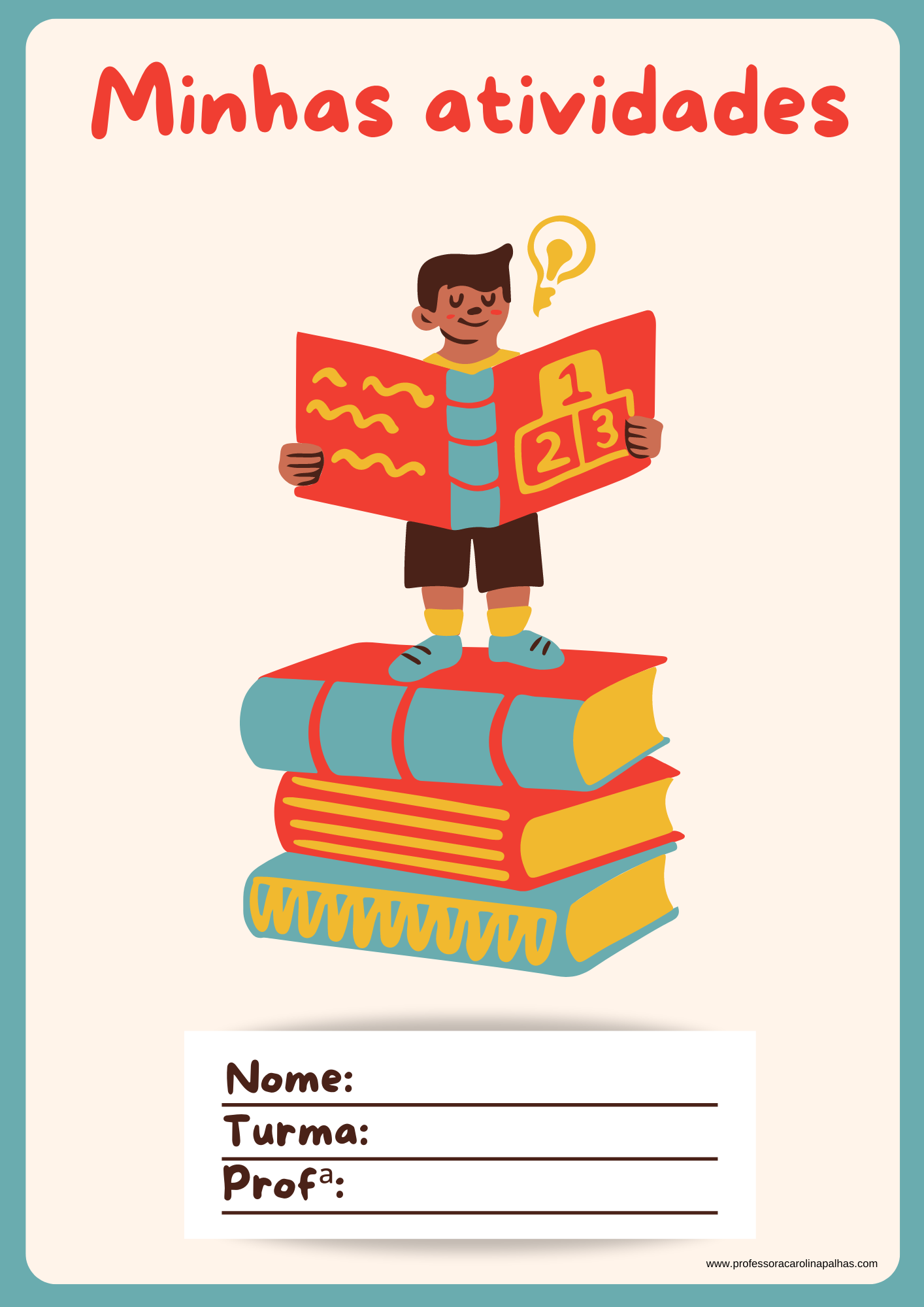 Modelo de capinha para portfólio de atividades ou avaliações finais dos alunos.