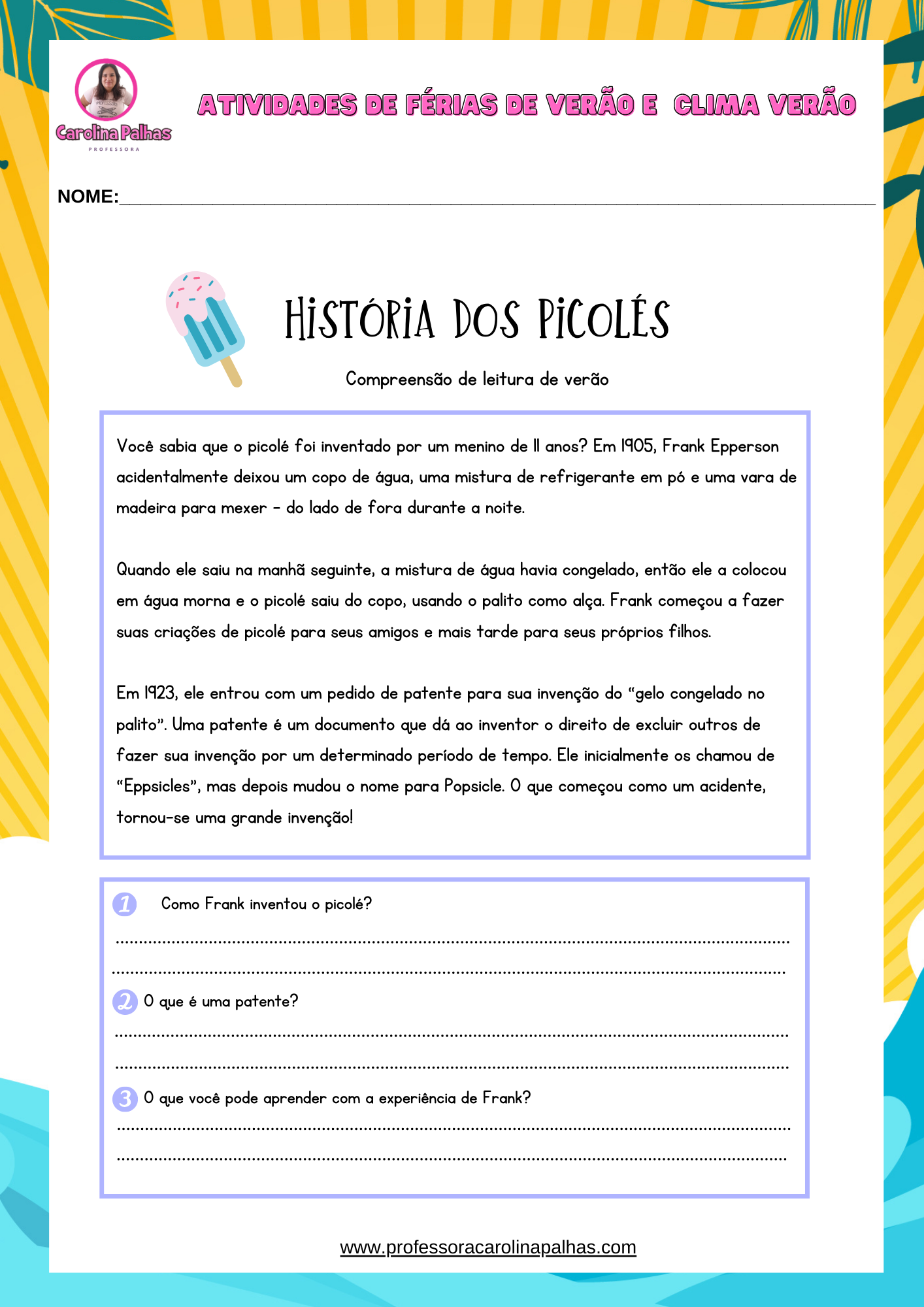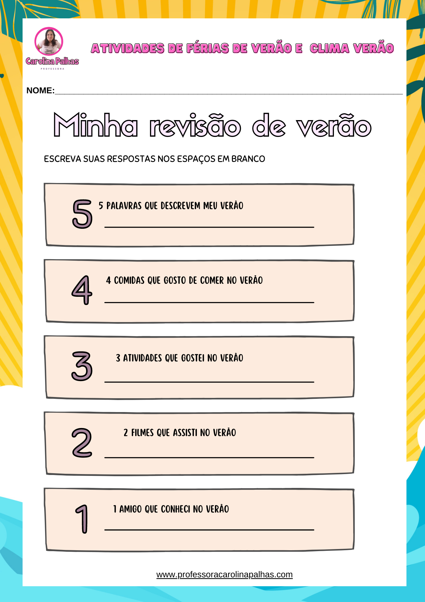 • ATIVIDADE FÉRIAS DE VERÃO