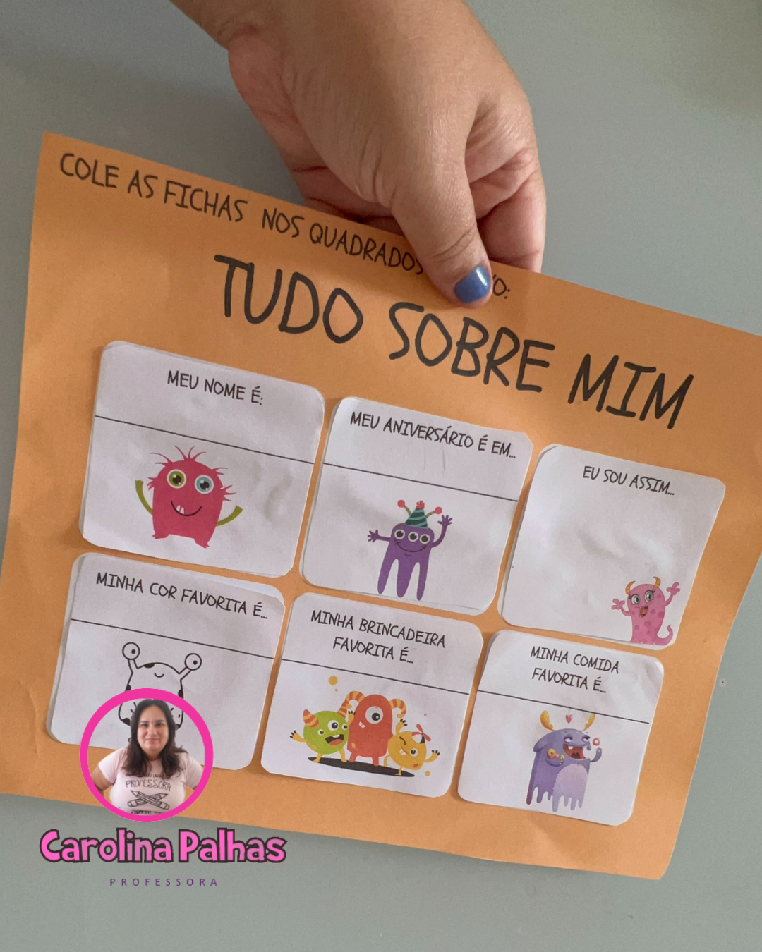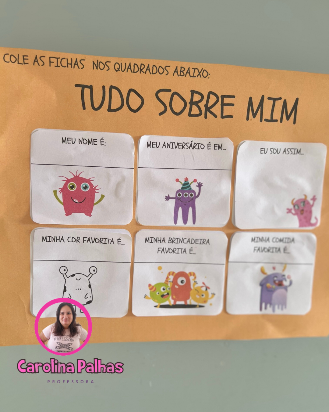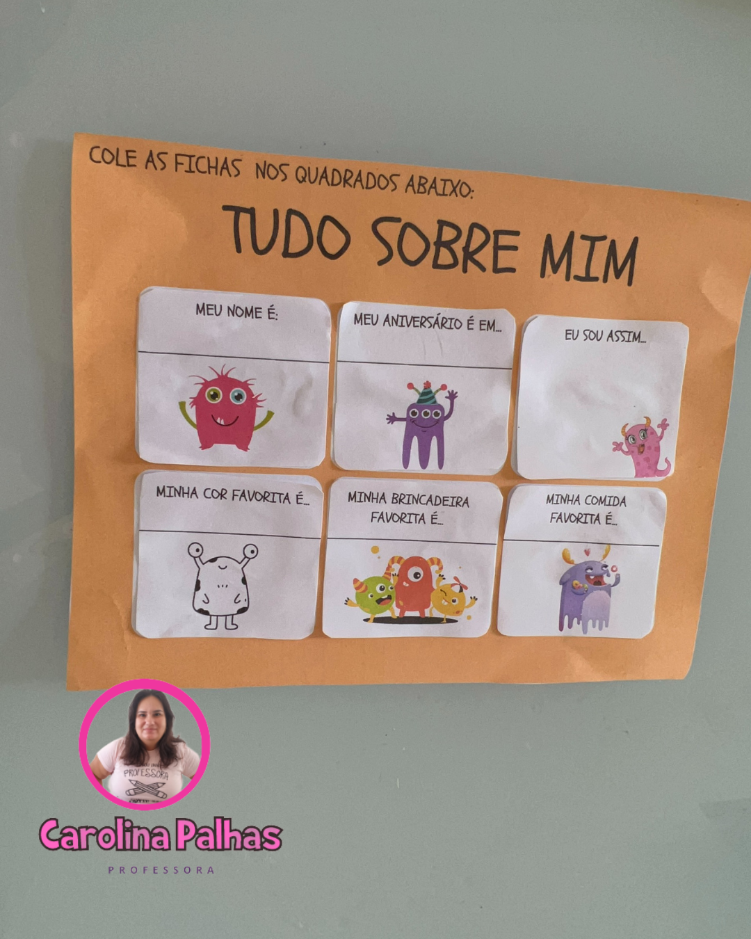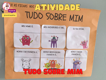 As atividades “Tudo Sobre Mim” é uma maneira divertida para as crianças conhecerem os gostos e preferências dos colegas, além de ser uma ótima maneira de promover uma reflexão e ajudar as pessoas de um grupo a se conhecerem melhor .