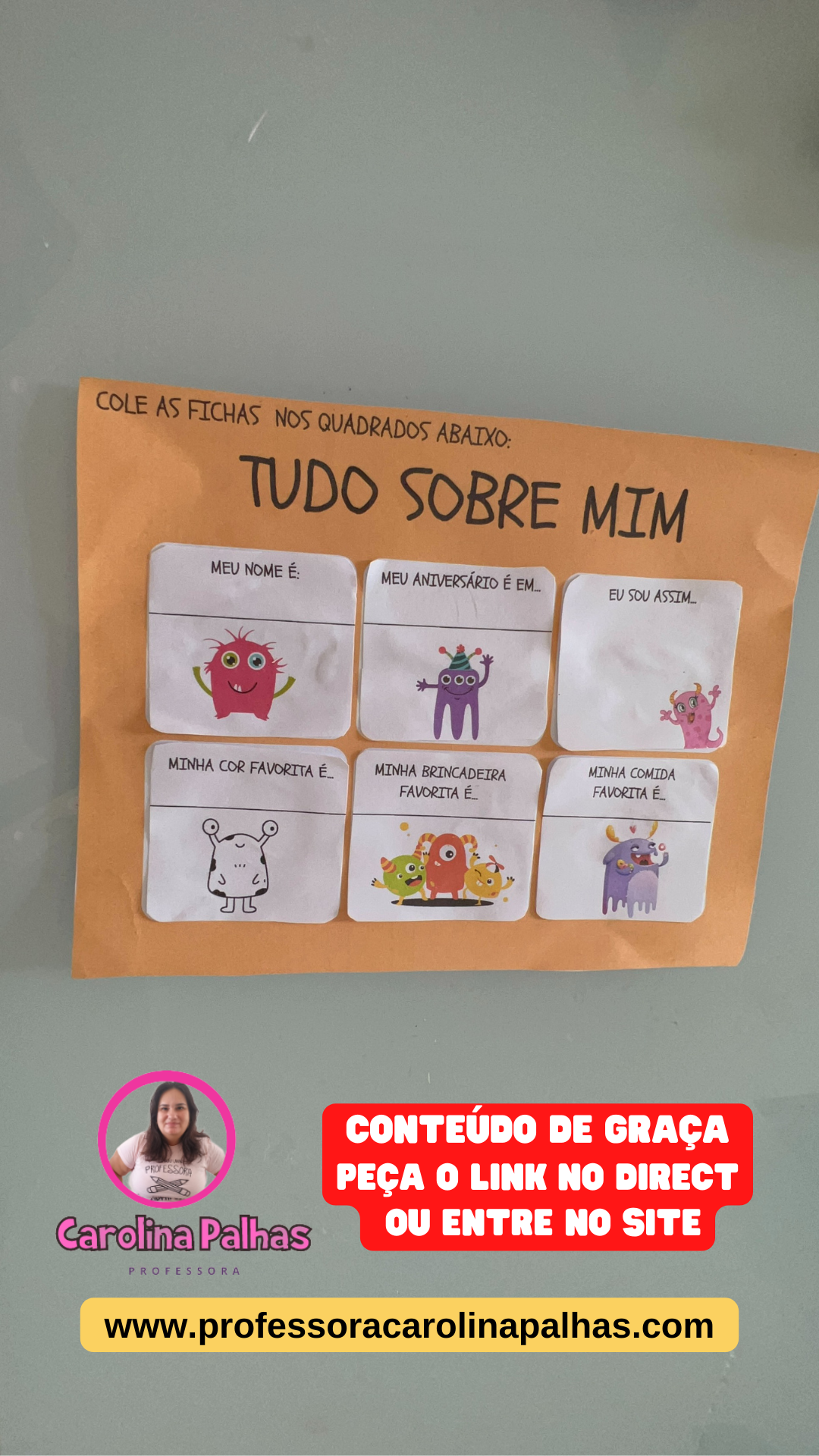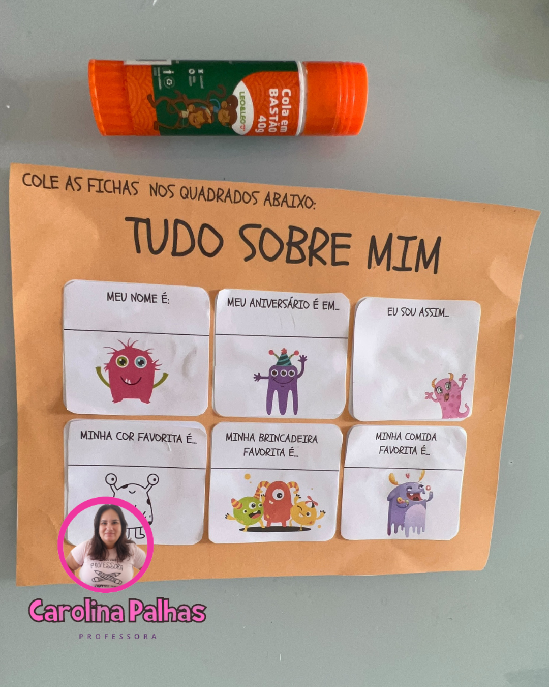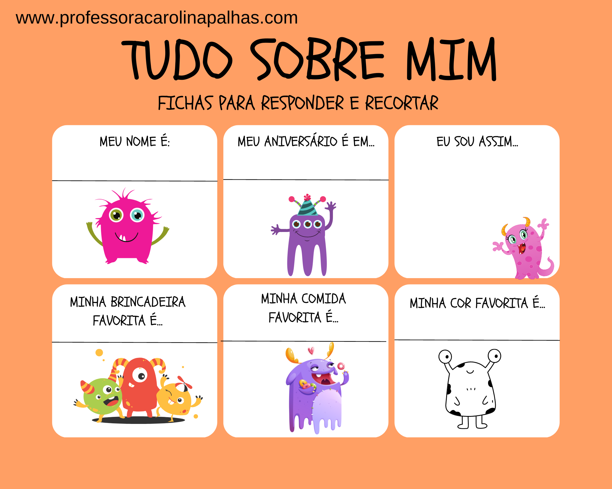 As atividades “Tudo Sobre Mim” é uma maneira divertida para as crianças conhecerem os gostos e preferências dos colegas, além de ser uma ótima maneira de promover uma reflexão e ajudar as pessoas de um grupo a se conhecerem melhor .