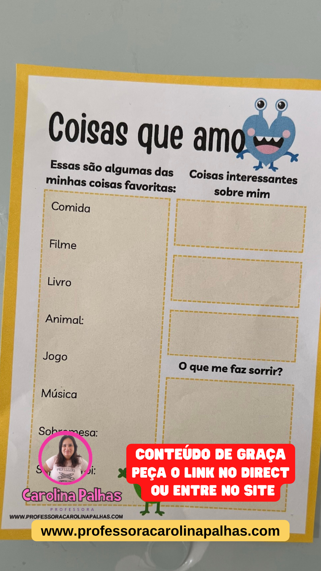 OBSERVAÇÃO: Esse material é feito exclusivamente por mim! O material é para uso educacional e gratuito e somente pode ser compartilhado através do link desta postagem! Qualquer forma de copiar esse material e compartilhar em PDFS ou imagens e sem consentimento constitui crime, pela lei de direitos autorais!