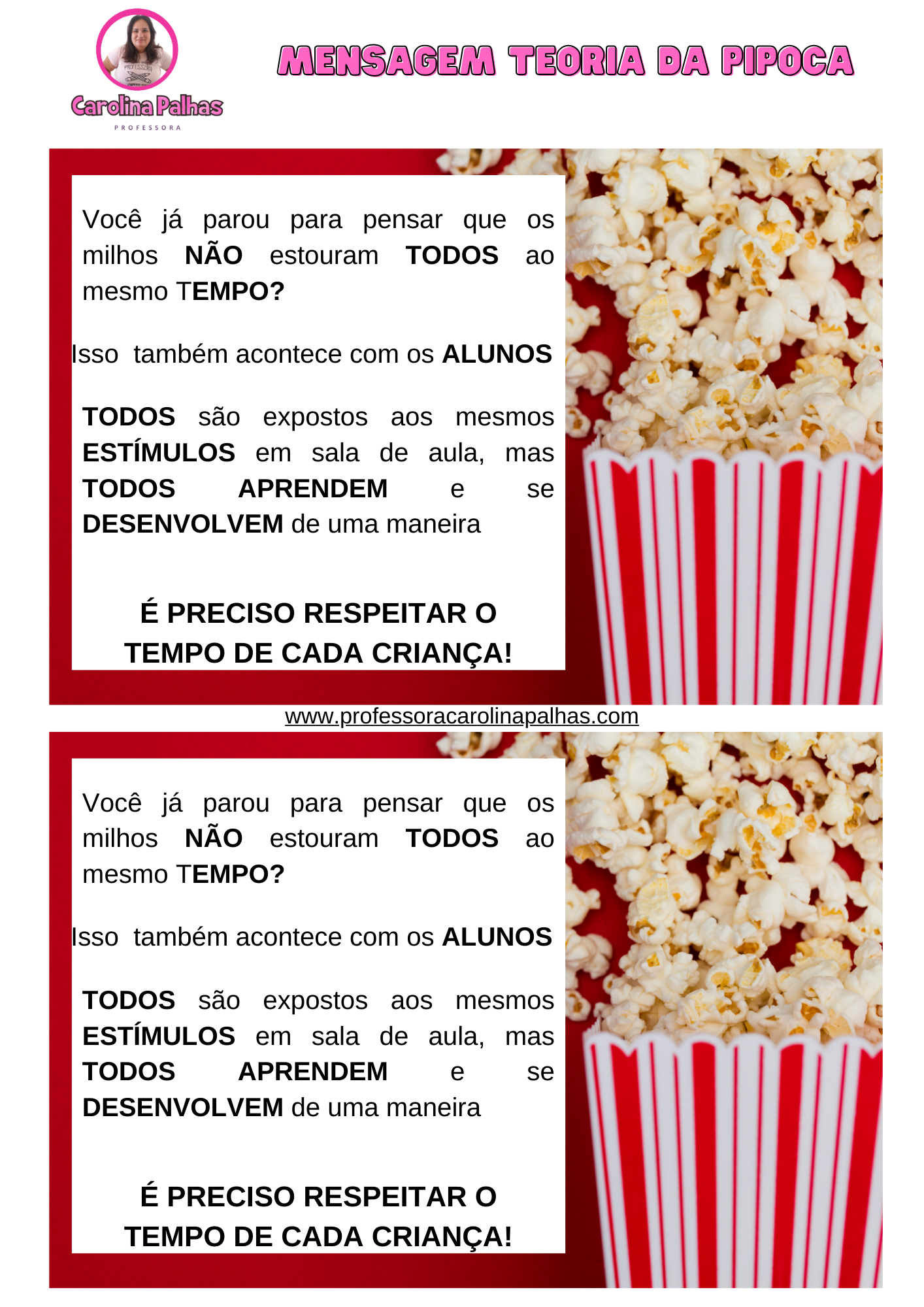 Mensagem reunião de pais|Teoria da pipoca