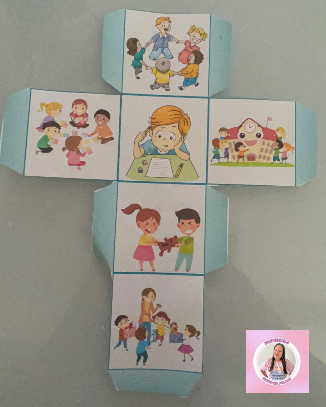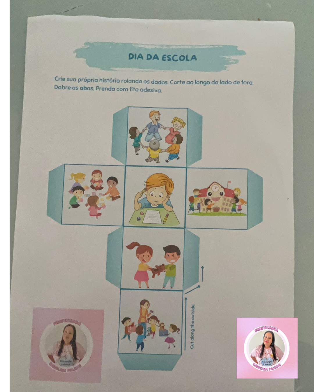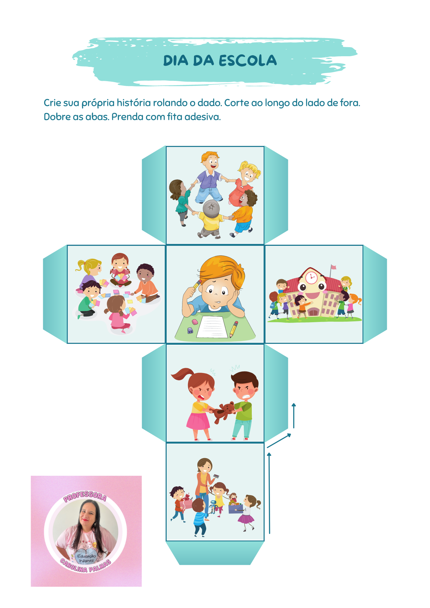 Atividade dia a Escola|Dado para auxiliar na construção de histórias