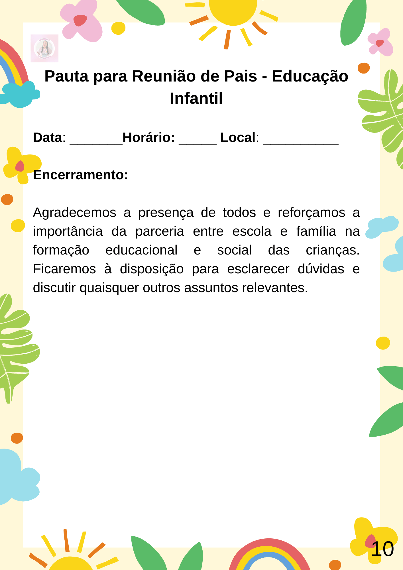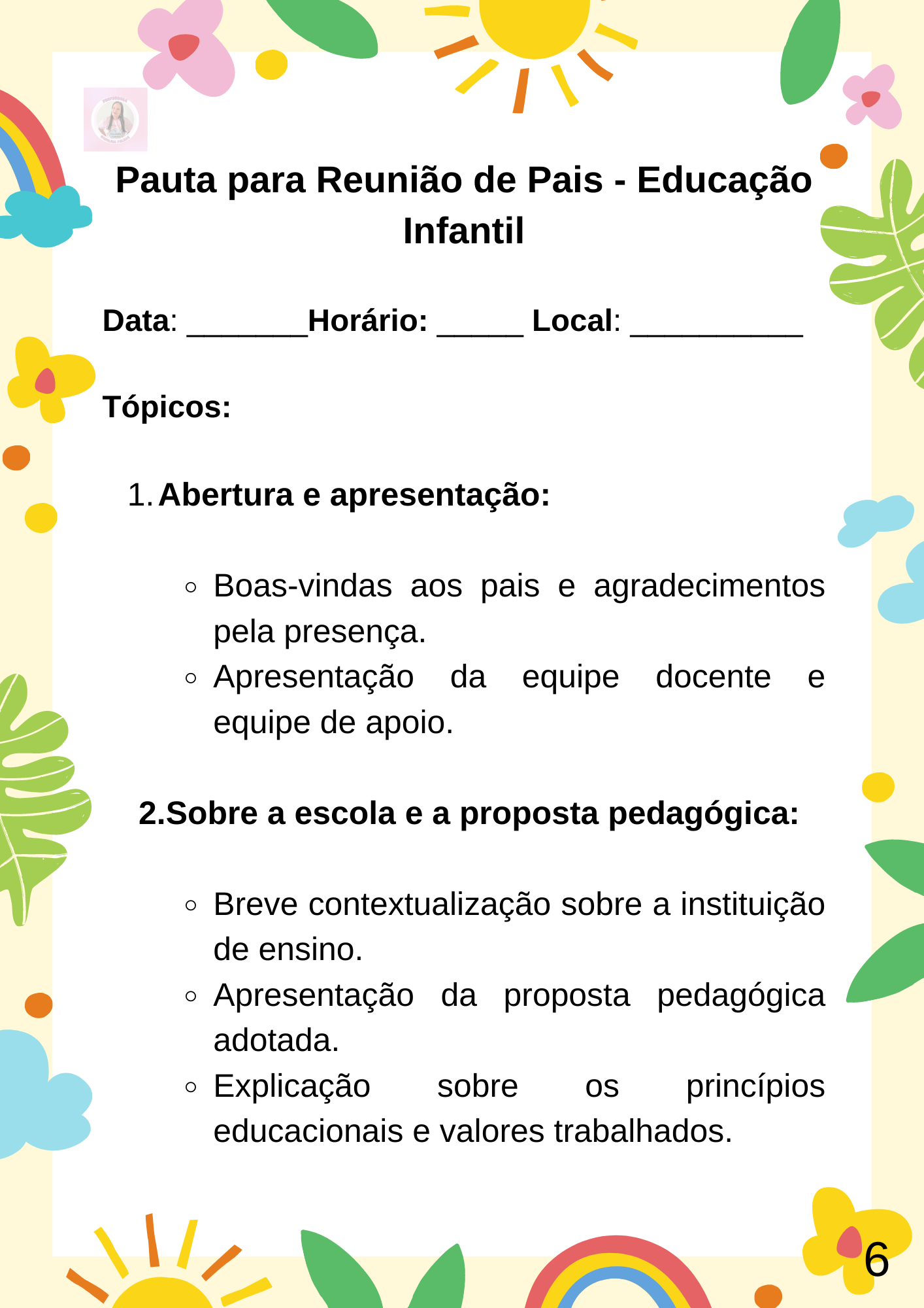 Clique aqui para baixar em PDF o Modelo 1 da Pauta para Reunião de Pais