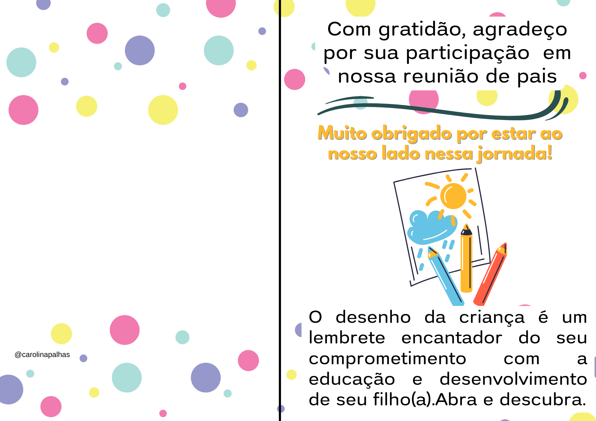 Em resumo, a reunião de pais é de extrema importância, pois promove a comunicação, o envolvimento e a colaboração entre a escola e a família. Ela fornece uma plataforma para o compartilhamento de informações, o estabelecimento de metas comuns e o apoio mútuo no processo educativo das crianças. Ao participar ativamente dessas reuniões, os pais demonstram seu compromisso com a educação e contribuem para o sucesso acadêmico e pessoal de seus filhos.