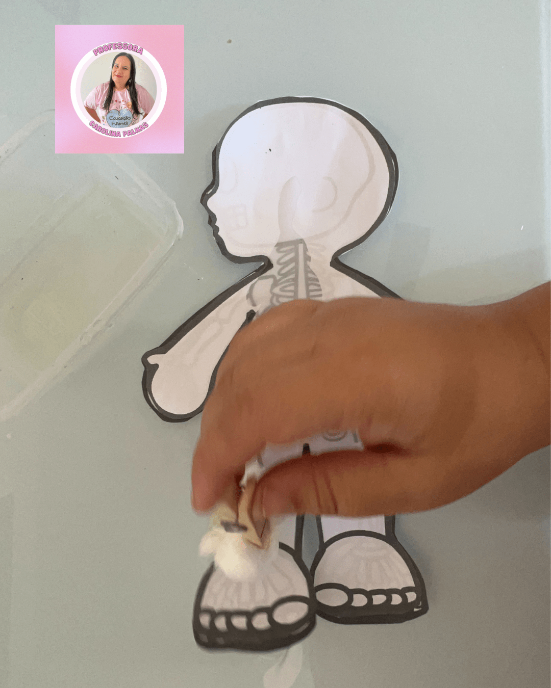 Lembre-se de supervisionar a atividade e garantir que a criança esteja utilizando os materiais de forma segura. Essa atividade pode ser uma forma divertida de aprender sobre a estrutura do corpo humano e a função dos ossos.