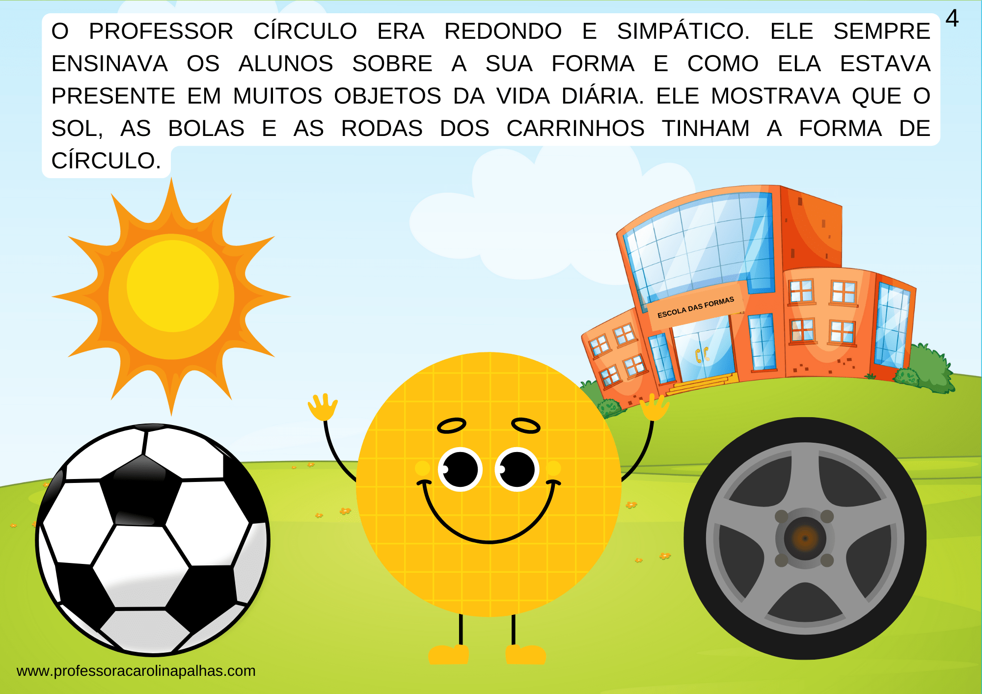 Você conhecerá a Escola das Formas, o centro educacional de Formolândia, onde as formas geométricas aprendem sobre suas características únicas e como se relacionam com os objetos do cotidiano. O professor Círculo, com sua simpatia contagiante, ensinará sobre a sua própria forma e como ela está presente em diversos objetos da vida diária, como o sol, as bolas e as rodas dos carrinhos.
