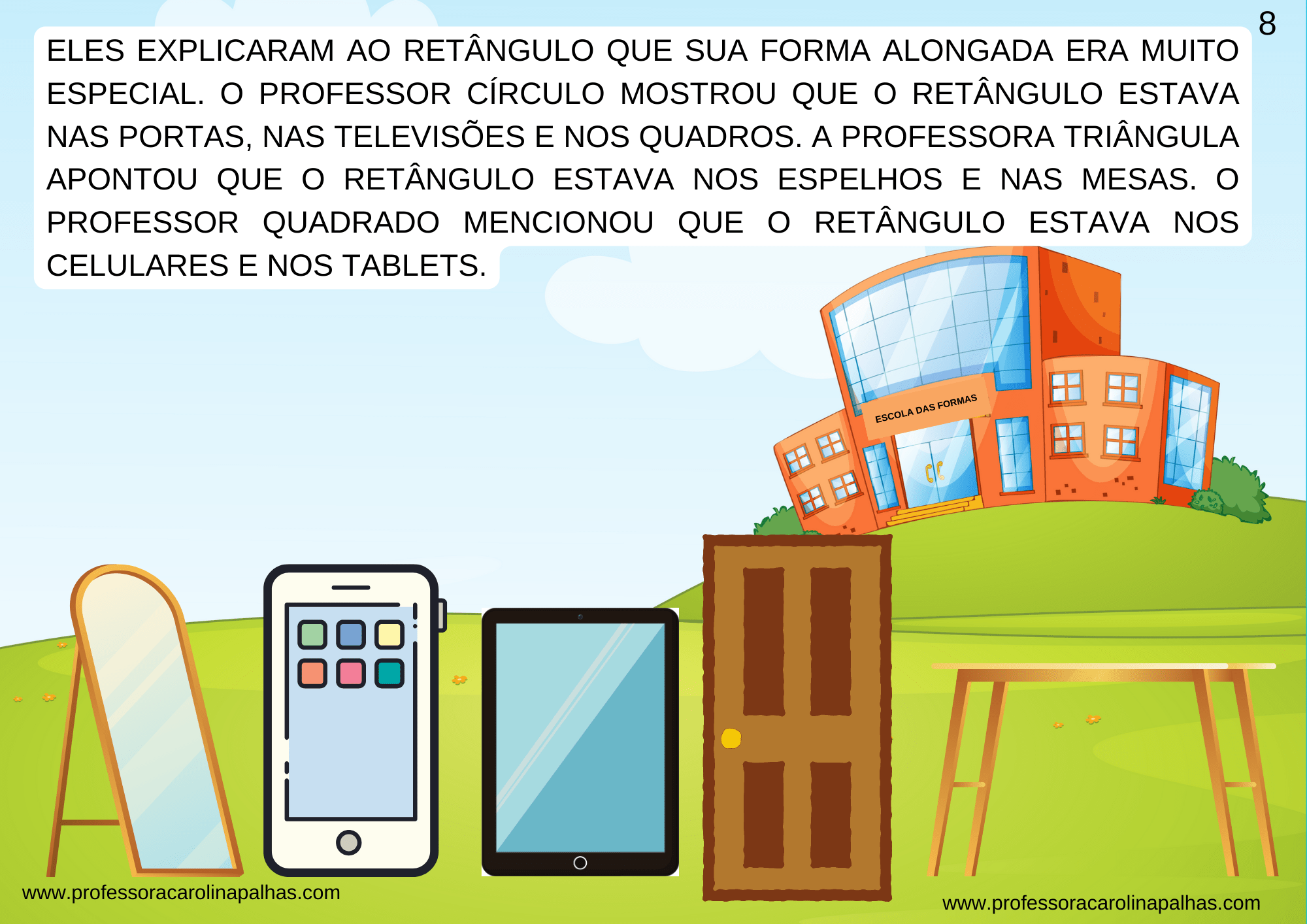 Mas a aventura não para por aí! Ao baixar o PDF da história, você poderá se deliciar com as ilustrações encantadoras que dão vida aos personagens e objetos do cotidiano. Além disso, coloquei o vídeo narrado, onde você poderá se envolver ainda mais na história e acompanhar cada detalhe da jornada das formas geométricas.
