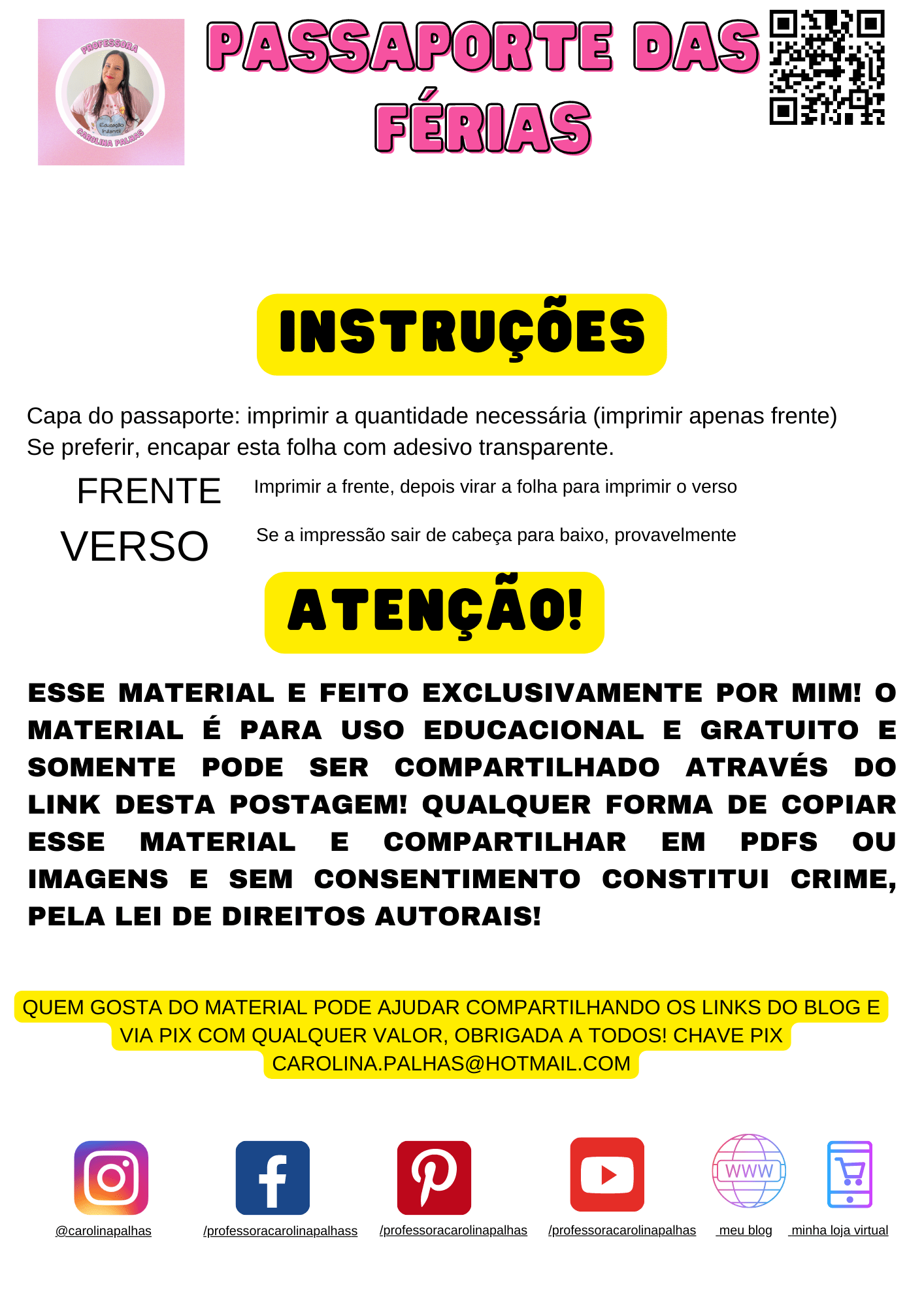 OBSERVAÇÃO: Esse material é feito exclusivamente por mim! O material é para uso educacional e gratuito e somente pode ser compartilhado através do link desta postagem! Qualquer forma de copiar esse material e compartilhar em PDFS ou imagens e sem consentimento constitui crime, pela lei de direitos autorais!
