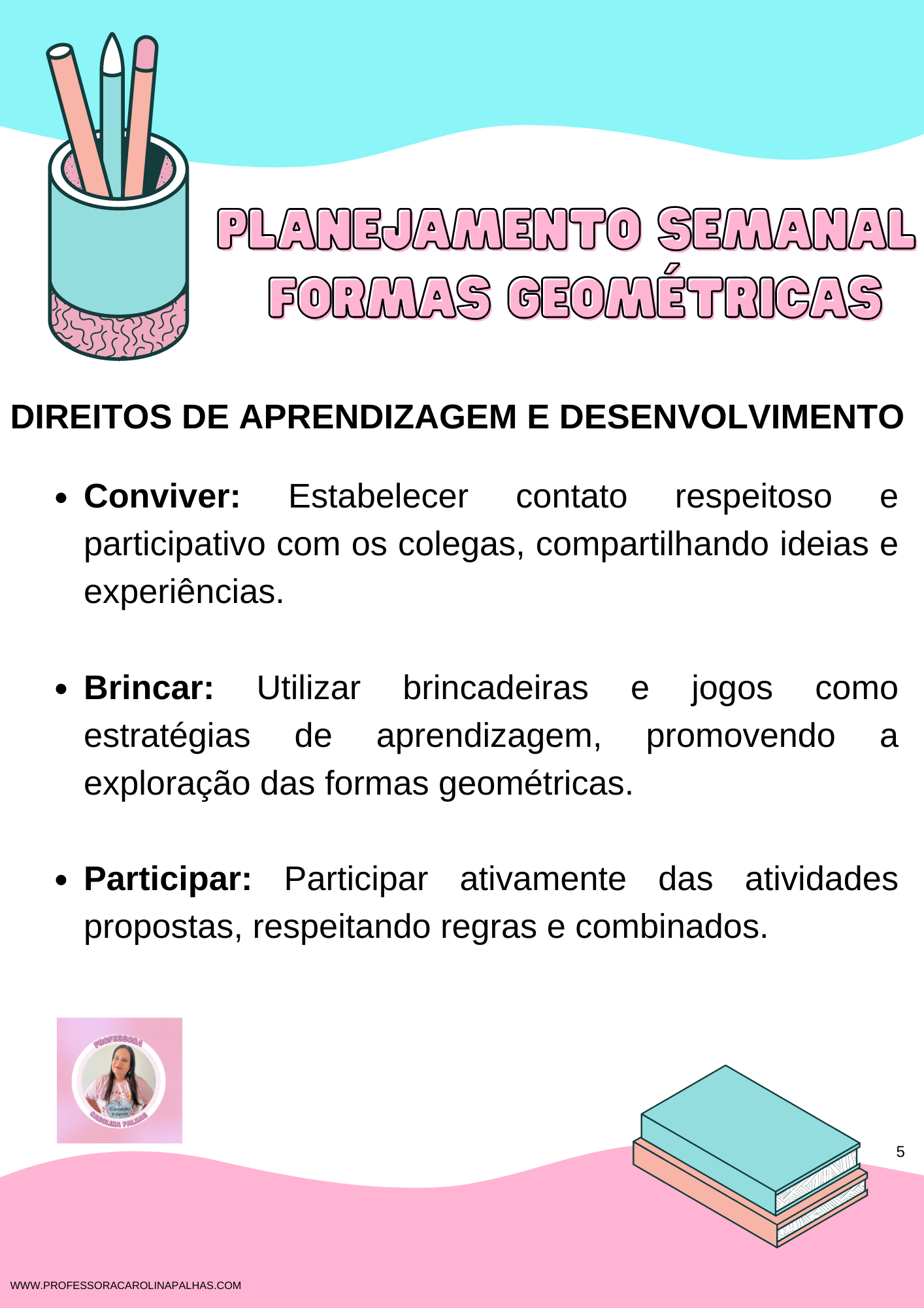Olá, queridos leitores! Hoje tenho uma novidade maravilhosa para compartilhar com vocês. Acabei de disponibilizar em nosso blog um planejamento semanal gratuito com o tema formas geométricas para a educação infantil. Tenho certeza de que vocês vão adorar explorar esse mundo encantador junto com suas crianças!