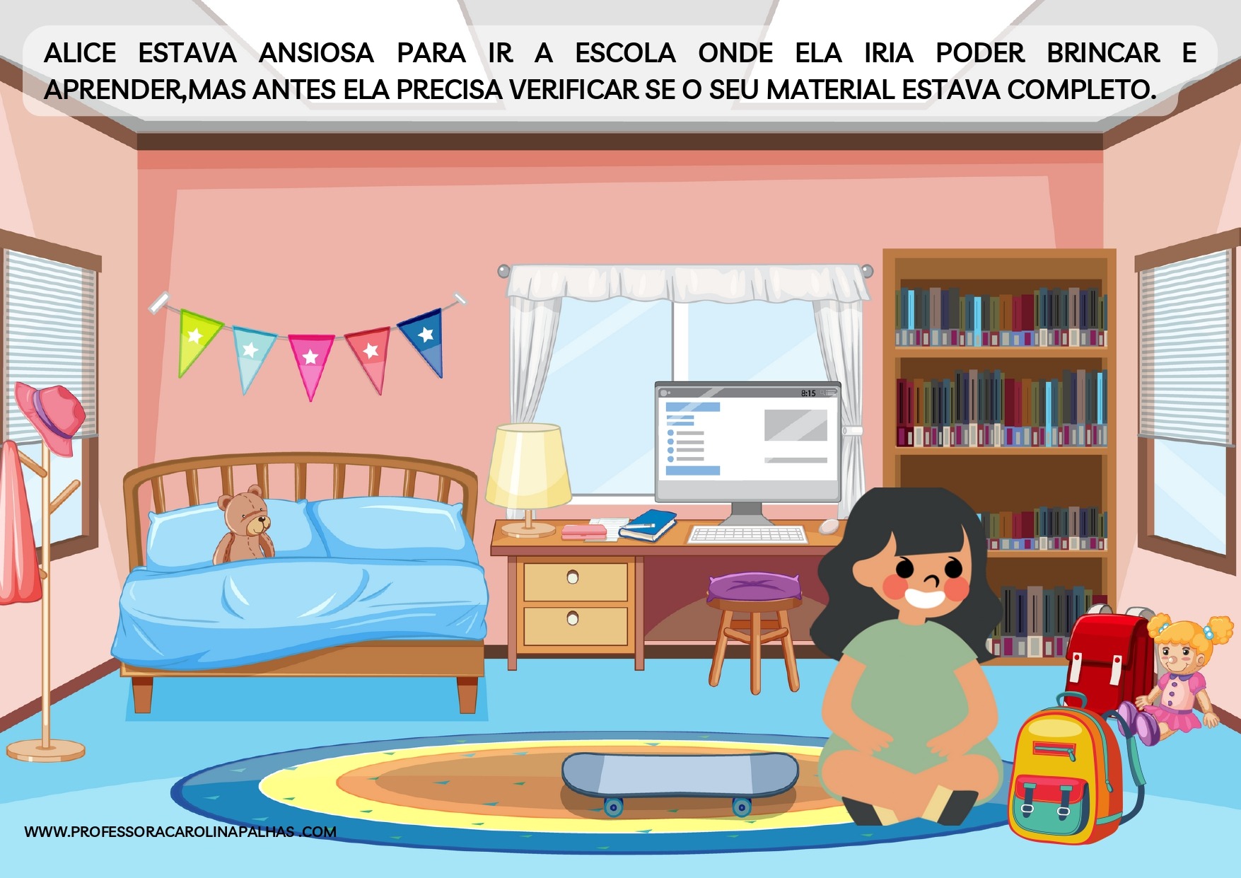 No trecho inicial de nossa história, acompanhamos Alice enquanto ela se prepara para embarcar nessa nova etapa. Seus olhinhos brilham de expectativa, enquanto ela organiza seu material escolar e escolhe sua mochila favorita. Tudo precisa estar perfeito para começar o segundo semestre com o pé direito.