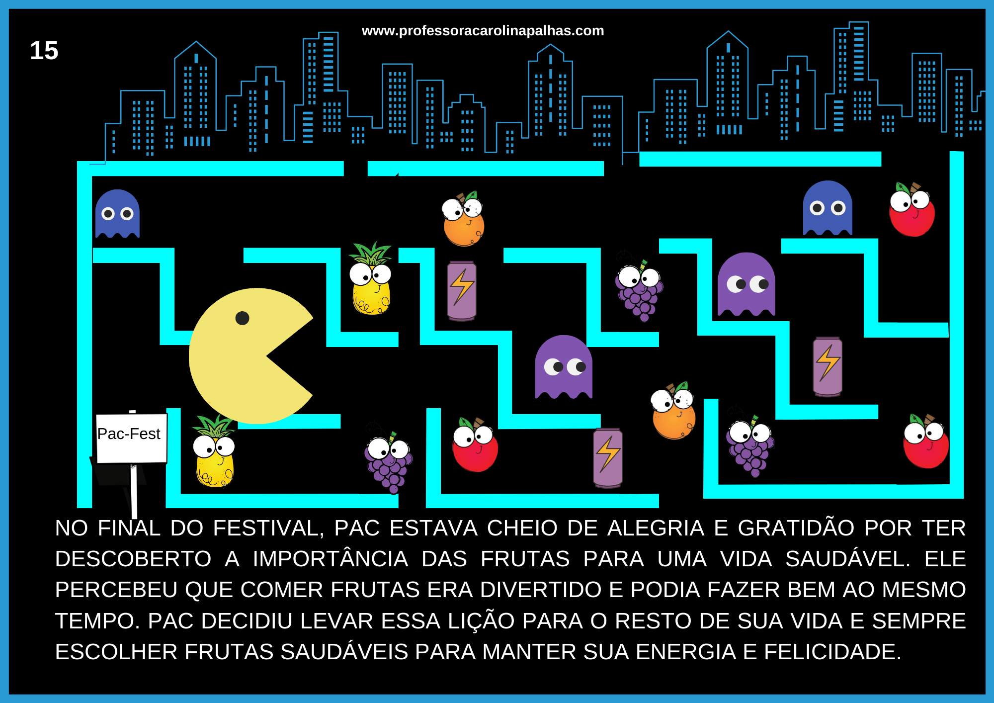 Informatica Educativa|Atividade (Des)plugada: História em Cartaz com o tema A Aventura Saudável de Pac-Man e as Frutas Mágicas