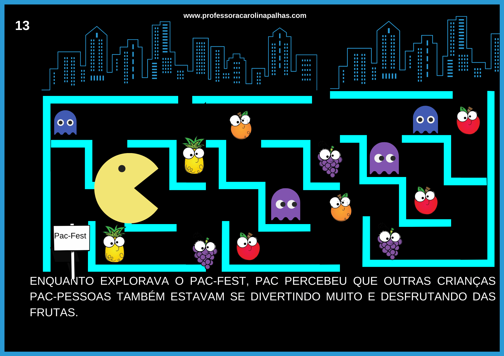 You are currently viewing Informatica Educativa|Atividade (Des)plugada: História em Cartaz com o tema A Aventura Saudável de  Pac-Man e as Frutas Mágicas
