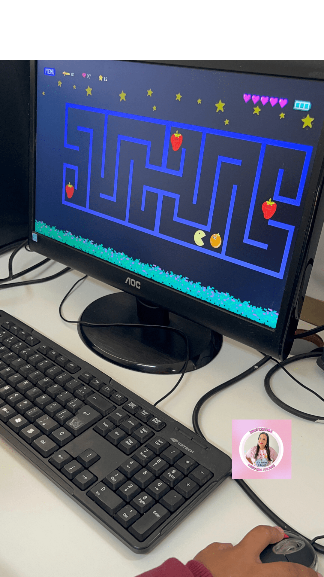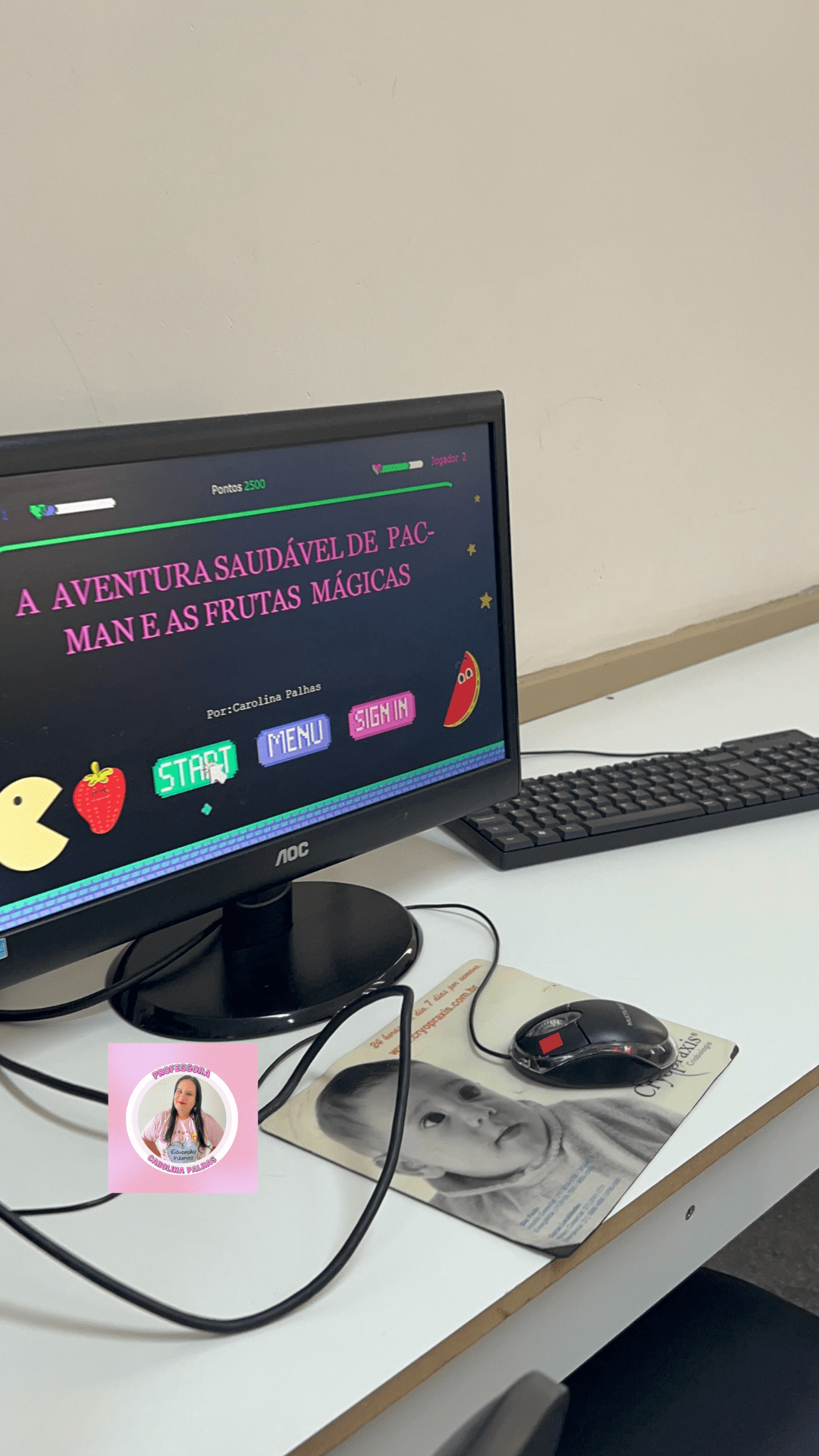 Na aula de informática educativa com as crianças da Educação Infantil da minha escola, utilizei um jogo offline incrível e plugado, no formato Power Point. O jogo chama-se “A Aventura Saudável de Pac-Man e as Frutas Mágicas” e foi um sucesso entre os pequenos. 🍎🍌🍓
