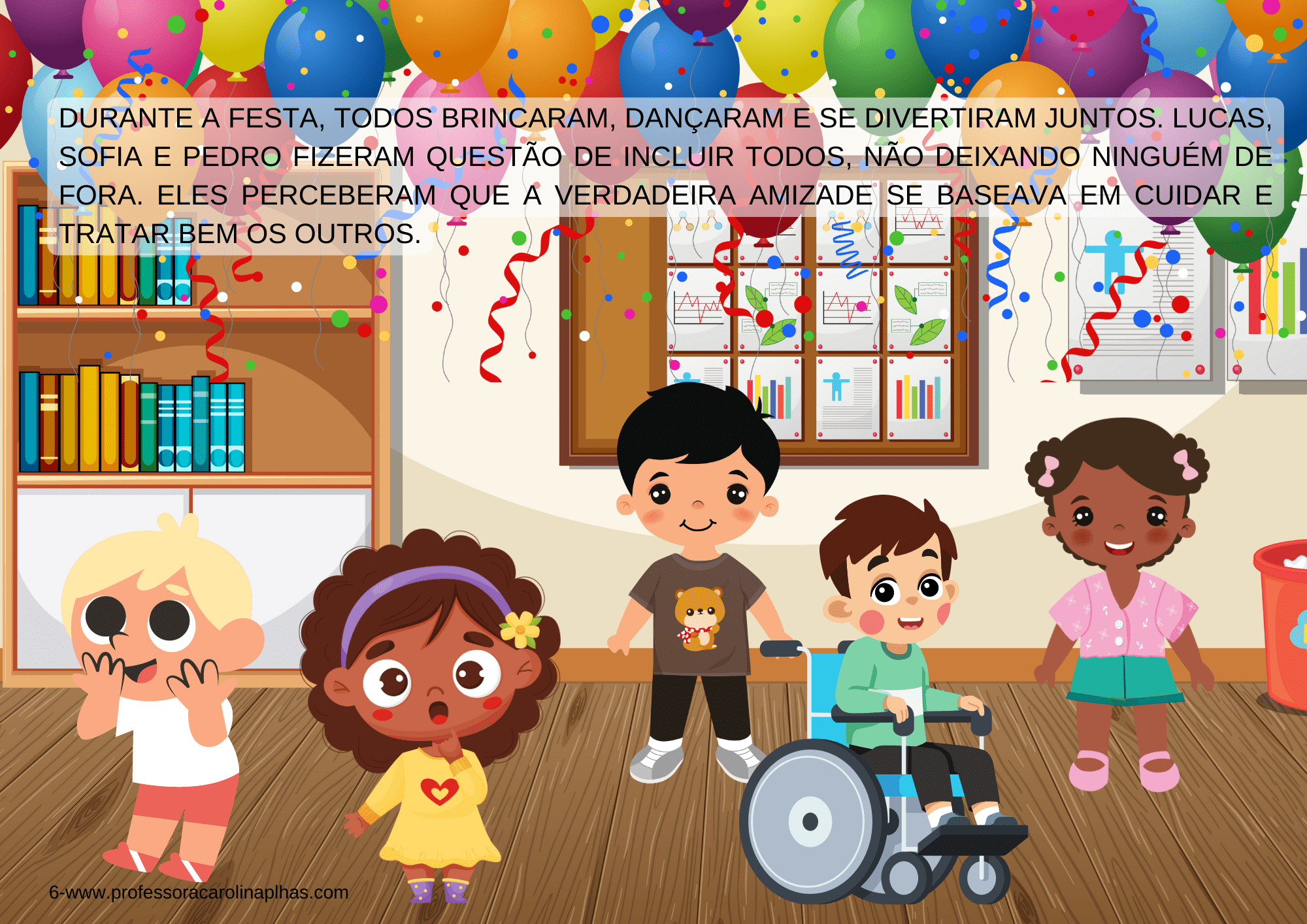 No dia da festa, a sala de aula está repleta de alegria e entusiasmo. Bela, Pedro, Sofia e Lucas recebem cada amigo com um sorriso caloroso e um abraço apertado, mostrando o quanto são importantes em suas vidas. Eles sabem que um gesto de afeto pode iluminar o dia de alguém e fortalecer os laços da amizade.