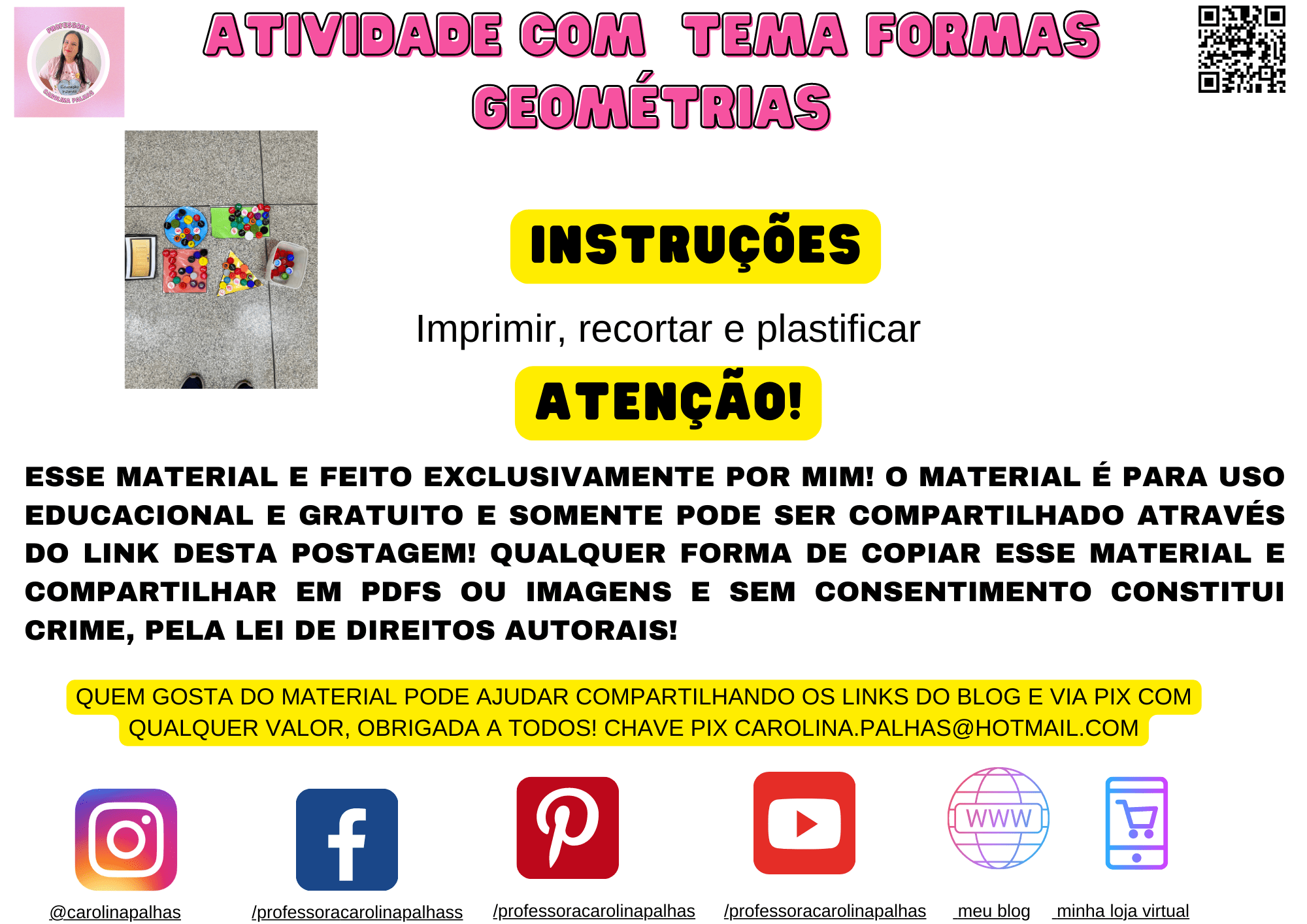 OBSERVAÇÃO: Esse material é feito exclusivamente por mim! O material é para uso educacional e gratuito e somente pode ser compartilhado através do link desta postagem! Qualquer forma de copiar esse material e compartilhar em PDFS ou imagens e sem consentimento constitui crime, pela lei de direitos autorais!