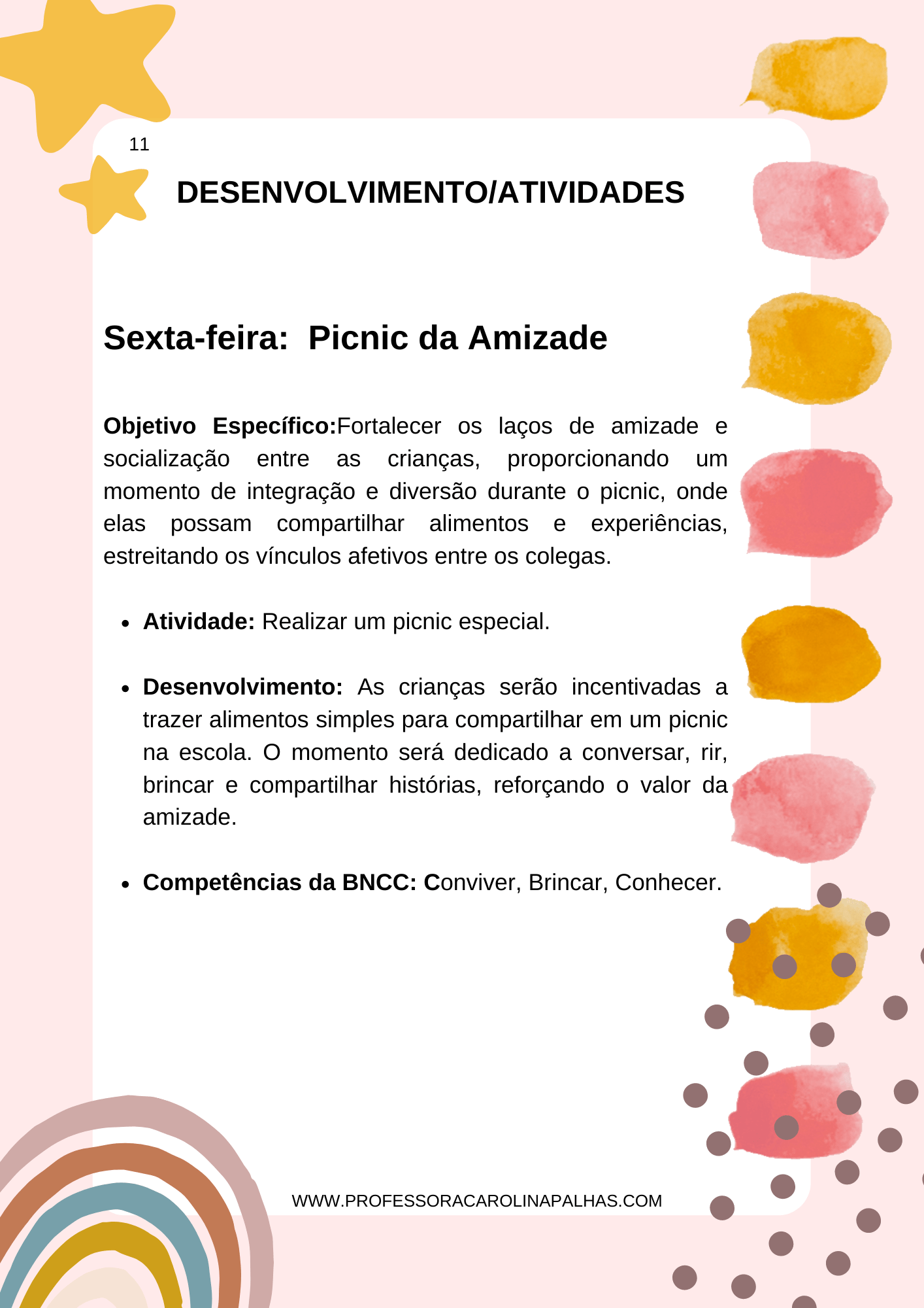 Trabalhar o Dia do Amigo e da Amizade com as crianças da Educação Infantil é uma oportunidade preciosa de cultivar valores essenciais para a formação de seres humanos empáticos e solidários. Com este planejamento semanal, espero inspirar outros educadores a criar um ambiente acolhedor e enriquecedor, onde a amizade e a diversão caminham lado a lado. Juntos, podemos ajudar a construir um futuro onde a amizade seja sempre celebrada, incentivando o amor e a união entre as crianças desde o início de suas jornadas educacionais. O PDF do planejamento está disponível gratuitamente, então vamos compartilhar essa alegria e aprendizado com todos os educadores! Até a próxima! 😊💕