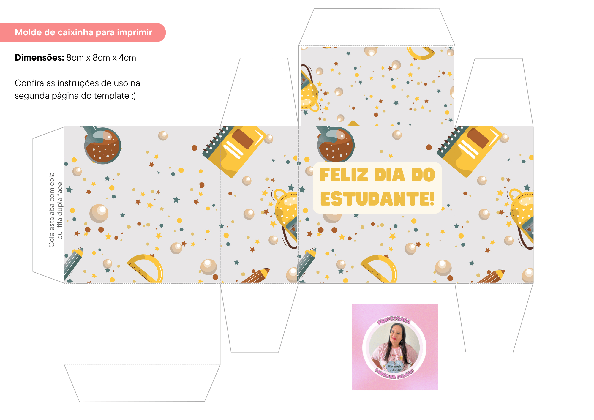 Agora, voltando à nossa surpresa especial, a caixa de doces para o Dia do Estudante! Ao imprimir e montar essa caixinha, você terá um presente fofo e saboroso para presentear as crianças nessa data. Basta seguir as instruções do arquivo disponibilizado e preencher a caixa com doces ou guloseimas que as crianças adoram. Essa pequena lembrança é uma forma de reconhecer e valorizar o empenho dos estudantes, além de proporcionar um momento doce e alegre durante o Dia do Estudante.
