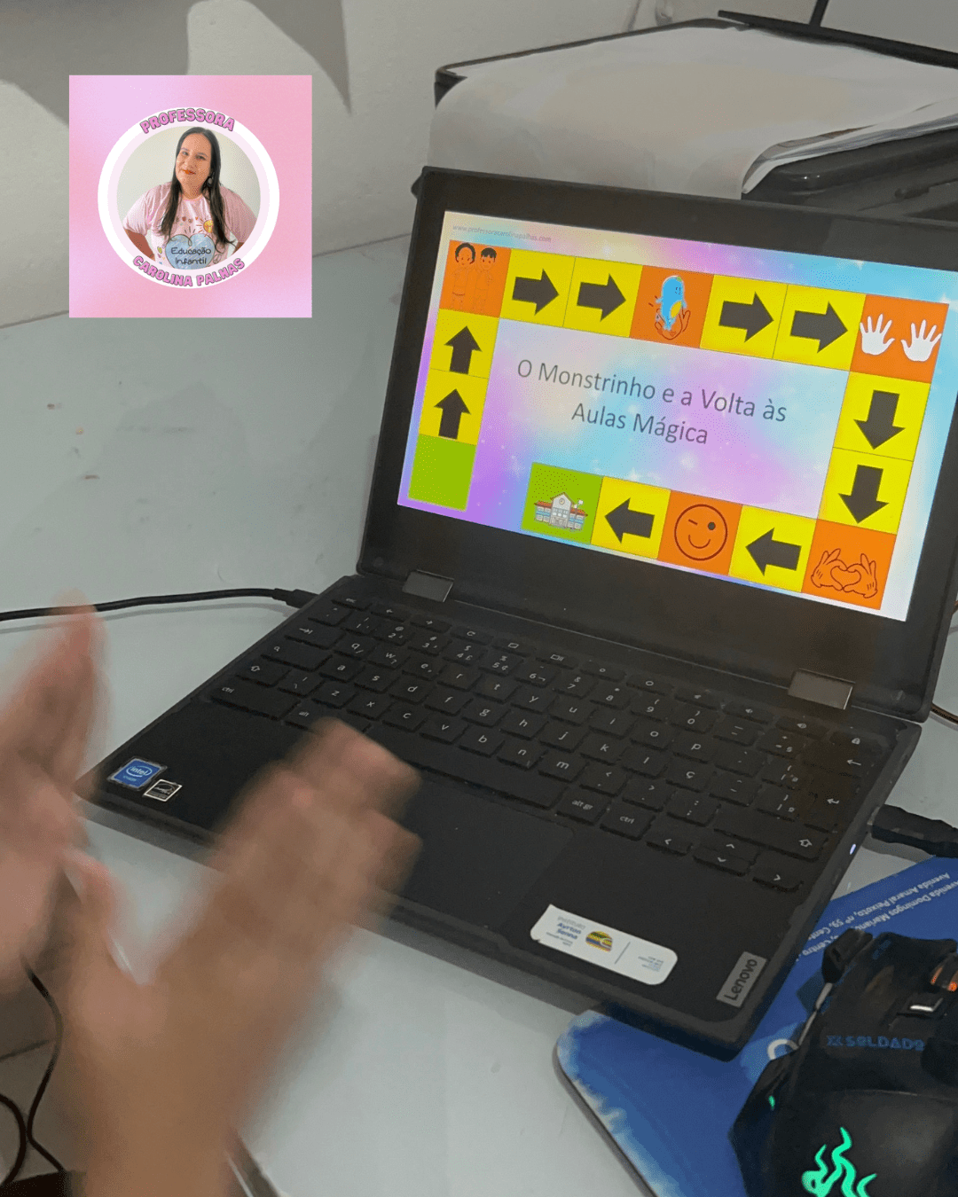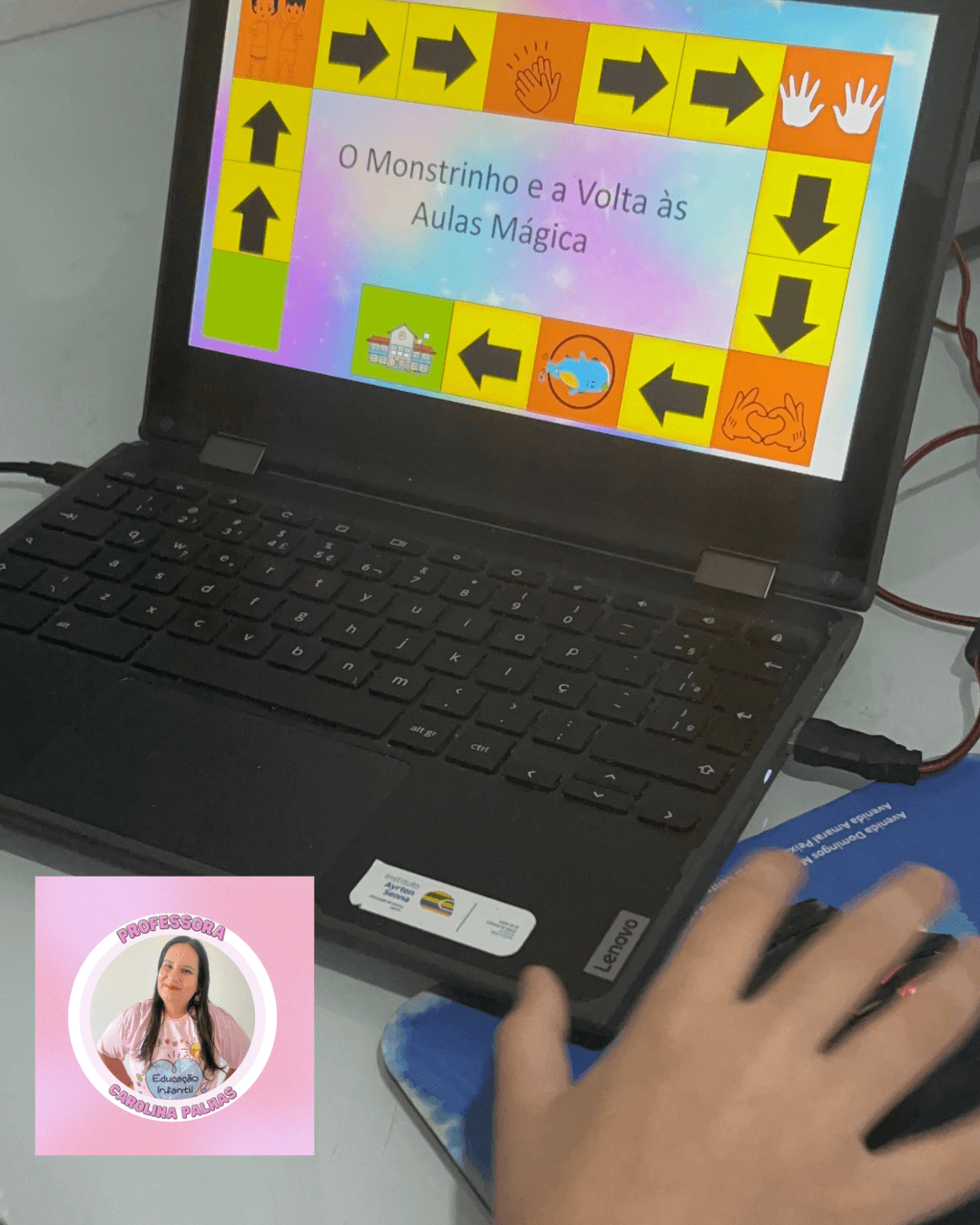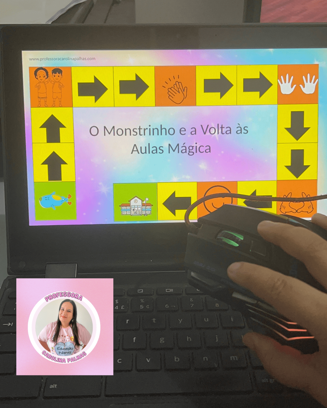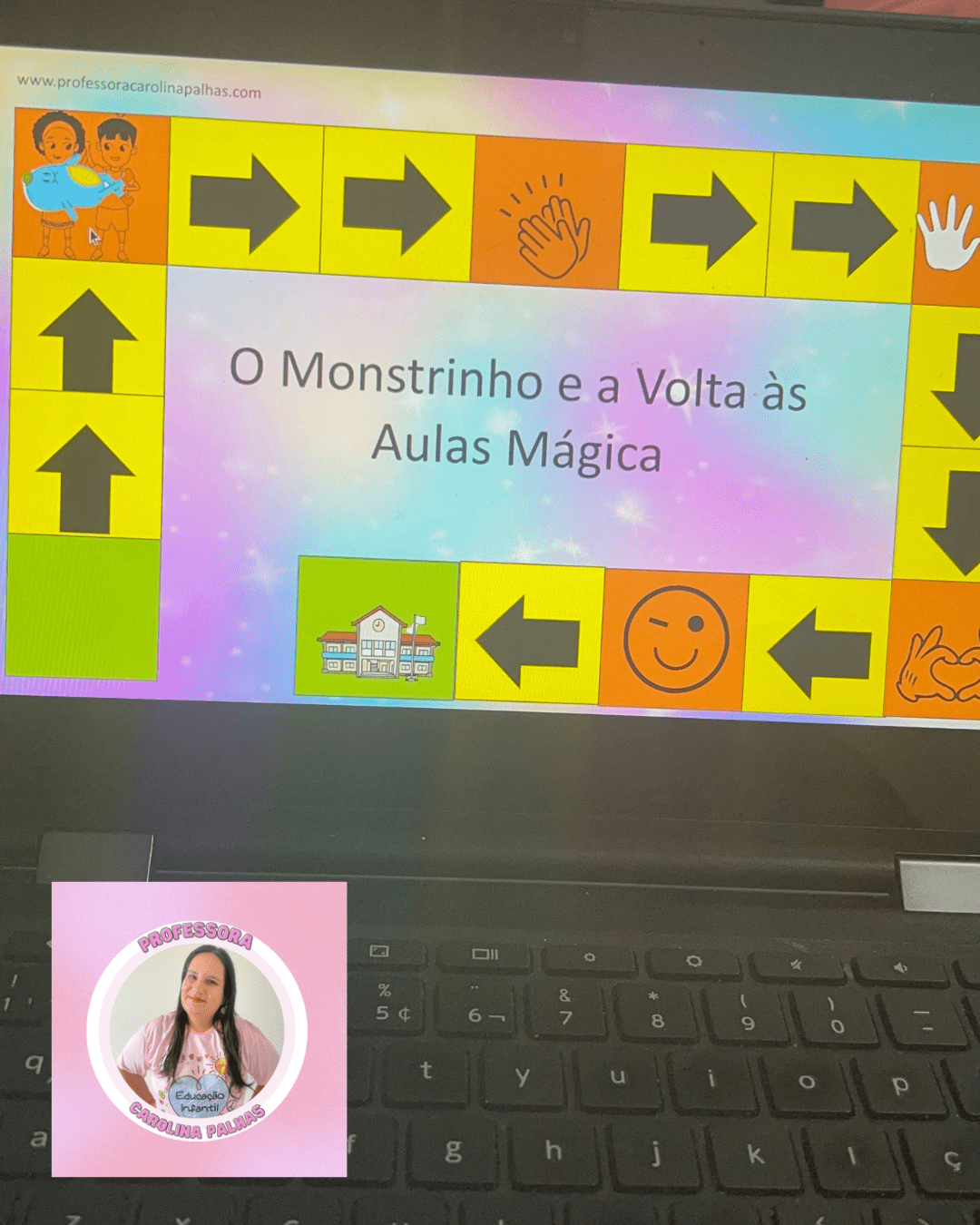 Nesta atividade, as crianças poderão se aventurar ainda mais com o Monstrinho em um jogo emocionante em formato de Power Point. Elas poderão interagir com a história de forma lúdica e envolvente, usando o computador para acompanhar o Monstrinho pelo caminho mágico, assim como na história que contamos anteriormente! 🖥️🐾