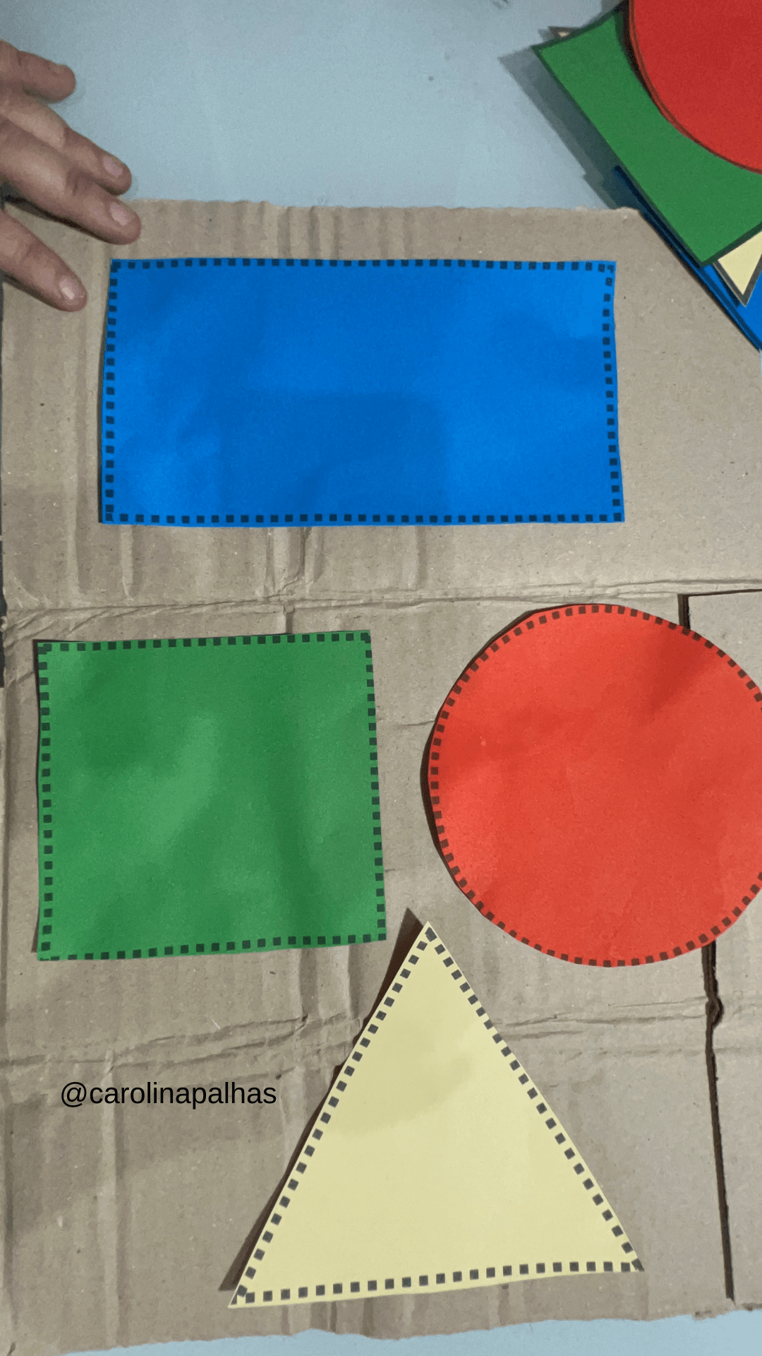 - 🎨 Preparação: Desenhe ou imprima diferentes formas geométricas e suas respectivas cópias em cartões separados.