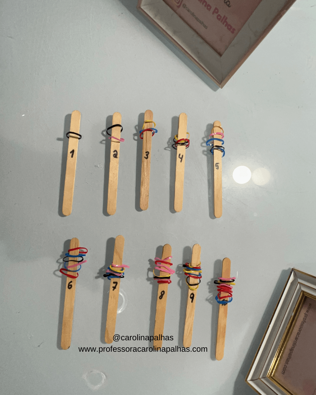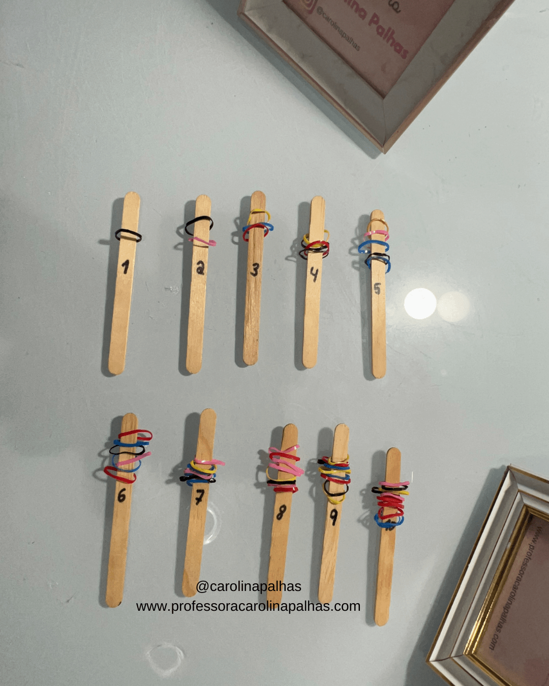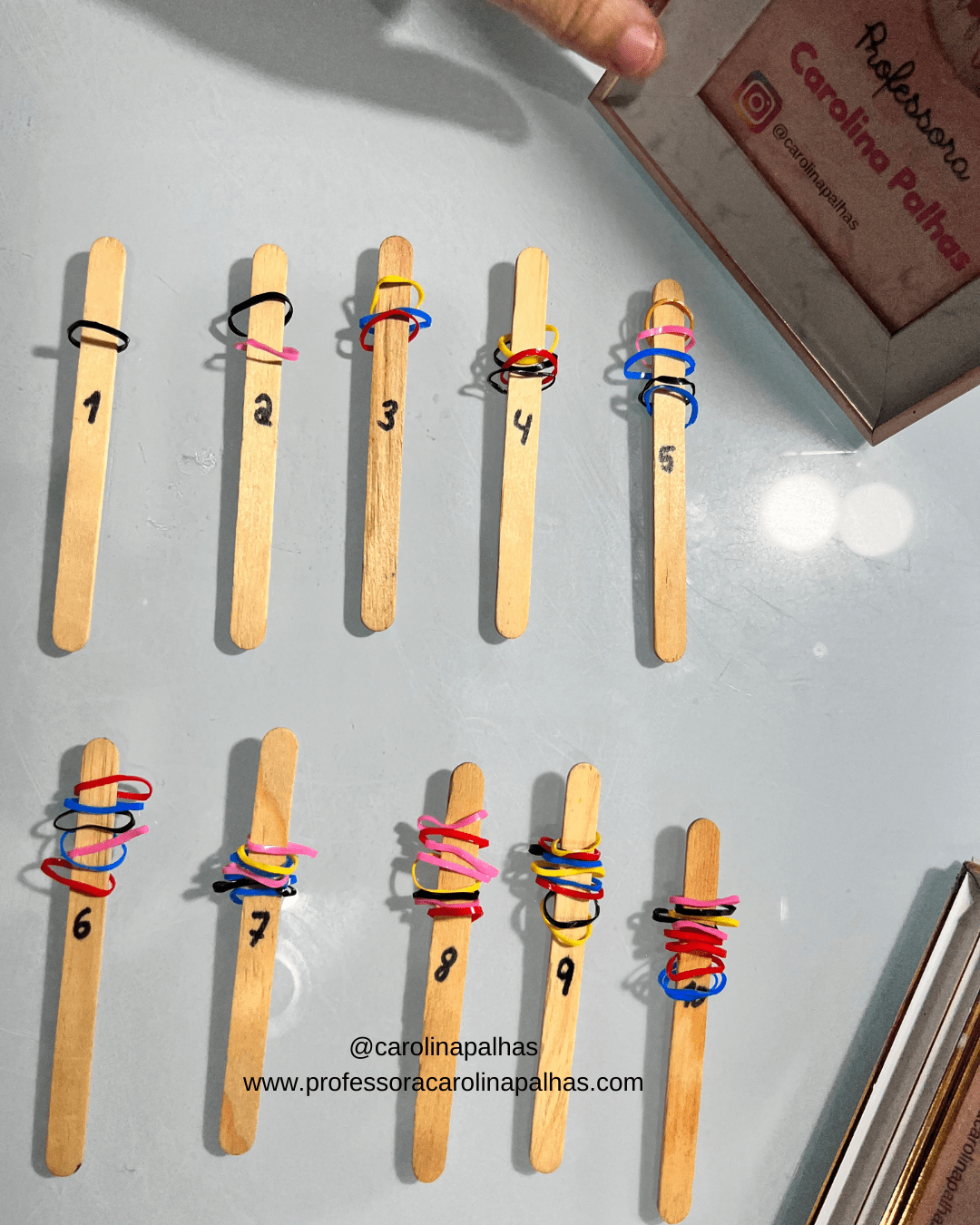 Se você é um pai em busca de maneiras criativas de ensinar números e quantidades aos seus filhos, ou um educador procurando estratégias inovadoras para a sala de aula, esta atividade é perfeita para você. Juntos, exploraremos maneiras criativas de contar, somar e subtrair usando simples palitos de sorvete e elásticos coloridos.