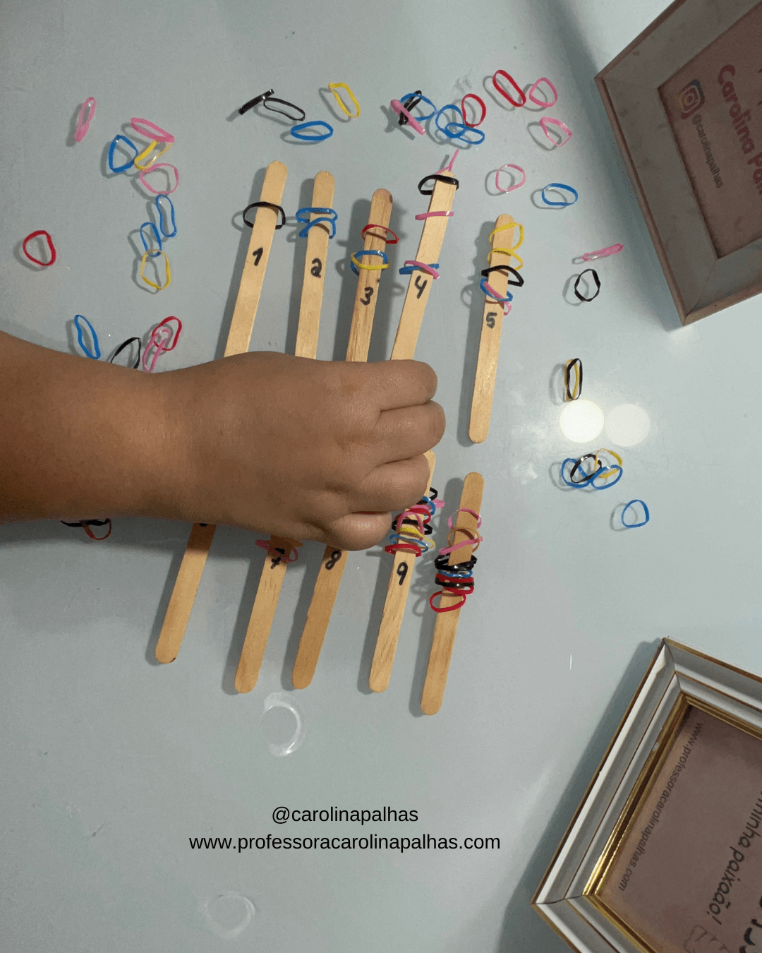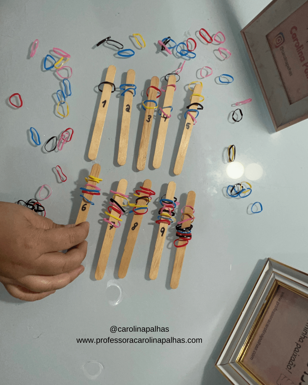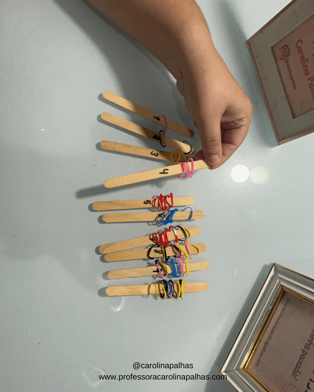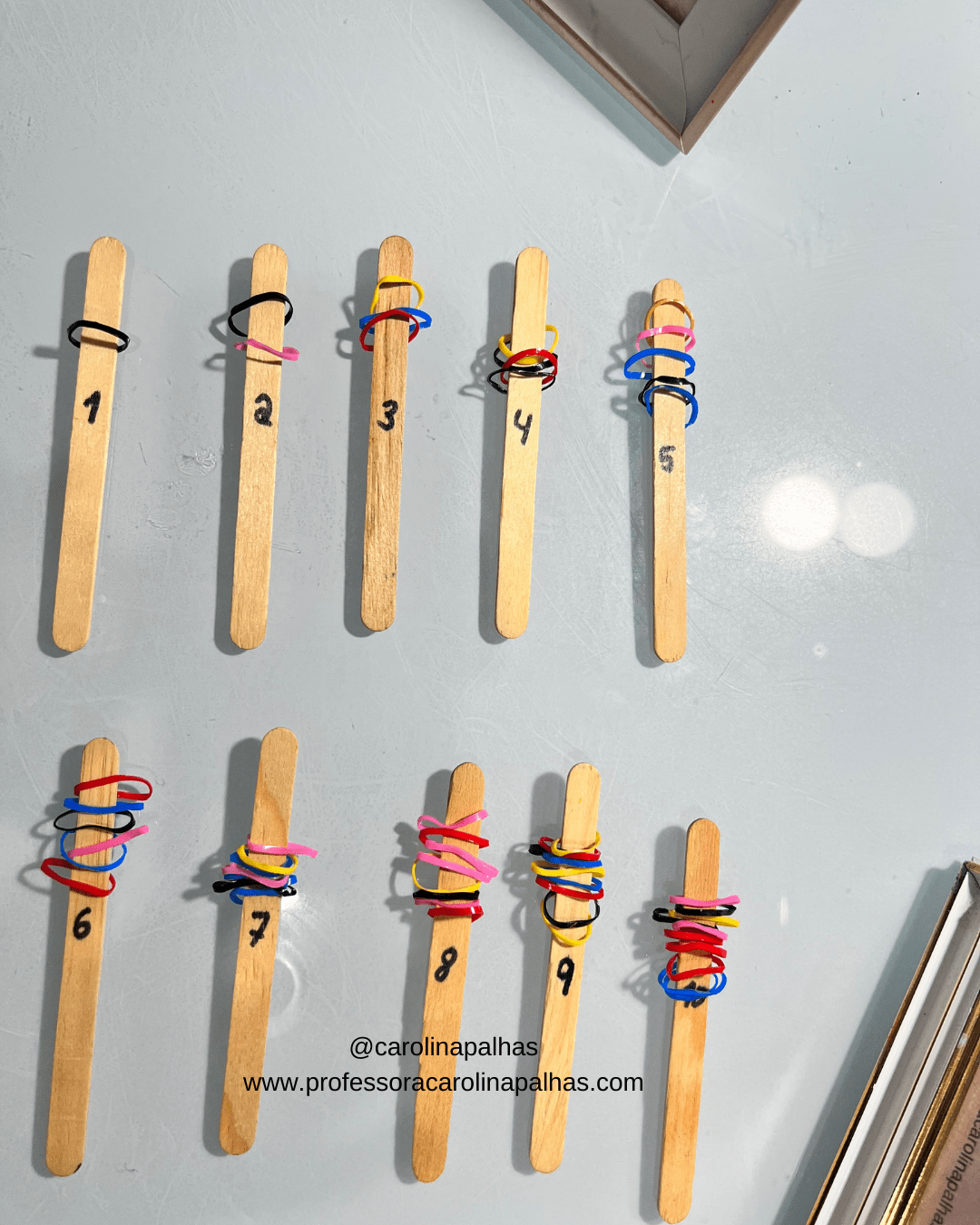 Se você é um pai em busca de maneiras criativas de ensinar números e quantidades aos seus filhos, ou um educador procurando estratégias inovadoras para a sala de aula, esta atividade é perfeita para você. Juntos, exploraremos maneiras criativas de contar, somar e subtrair usando simples palitos de sorvete e elásticos coloridos.