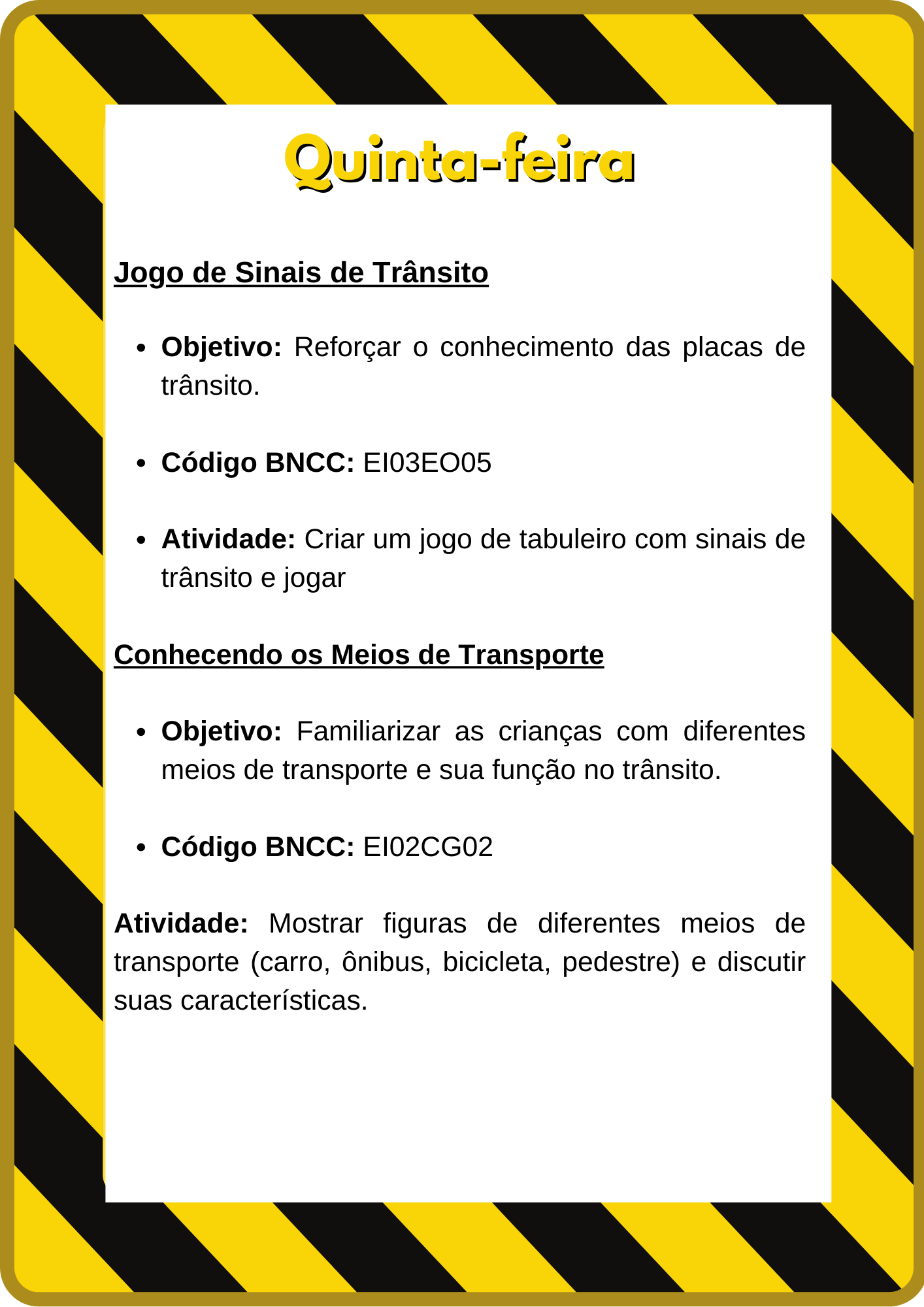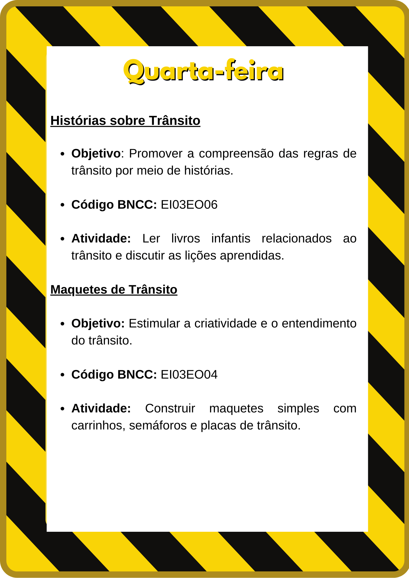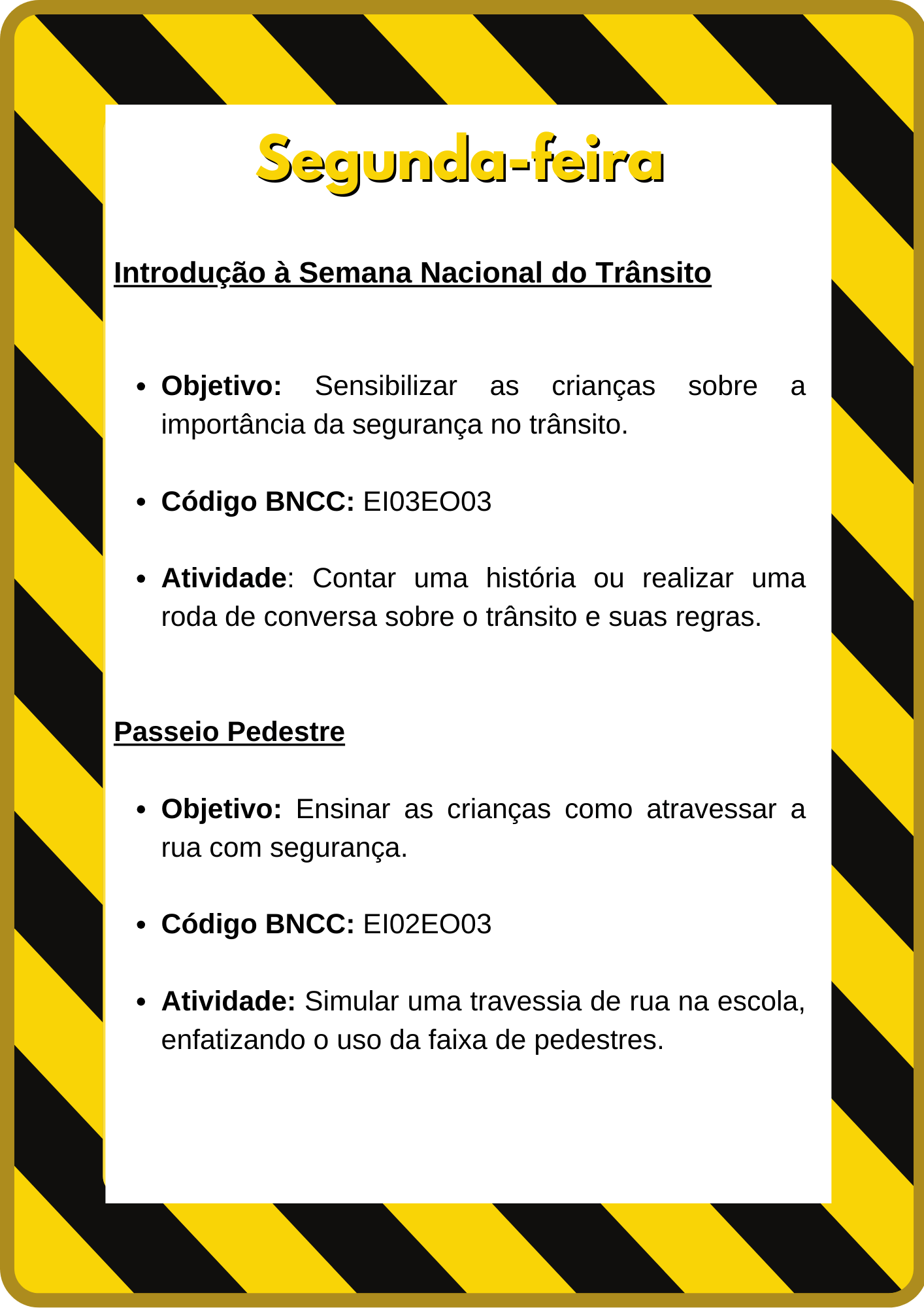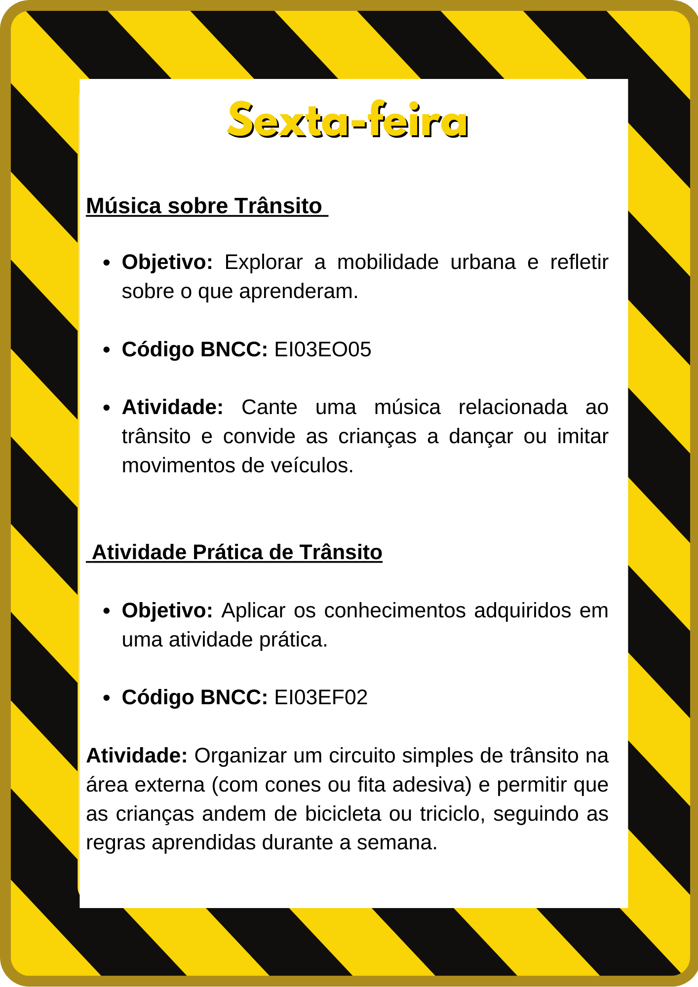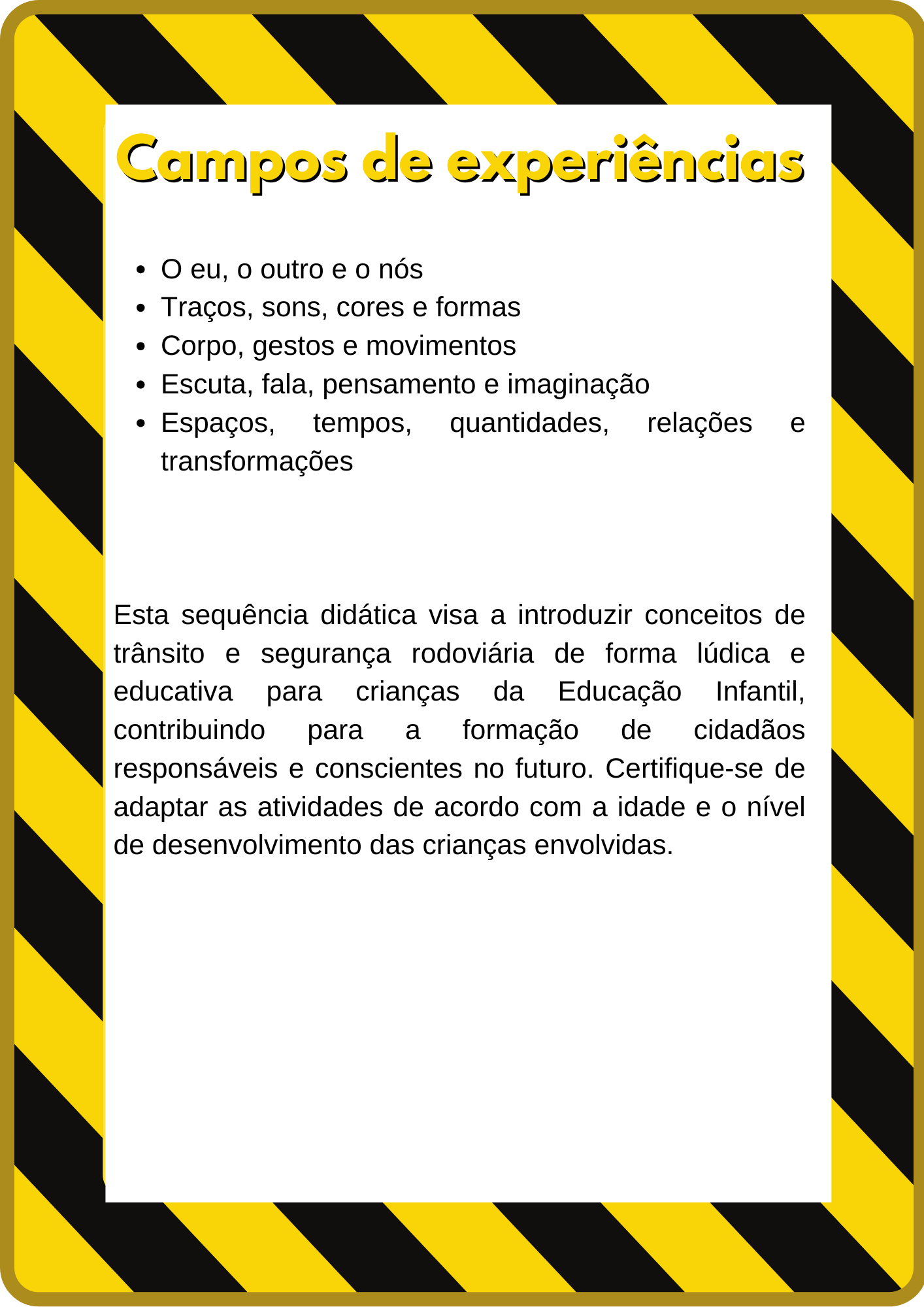 Esse blog é o seu destino para descobrir como a educação infantil pode ser uma ferramenta poderosa na promoção da segurança no trânsito. Explore a minha sequência didática cuidadosamente planejada para a Semana Nacional do Trânsito, destinada a crianças em idade pré-escolar. Esta sequência combina atividades pedagógicas envolventes, diversão e conscientização, tudo de acordo com os princípios da BNCC.