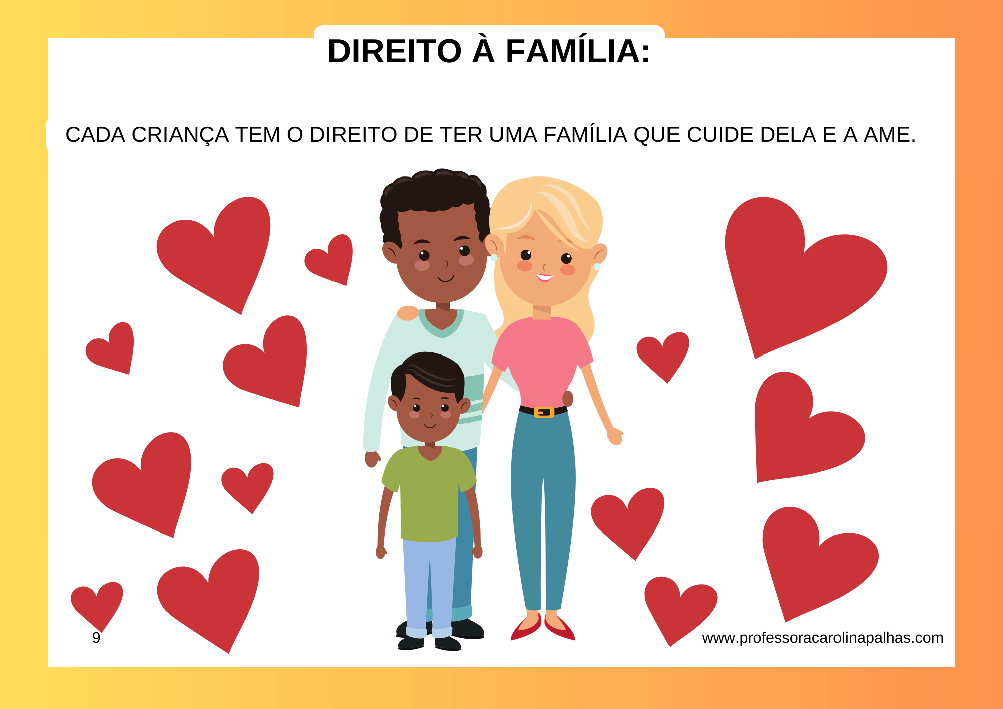 Minha proposta é tornar o aprendizado sobre os direitos das crianças uma experiência divertida. Juntos, exploraremos o direito de ser amado, brincar, frequentar a escola, estar seguro, ser ouvido, ser igual, ter saúde, ter uma família e, é claro, o direito de ser feliz!