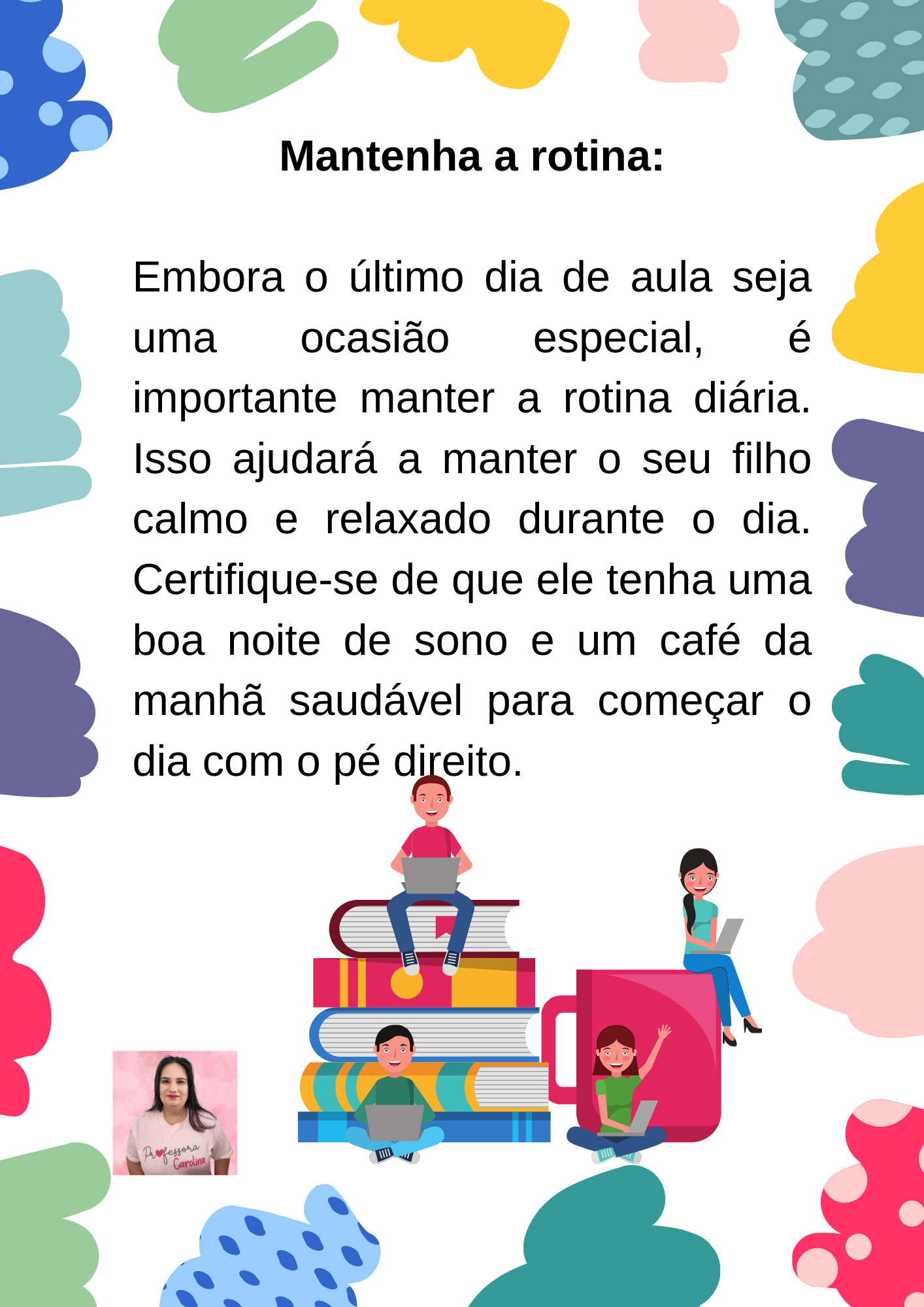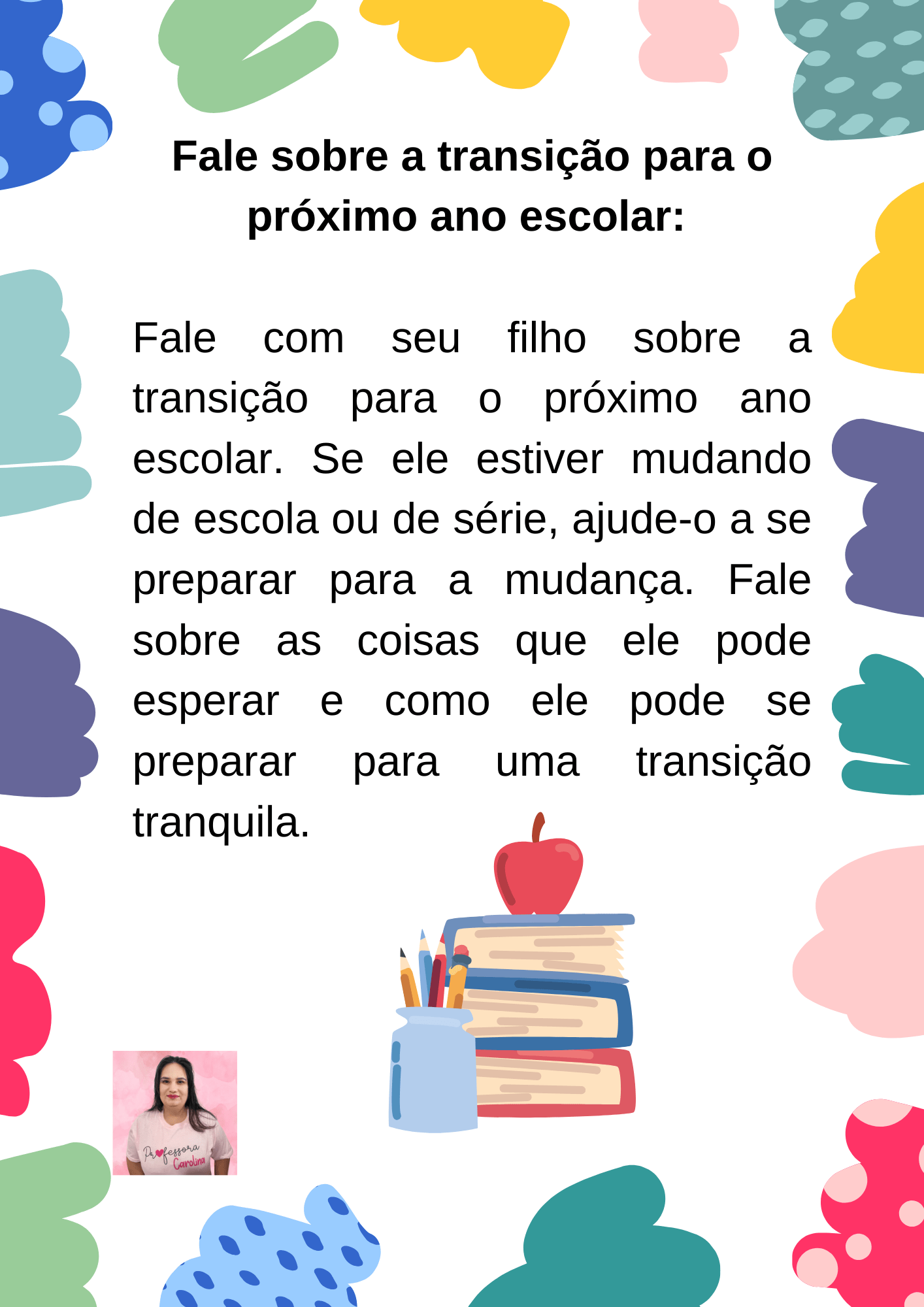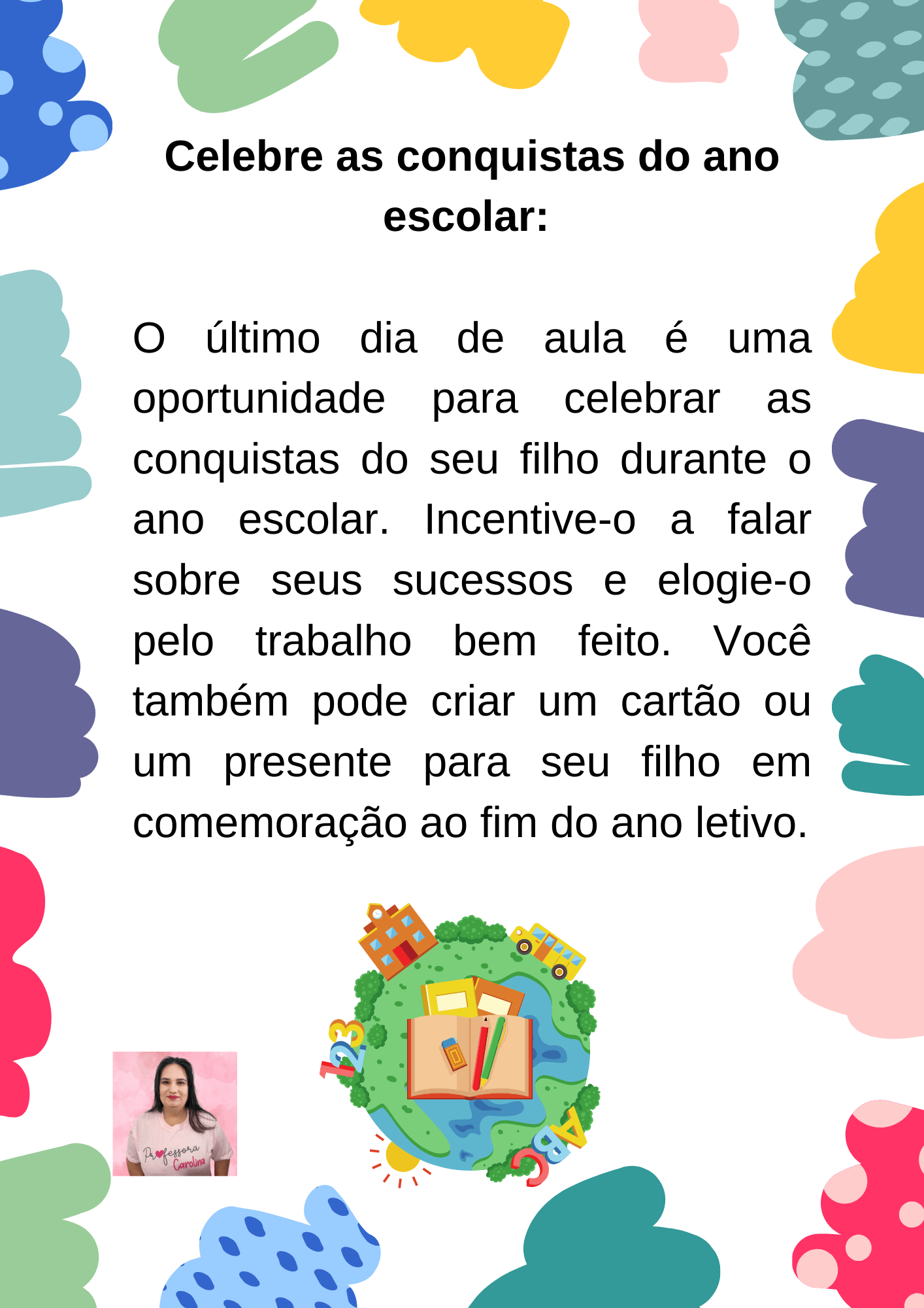 - Ajude as crianças a se despedirem dos professores. É importante que as crianças possam agradecer aos seus professores pelo ano letivo. Isso pode ser feito através de um cartão ou de uma pequena lembrança.