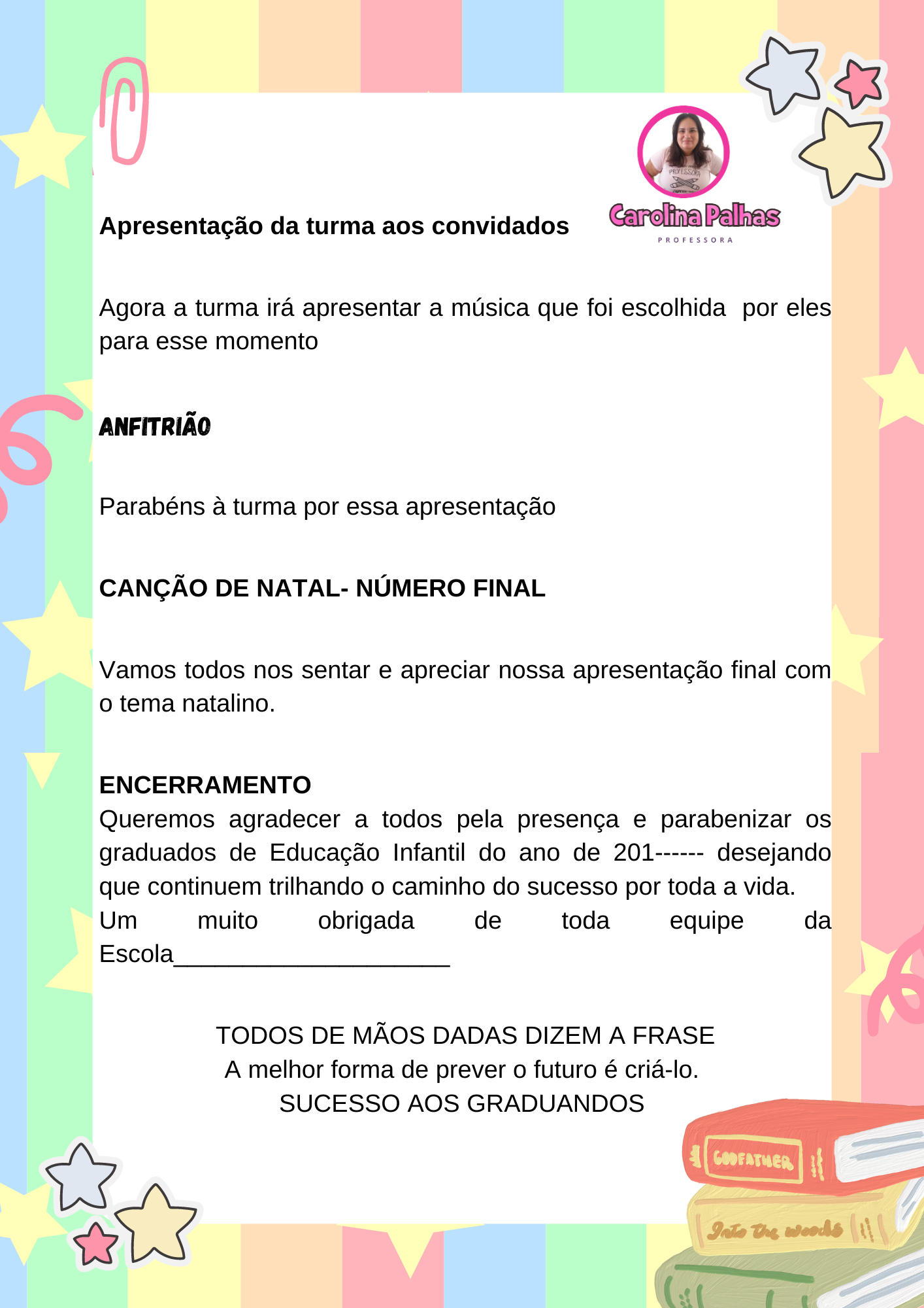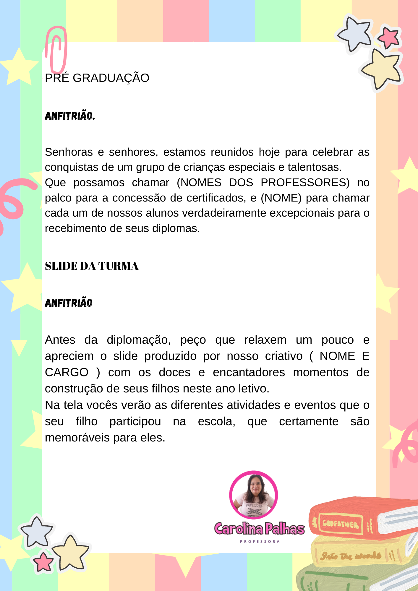 Roteiro para formatura Educação infantil e o enino fundamentalRoteiro para formatura Educação infantil e o enino fundamentalRoteiro para formatura Educação infantil e o enino fundamentalRoteiro para formatura Educação infantil e o enino fundamentalRoteiro para formatura Educação infantil e o enino fundamental