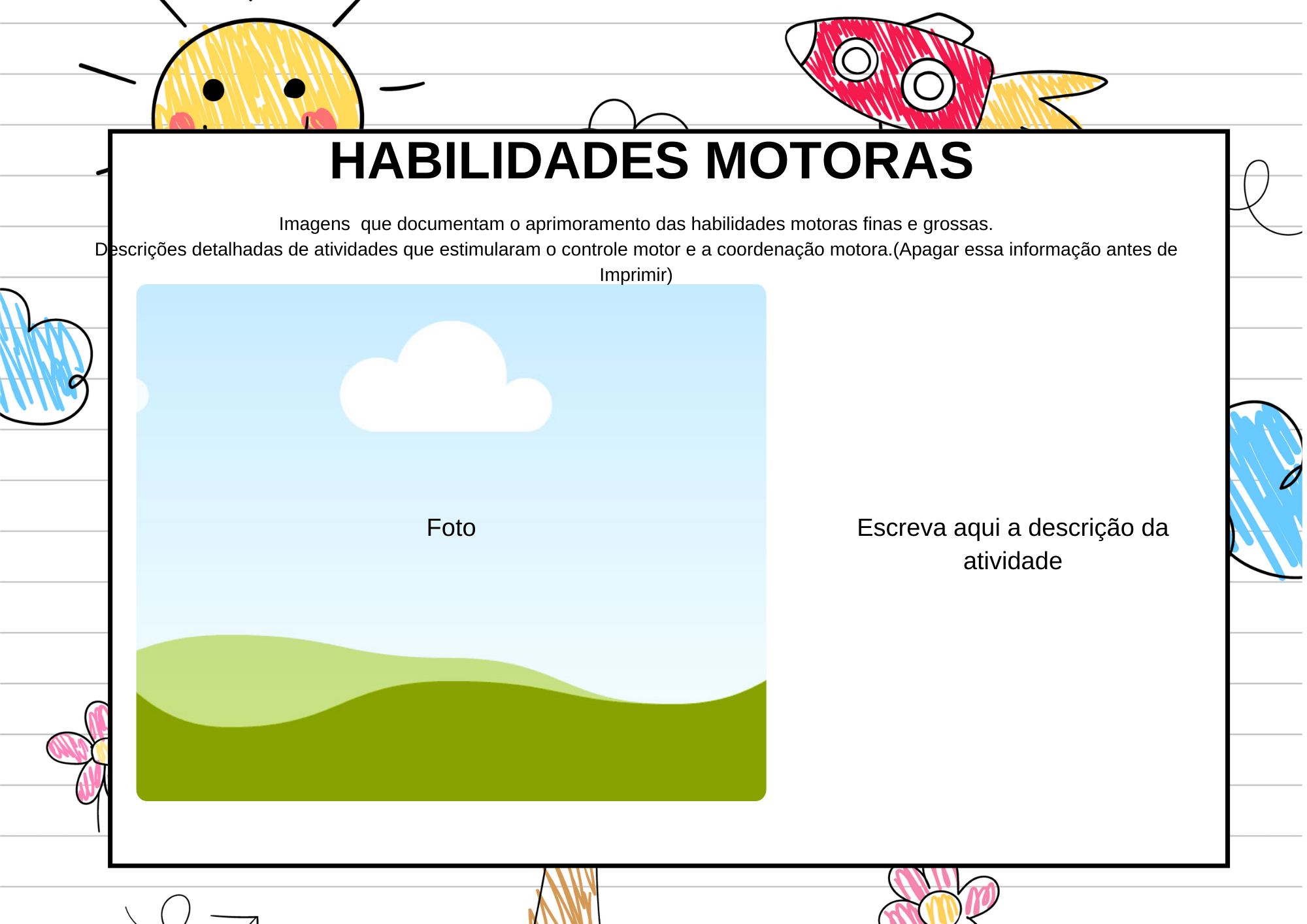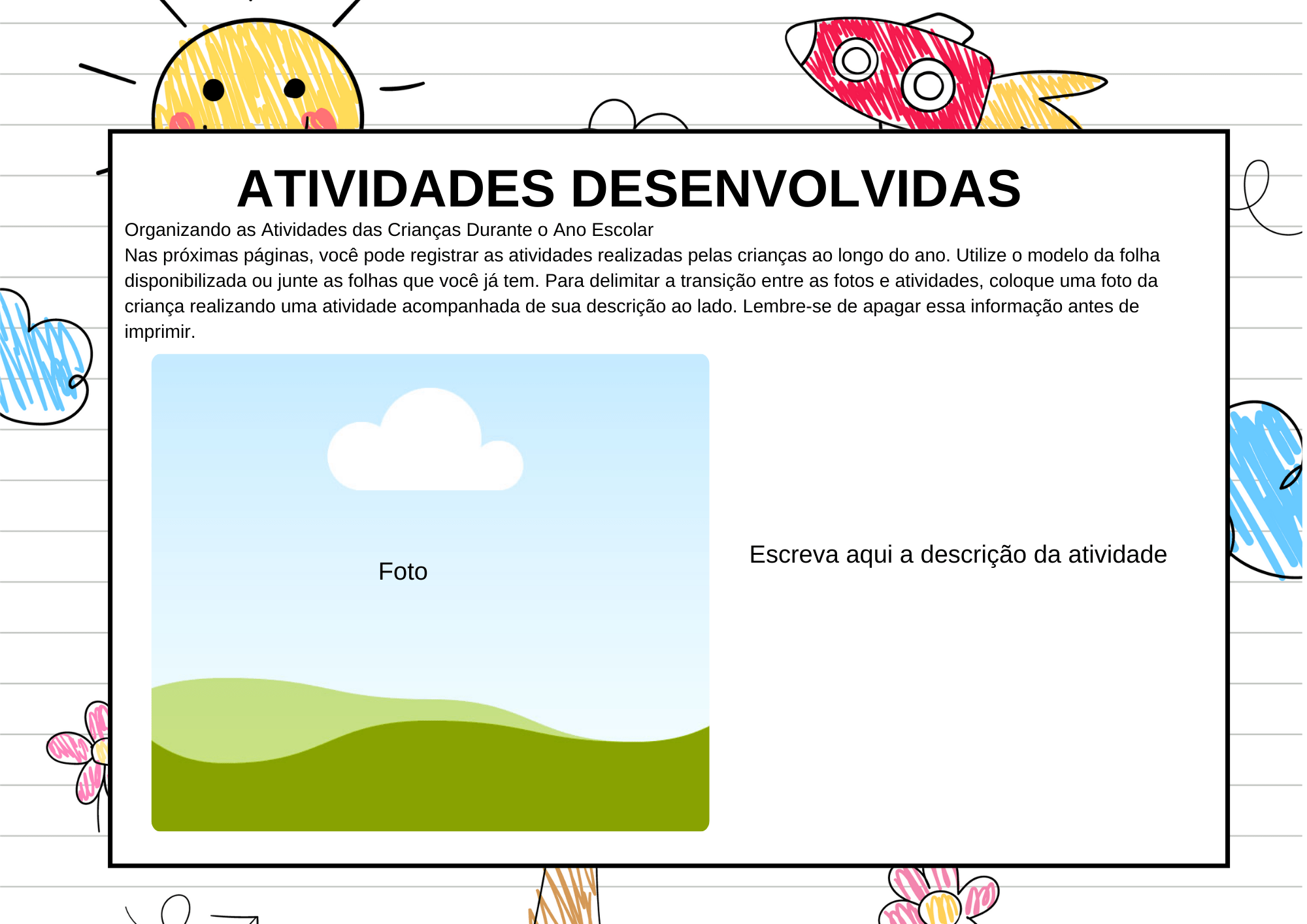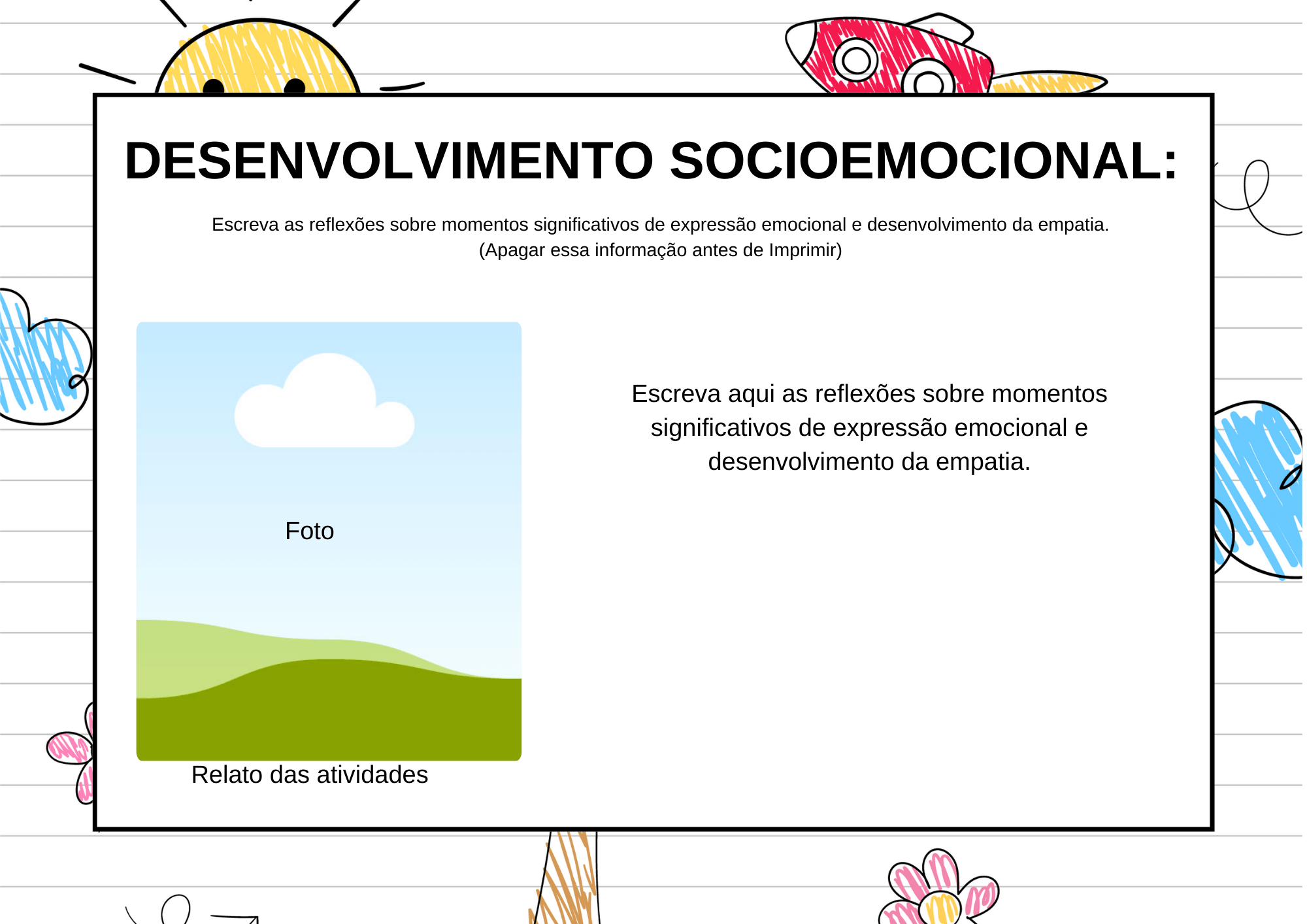 Adaptação às Necessidades Individuais: Cada educadora pode ajustar o modelo conforme as particularidades de sua turma. Seja para destacar atividades específicas, evidenciar habilidades particulares ou incluir observações importantes, o modelo é maleável para atender a todas as demandas.