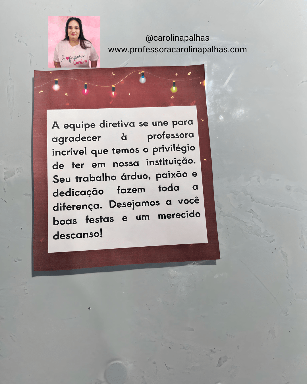 Sua resiliência diante dos desafios e sua capacidade de se adaptar às mudanças são admiráveis. Agradecemos por sua dedicação inabalável ao proporcionar uma educação de qualidade, mesmo em tempos difíceis. Seu compromisso é verdadeiramente inspirador.