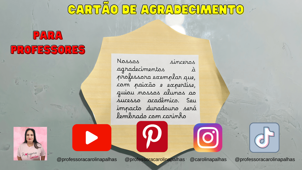 Queremos expressar nossa profunda gratidão pelo seu compromisso incansável com a educação. Seu esforço contínuo em inspirar e orientar nossos alunos é verdadeiramente notável. Obrigado por fazer a diferença todos os dias.