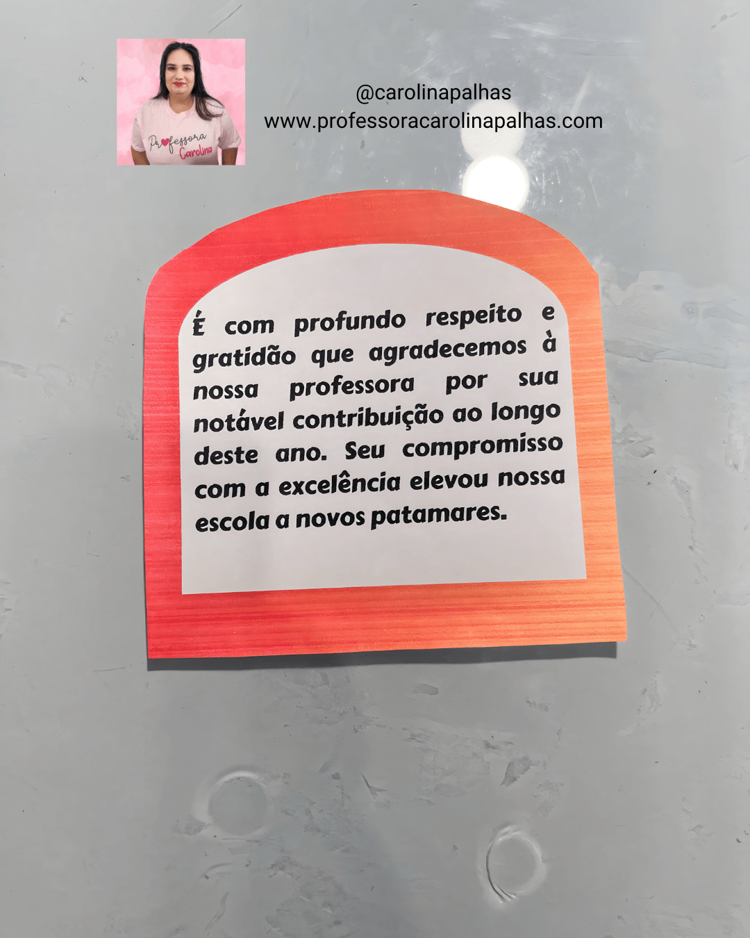 Sua resiliência diante dos desafios e sua capacidade de se adaptar às mudanças são admiráveis. Agradecemos por sua dedicação inabalável ao proporcionar uma educação de qualidade, mesmo em tempos difíceis. Seu compromisso é verdadeiramente inspirador.