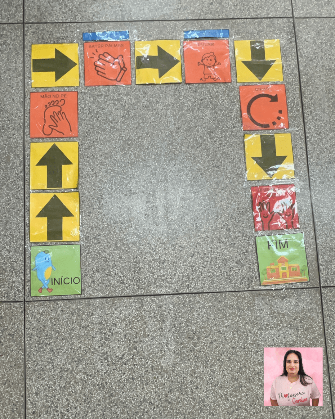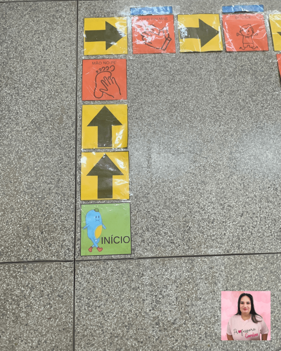 Nesta atividade incrível, as crianças poderão viver a aventura do Monstrinho de forma lúdica e interativa. Vamos montar um circuito mágico no chão da sala de aula, com placas inspiradas nas setas e comandos da história. As crianças poderão seguir as instruções das placas, como pular, tocar o pé, levantar as mãos, bater palmas e girar, assim como o Monstrinho fez! 🌈🐾