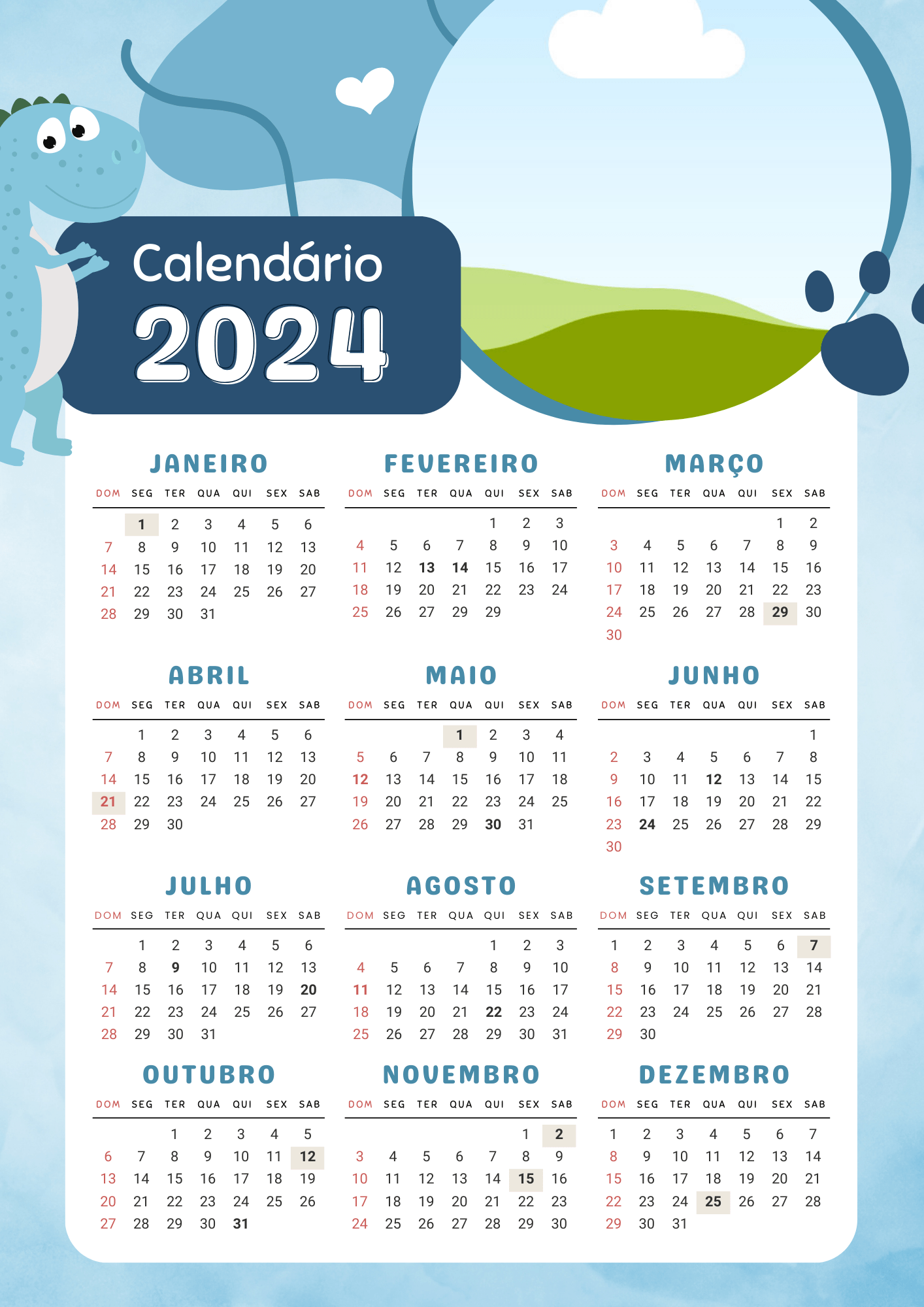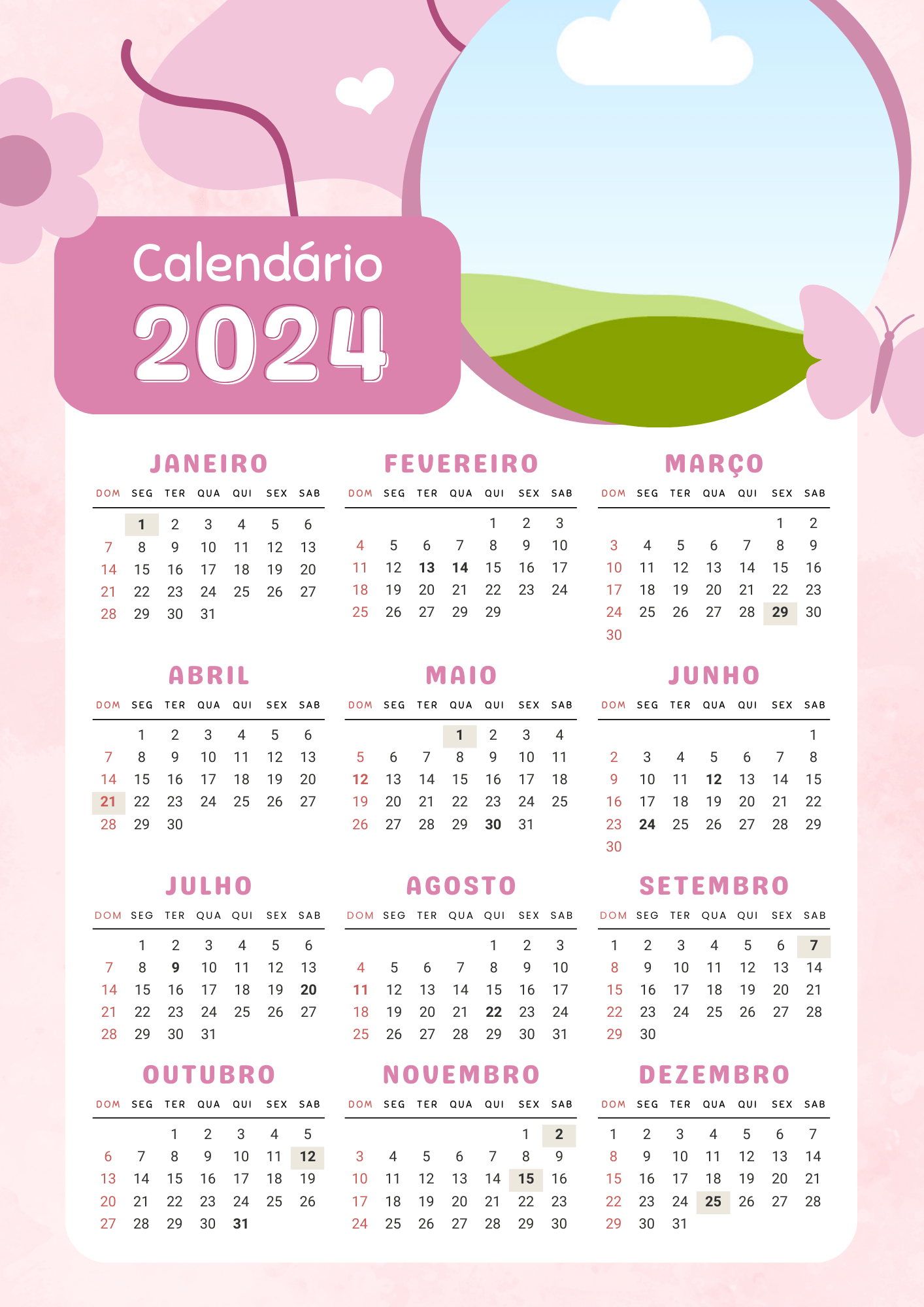 Descubra os Modelos de Calendários 2024 Prontos para Imprimir