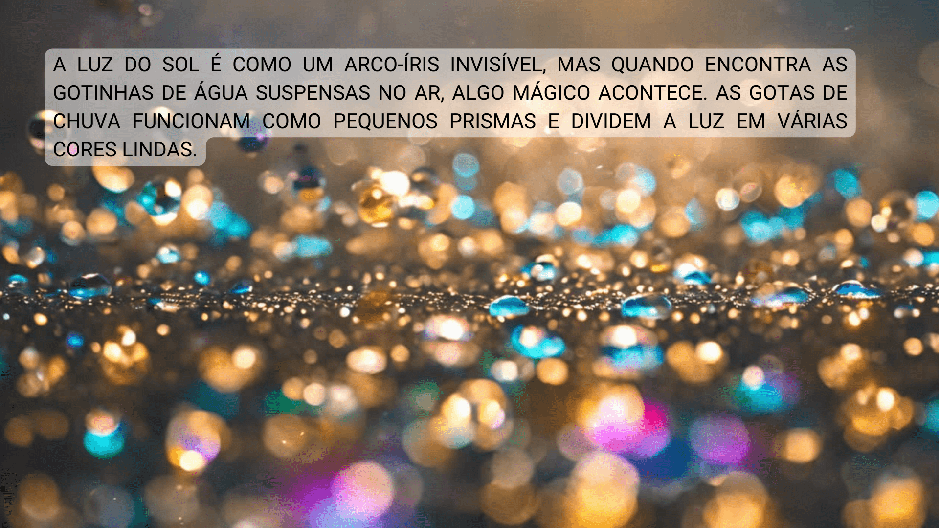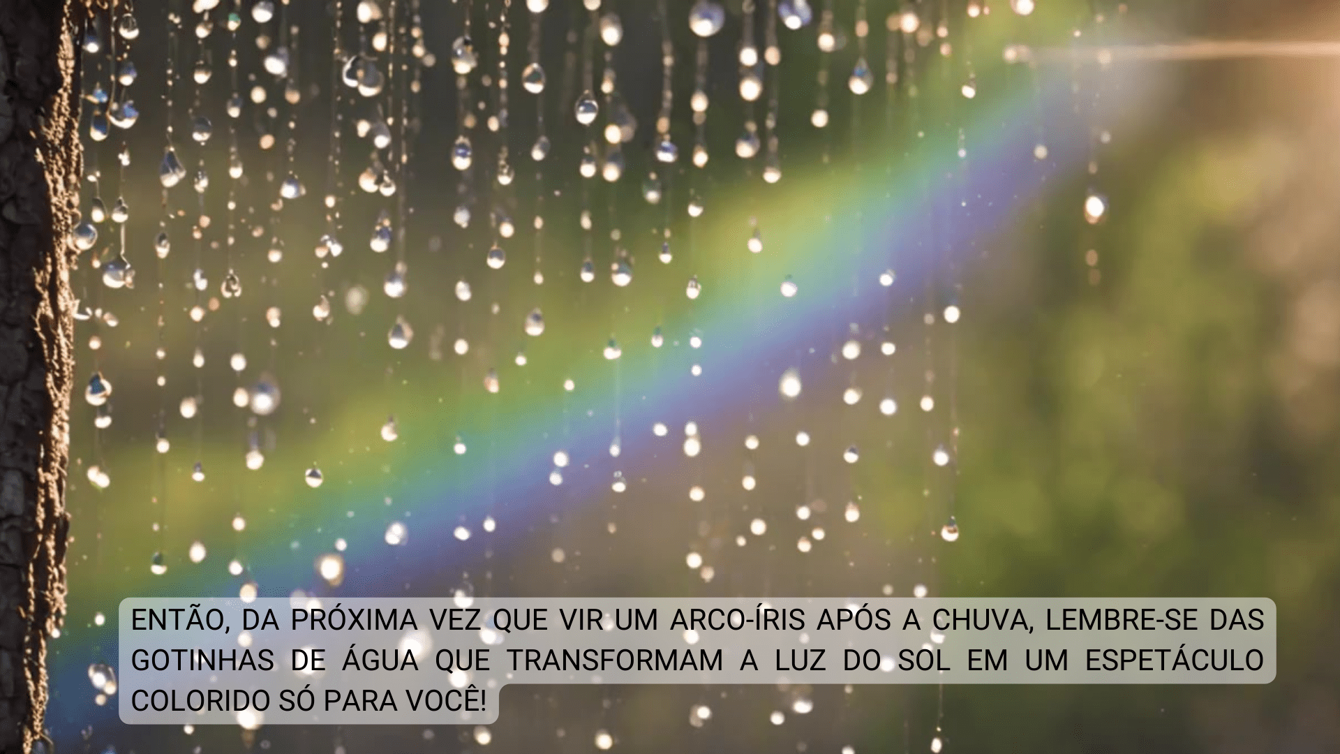 - A Dança da Chuva: Descubra como as gotinhas de água se transformam em pequenos mágicos que preparam o palco para o arco-íris.