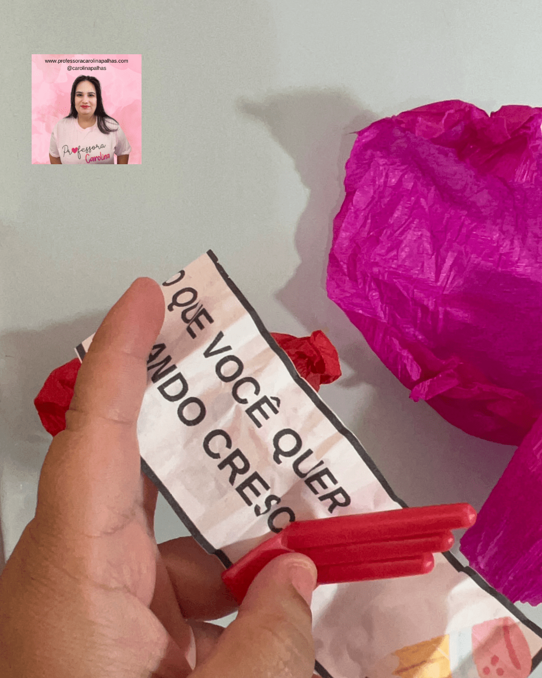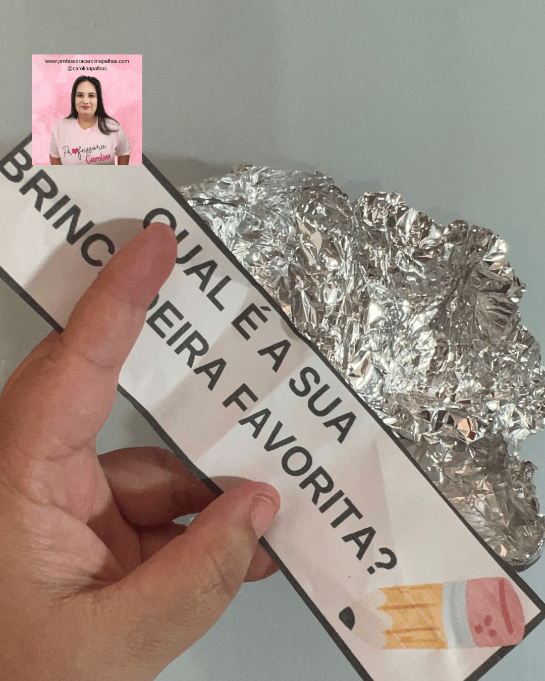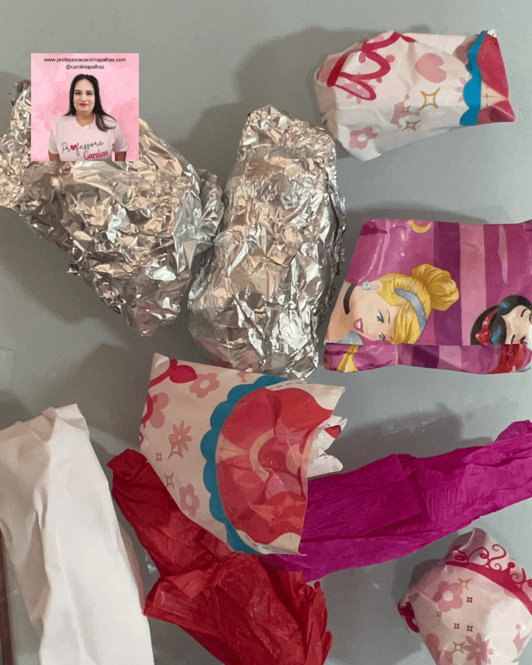 Passo a Passo: Para realizar a dinâmica, você precisará de folhas de papel alumínio, papel de presente, papel crepom ou folhas brancas, mimos como brinquedos ou doces, tesoura e as perguntas disponíveis em meu blog. Comece recortando as perguntas e embrulhando os mimos utilizando as folhas escolhidas, sugerindo o uso de papel de presente para atrair a atenção dos pequenos.